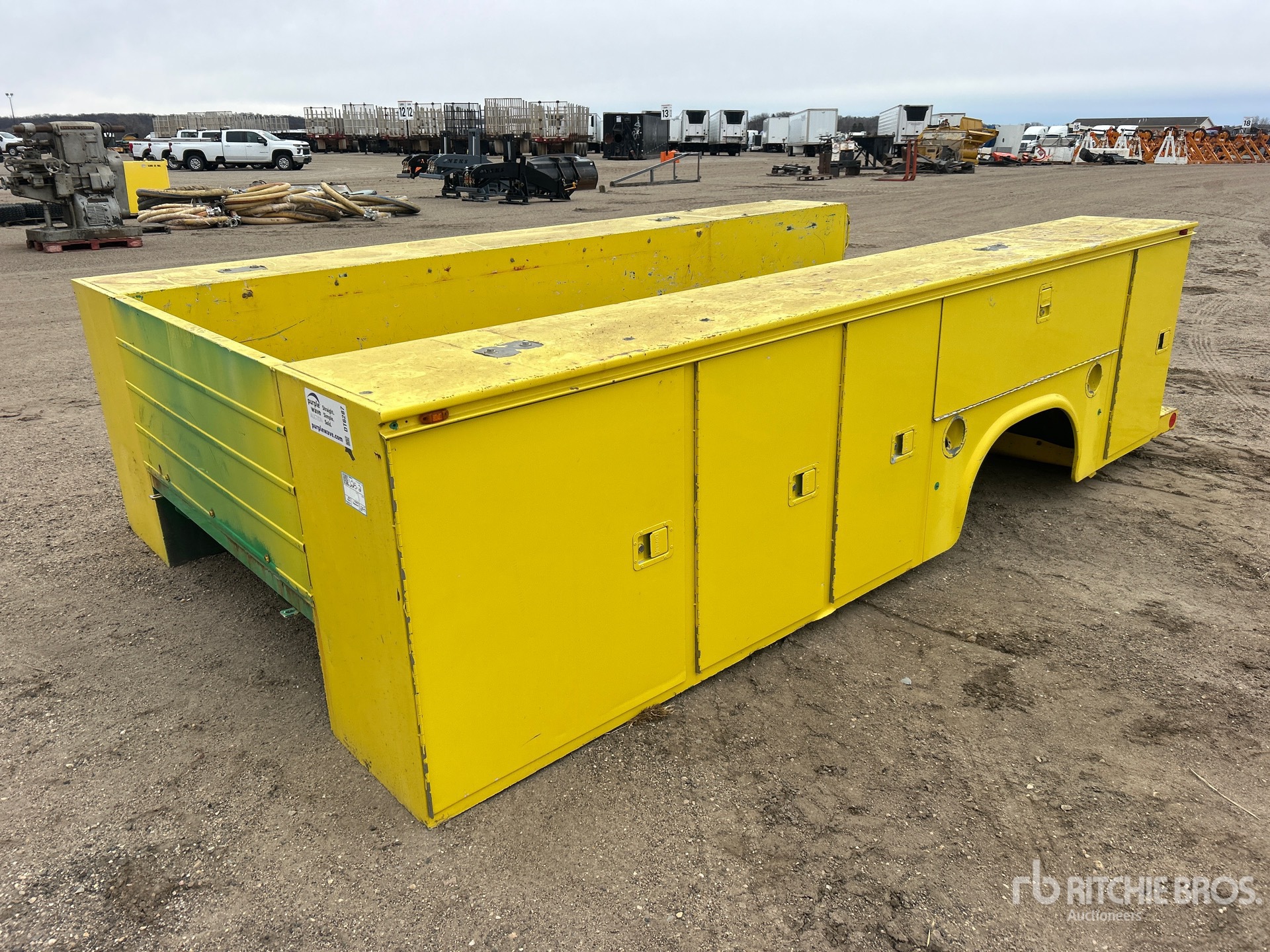 القياسات مُقدمة بشكل تقريبي فقط. قد تختلف الأبعاد الفعلية للحمولة بناءً على ارتفاع الشاحنة/المقطورة وتكوين/وضع الآلة المُحمَّلة. تقع على عاتق المشتري مسؤولية قياس جميع الأحمال قبل مغادرة موقع المزاد الخاص بنا لضمان أن الحمولة آمنة للنقل. يجب أن يتحقق المشتري من جميع القياسات. لا تعتمد على هذه القياسات لأغراض النقل.