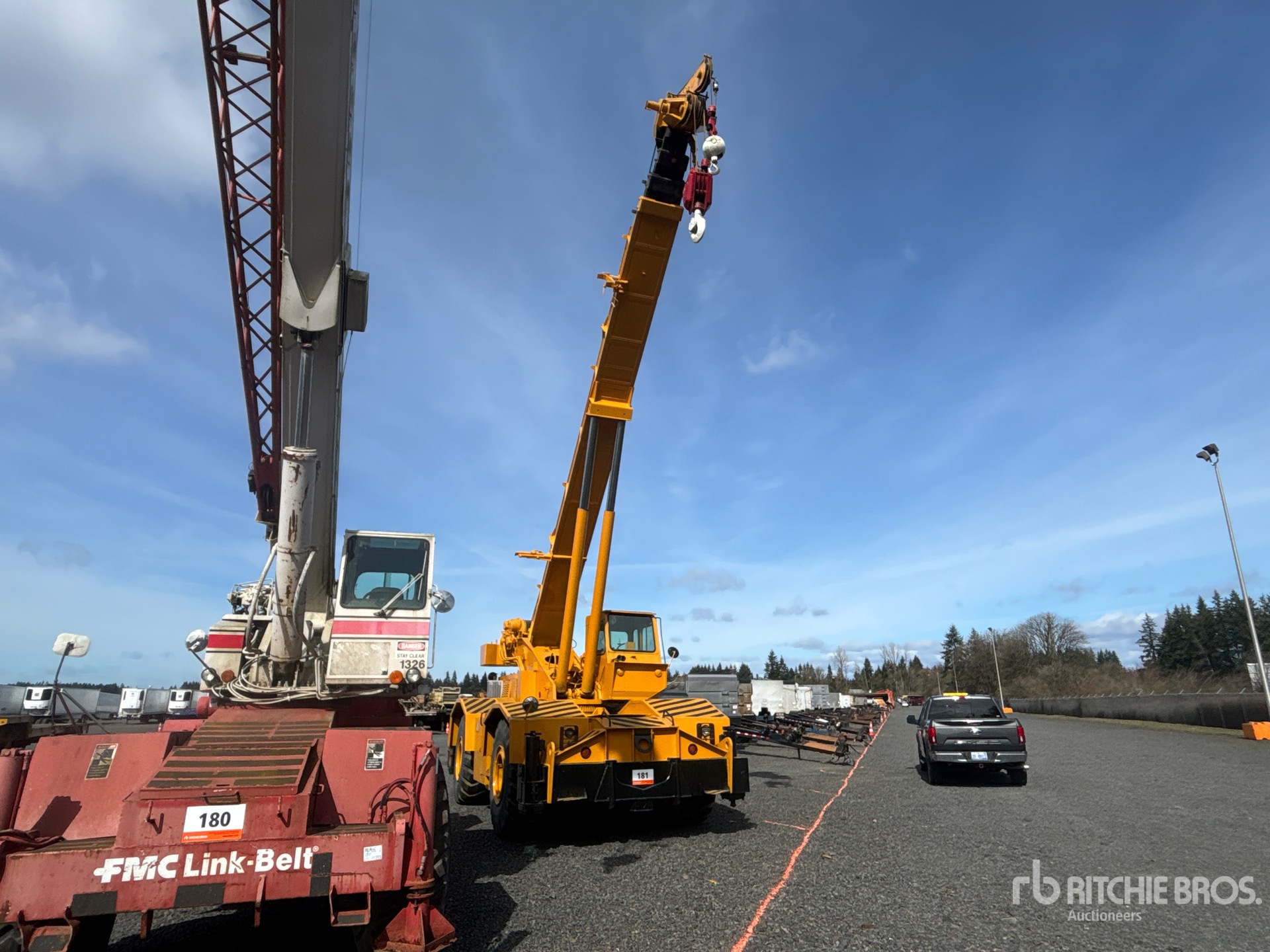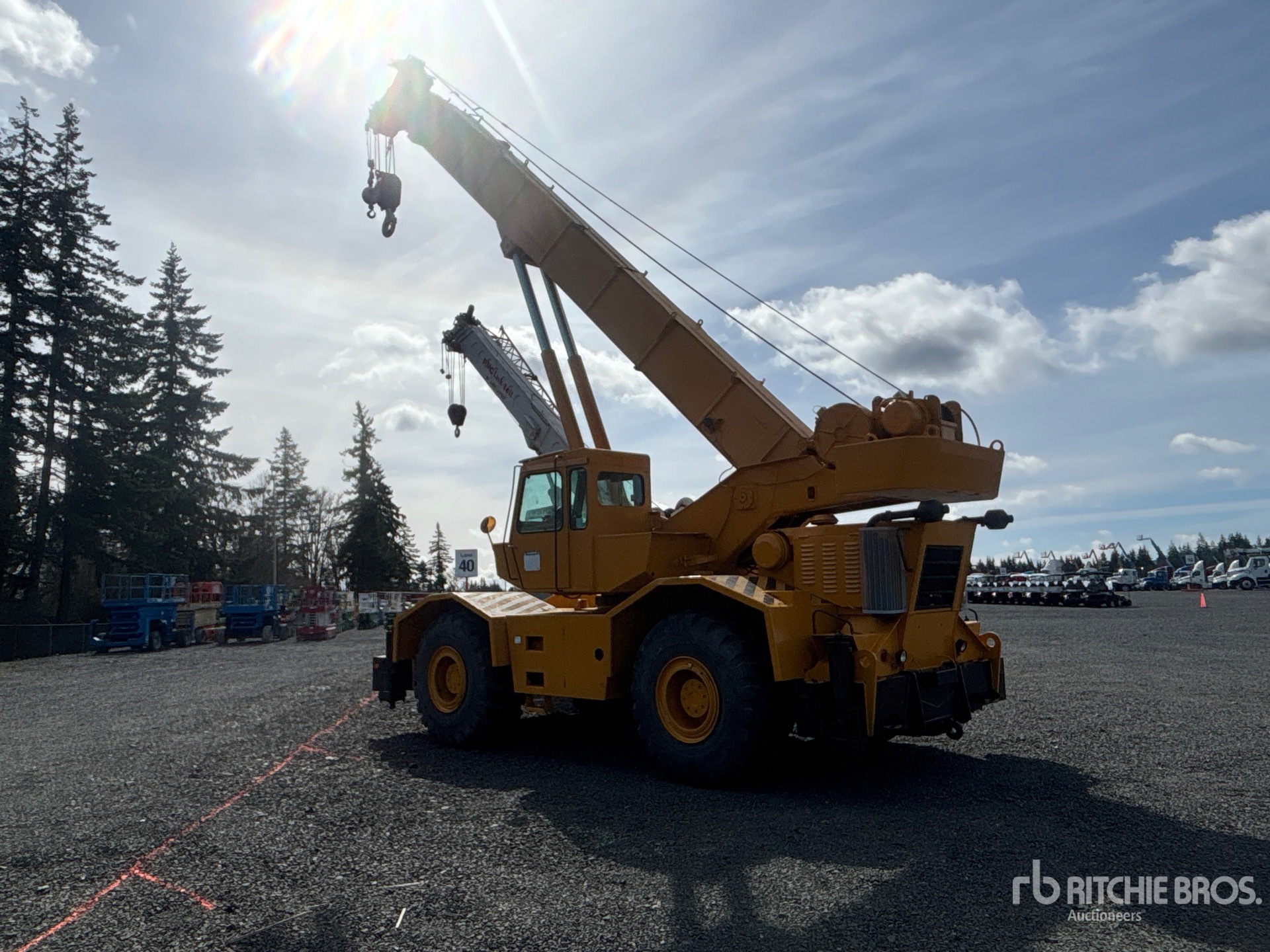 Anti Two-Block, Rayco Wylie WW830 Load Moment Indicator, Detroit 6 Cylinder Diesel Engine, 10 ft Minimum 125 ft Maximum Boom Length, Rooster Sheave, 640 lb 35 ton Capacity Johnson 3 Sheave Hook Block, Overhaul Ball