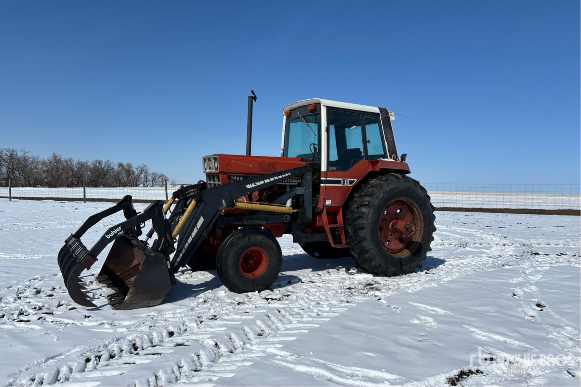 Enclosed Cab, Air Conditioner, 16 Forward 8 Reverse, Two Speed Power Shift, 162 hp Engine, Leon 707 Loader, Buhler 84 in Grapple Bucket, 3 Rear Remotes, 540/1000 PTO, Swing Drawbar, 11.00x16 Front Tires, 20.8x38 Rear Tires