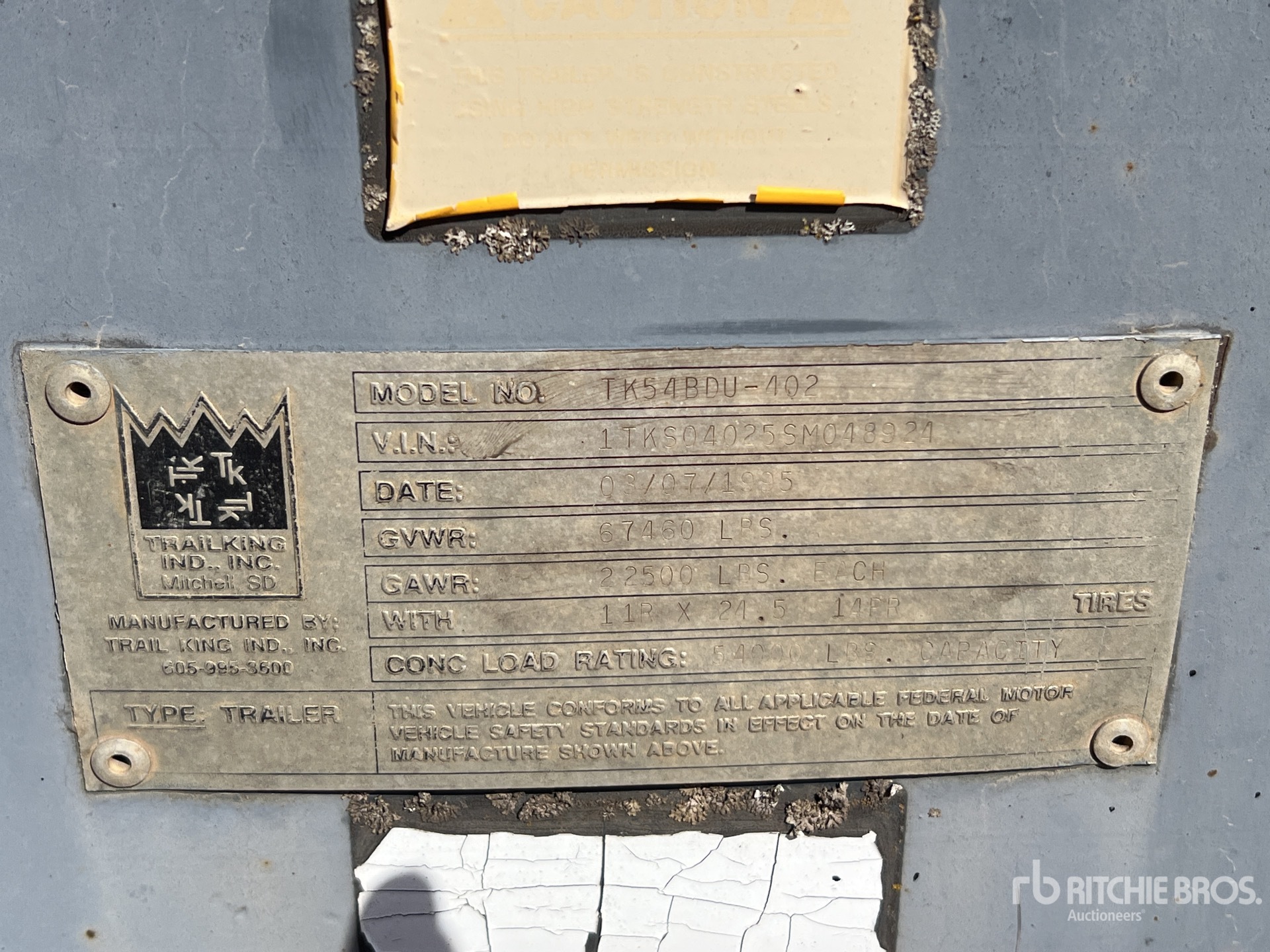 1995 Trail King TK54BDU-402 40 ft T/A مقطورة للتفريغ السفلي
