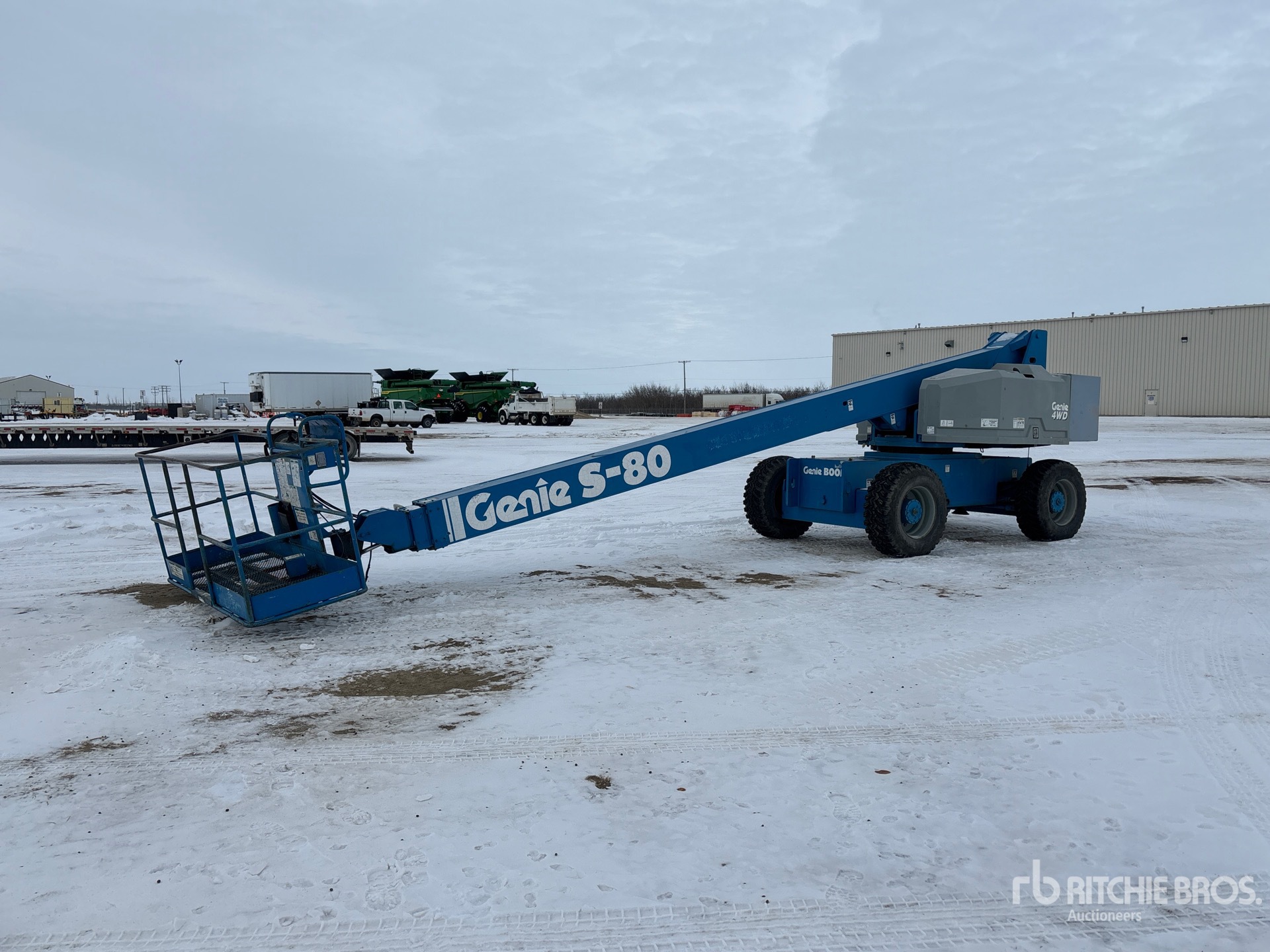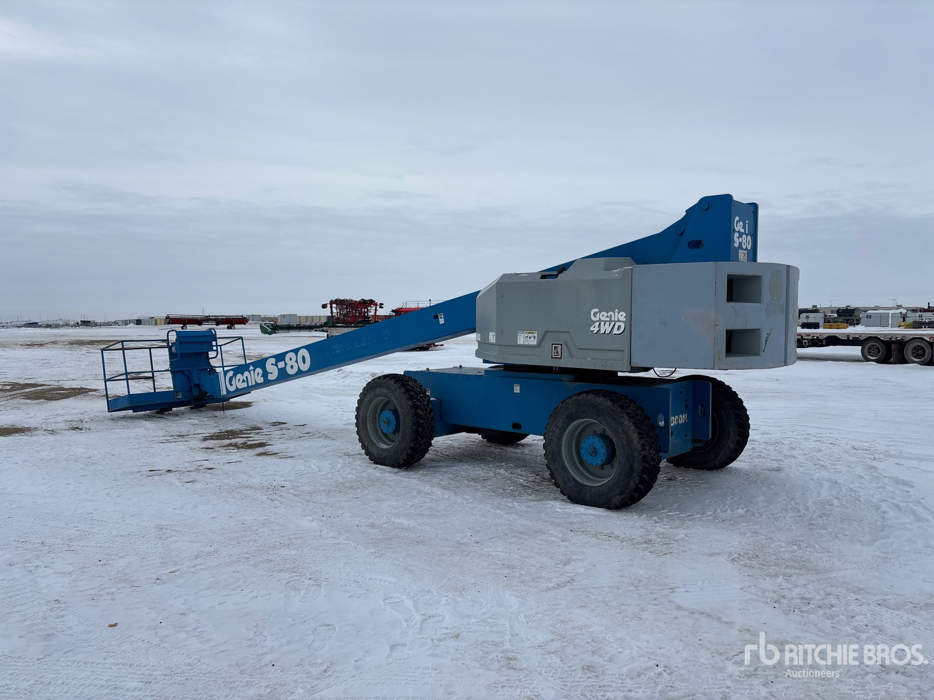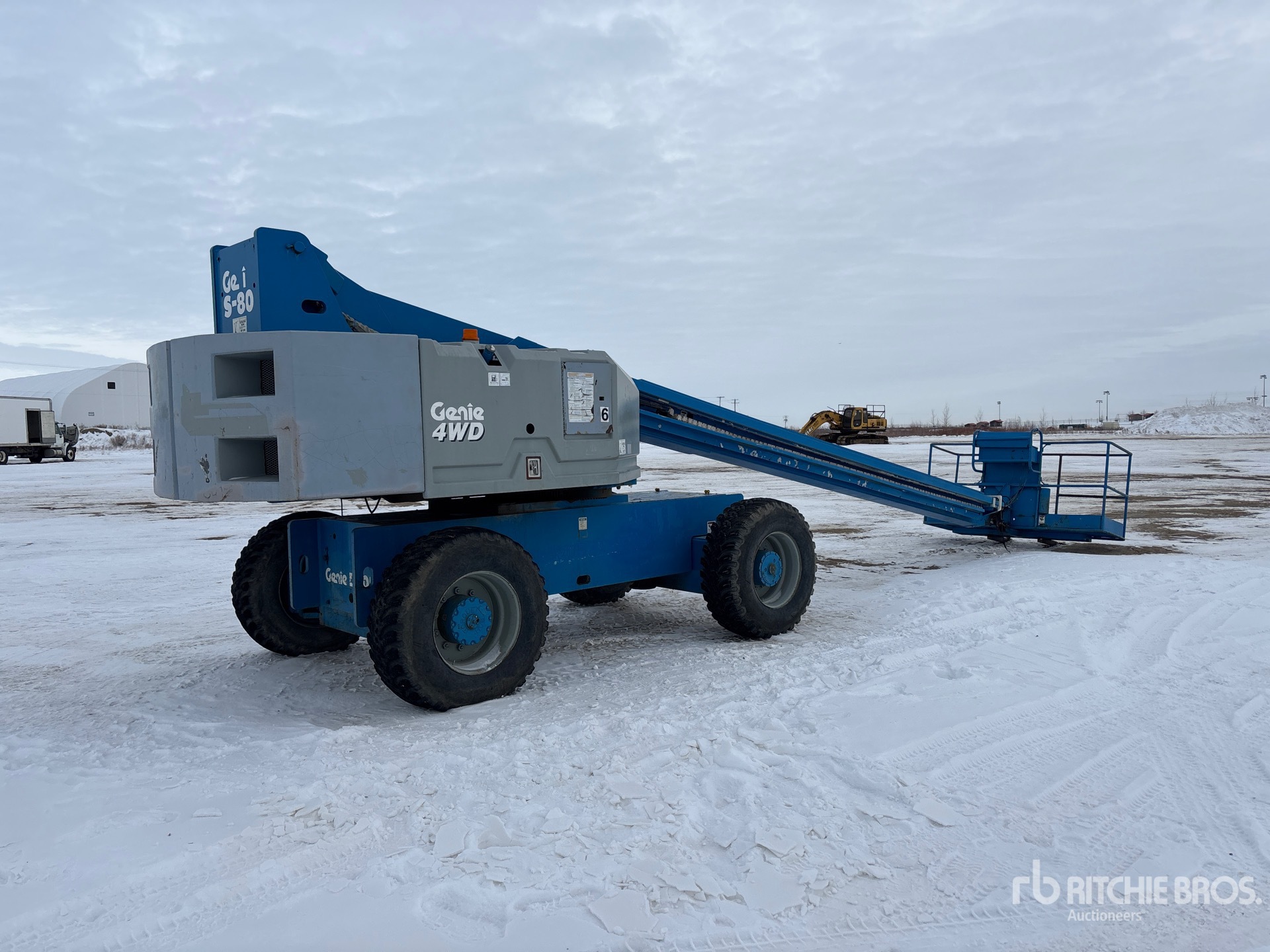 80 ft Max Platform Height, 600 lb Max Weight Capacity, Extendable Axles, 4 Cylinder Gasoline Engine, 15-22.5 Tires