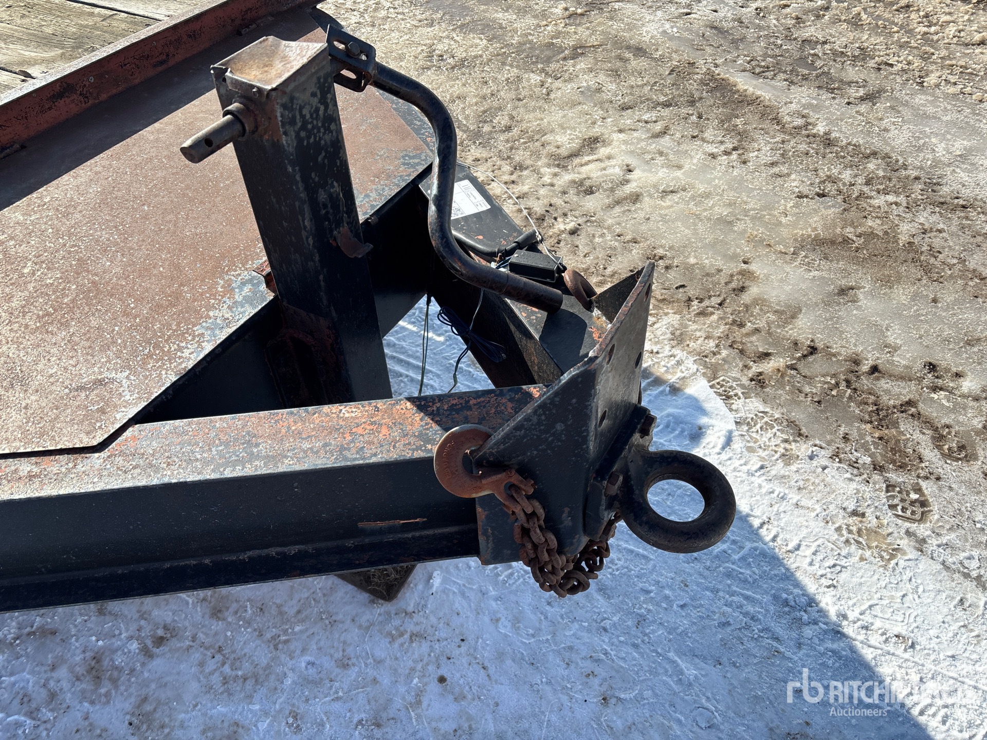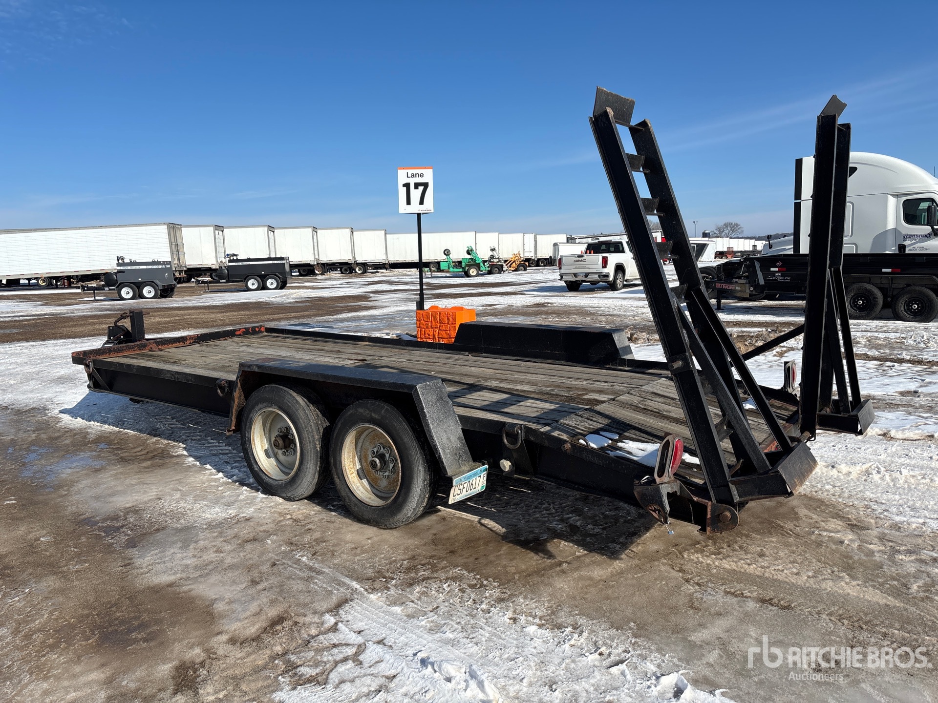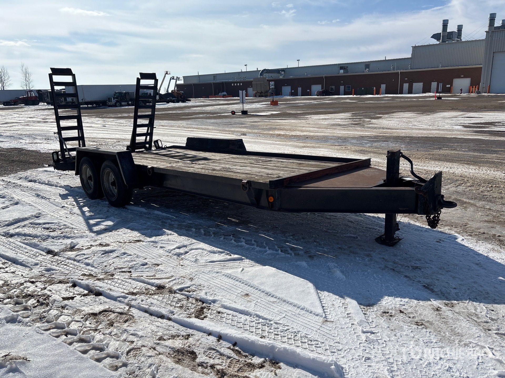 Located in Lane 16 Spot 1, Lunette Ring Hitch, Torsion Axle, 16 ft Main Deck, 3 ft Fixed Dovetail, 84 in Overall Deck Width, Spring Assisted Ramps, Wood Flooring, 215/75R17.5 Tires