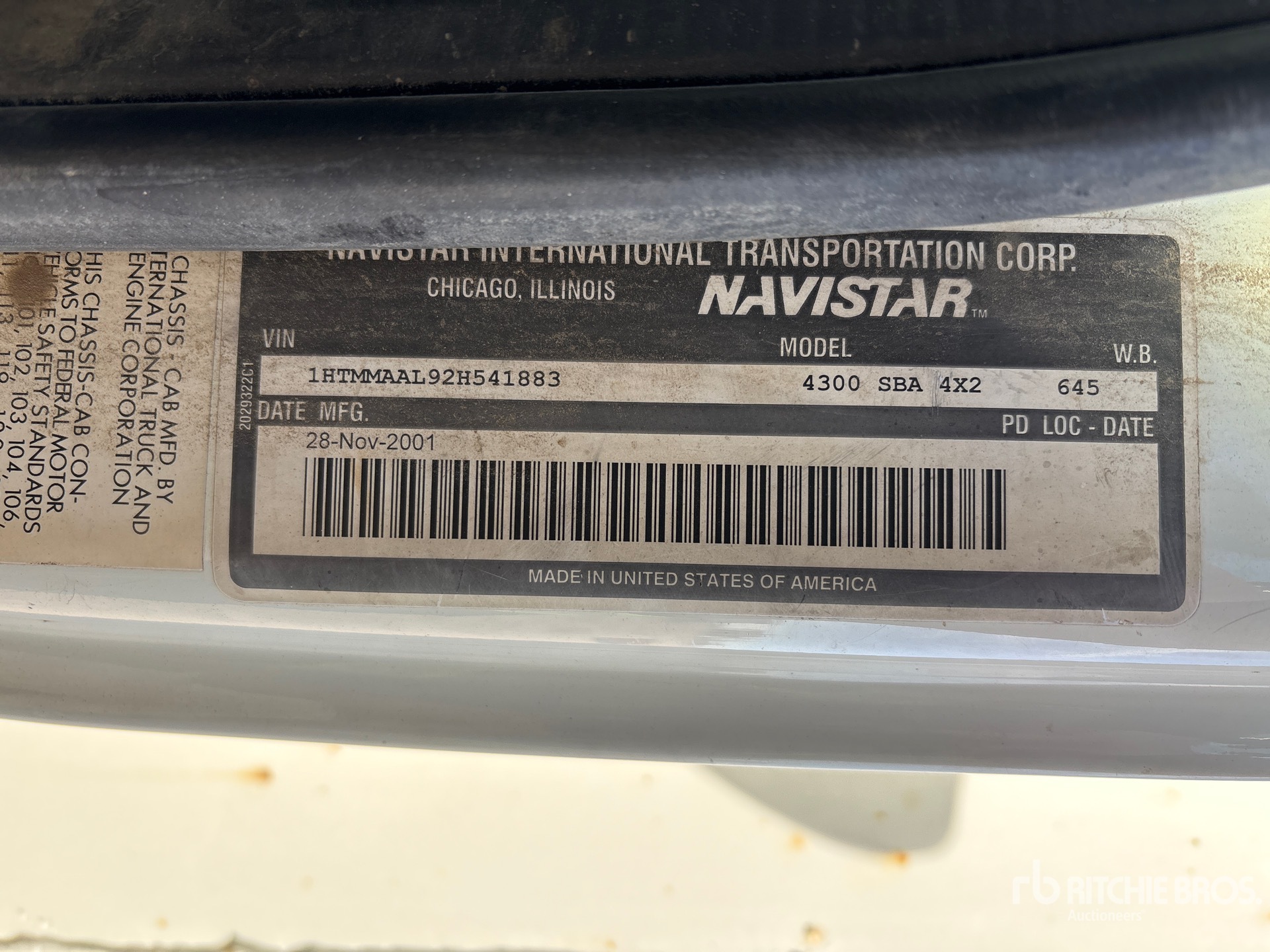 Located in Lane 8 Spot 2, International DT466 6 Cylinder 7.6 L Diesel 215 kW Engine, 2001 US EPA Label, 5048 Engine hrs, Engine Brake, Exhaust Brake, 5-Speed Automatic Transmission, Air Ride Cab, Aluminum Wheels, 11R22.5 Front Tires, 295/75R22.5 Rear Tires, 176 in Wheelbase, PTO, 2002 International 4300 DT466 16 ft Body, Manual Stabilizers, IMT 315-A Hydraulic Crane, Wireless Remote Control, Kohler Command Pro 12.5 CH12.5S Gasoline Air Compressor, Air Hose Reel