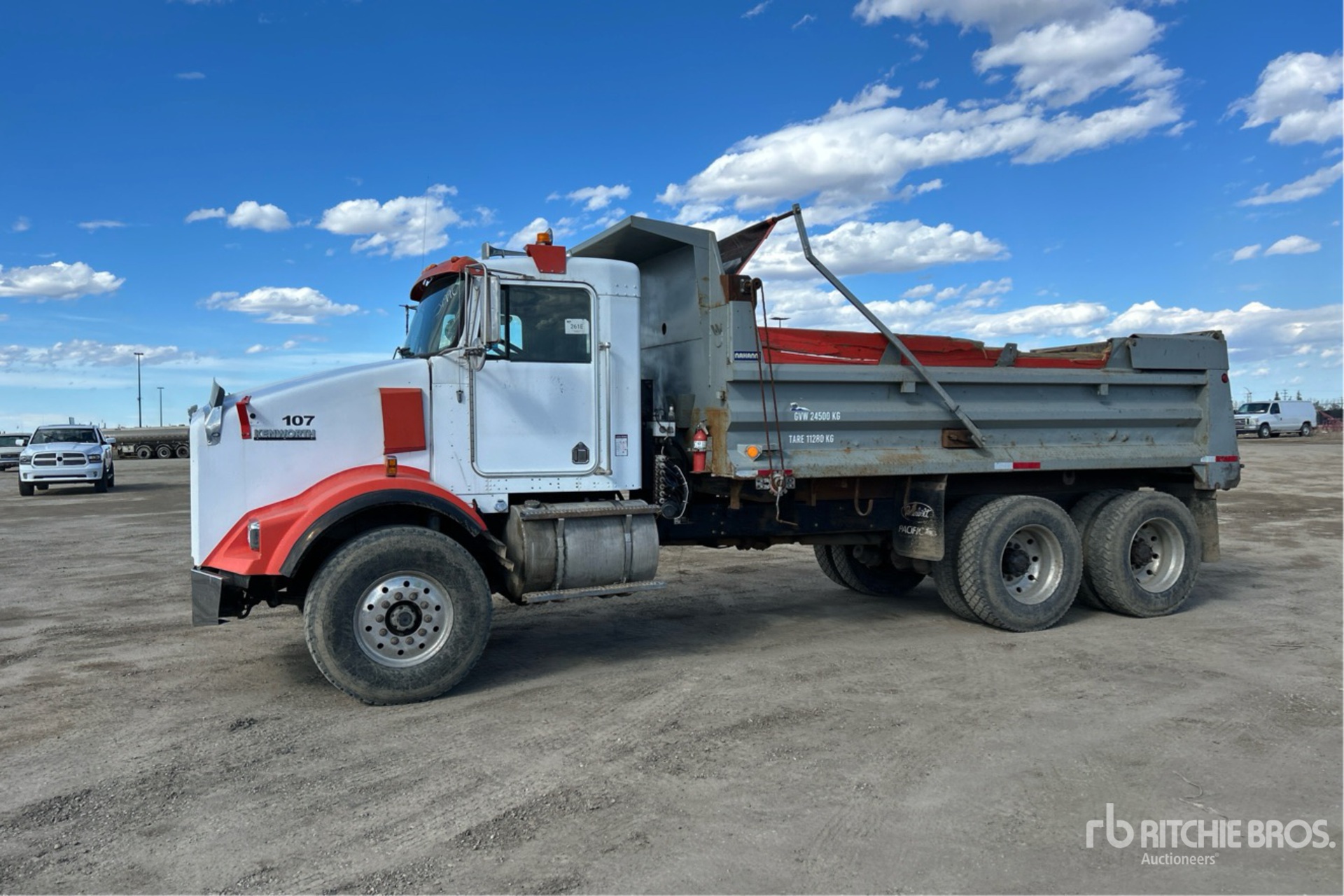 Cat C12 11.9 L Diesel 455 hp Engine, 1999 US EPA Label, CARB Compliant, 29787 Engine hrs, Engine Brake, Eaton Fuller Manual Transmission, Differential Lock, 15999 lb Front Axle, 40000 lb Rears, 55999 lb GVWR, Air Ride Cab, Aluminum Wheels, 425/65R22.5 Front Tires, 11R24.5 Rear Tires, Spring Suspension, 224 in Wheelbase, PTO, 16 ft Long x 2 ft High Steel Body, Manual Roll Tarp