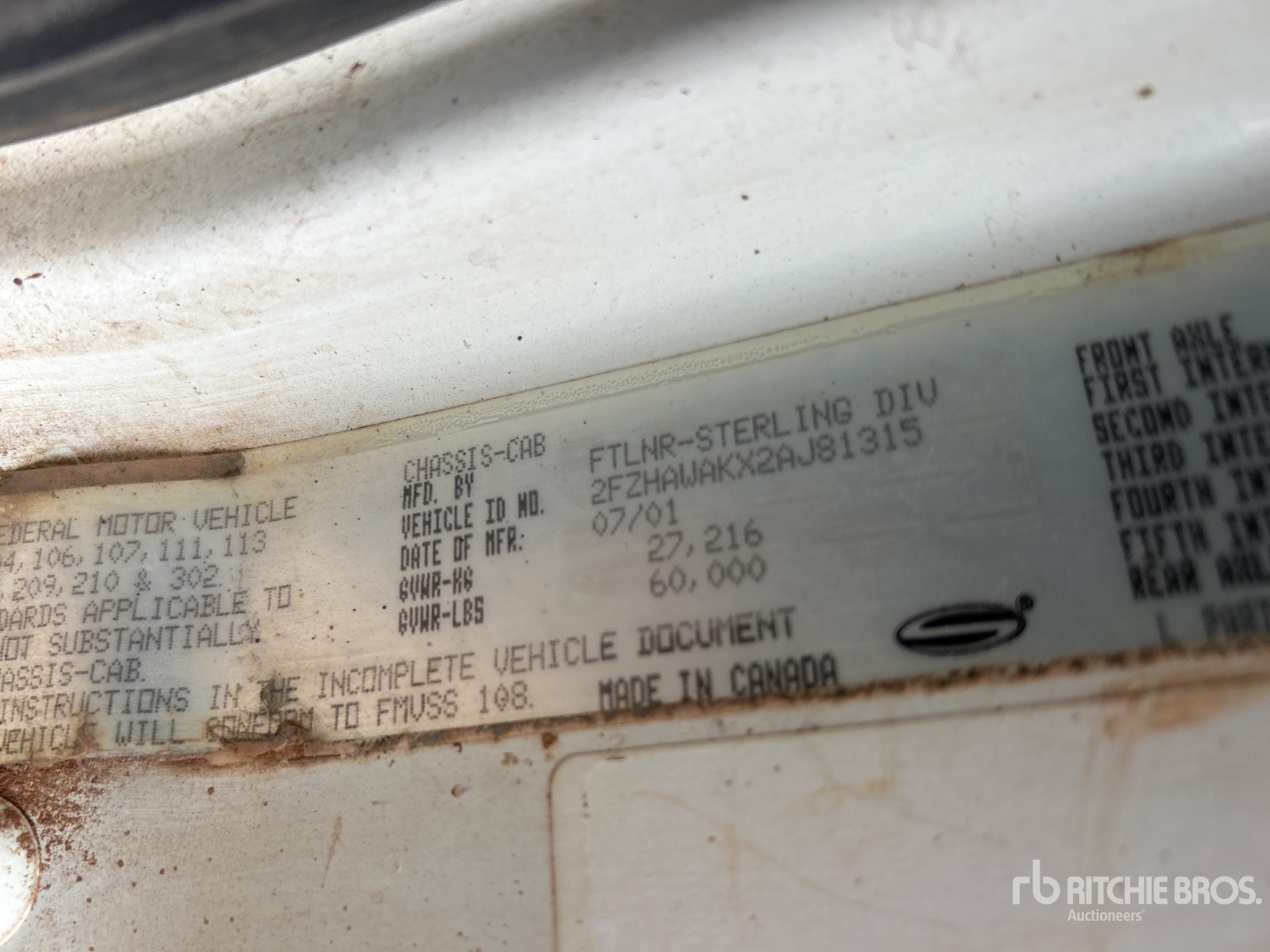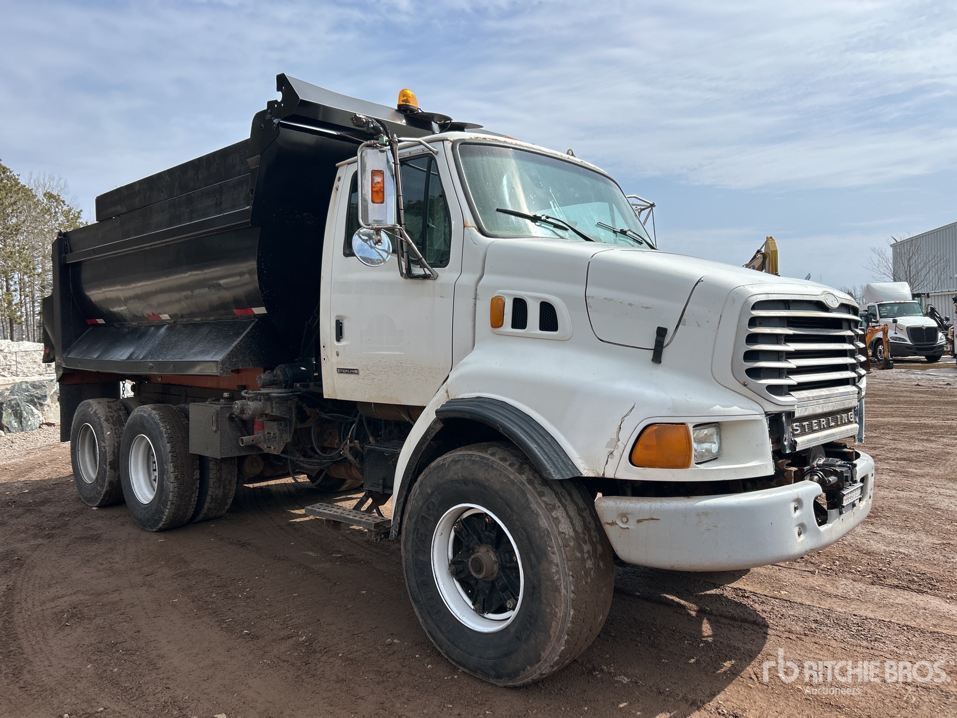 Cat 3126 6 Cylinder 7.2 L Diesel 330 hp Engine, 2001 US EPA Label, CARB Compliant, 18349 Engine hrs, Allison Automatic Transmission, Differential Lock, 20000 lb Front Axle, 40000 lb Rears, 60000 lb GVWR, 425/65R22.5 Front Tires, 11R22.5 Rear Tires, Dual Steering Boxes, Rubber over Walking Beam Suspension, 186 in Wheelbase, PTO, Viking 13 ft Long x 4 ft High Steel Body, Round Bottom, Pintle Hitch