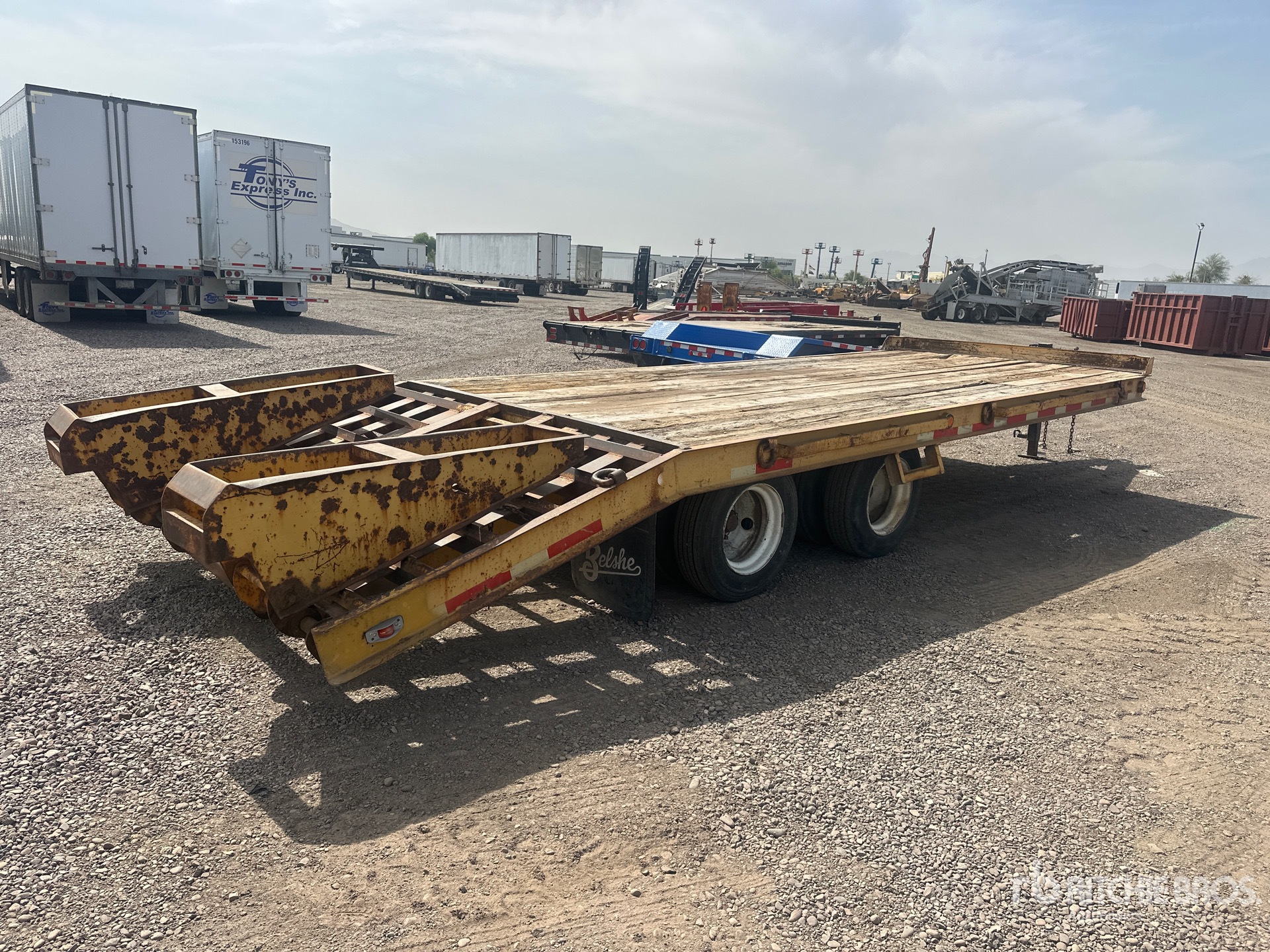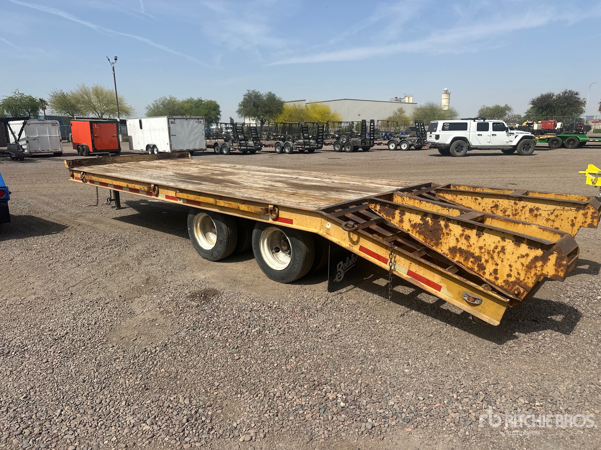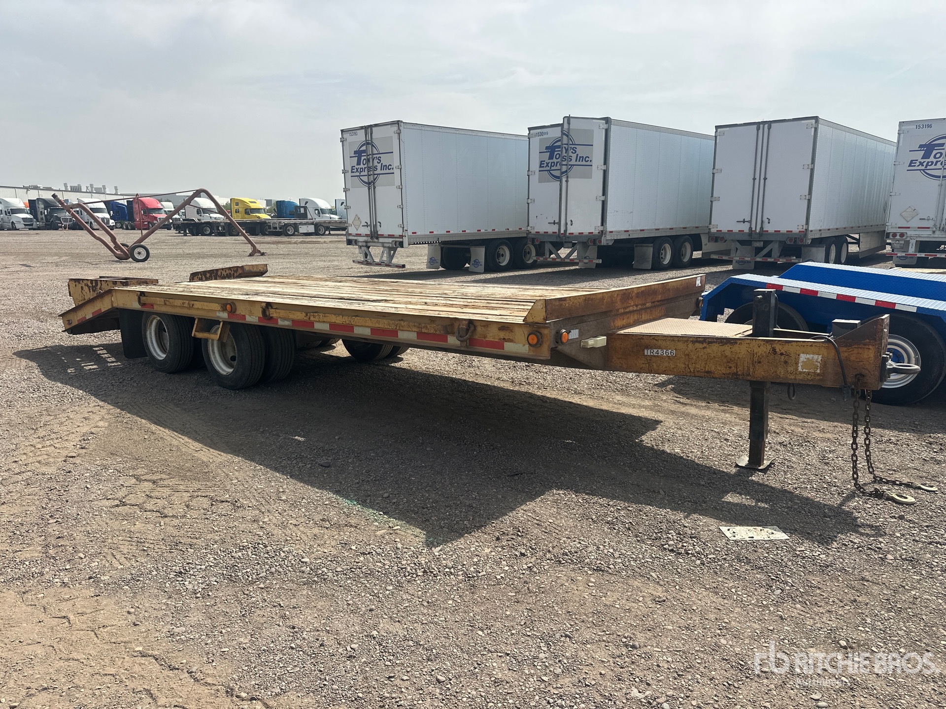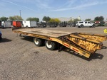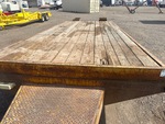 Located in Lane 11 Spot 40, Lunette Ring Hitch, Spring Suspension, Electric Brakes, 20 ft Main Deck, 102 in Usable Deck Width, Deck Over Tires, Manual Ramps, Wood Flooring, 215/75R17.5 Tires