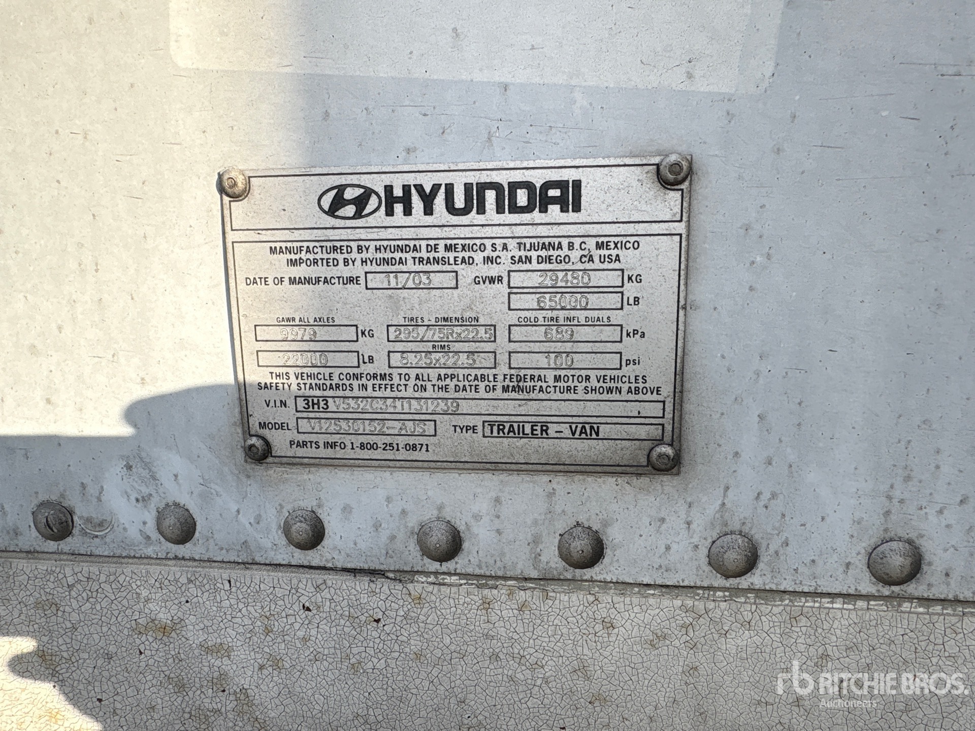 2004 Hyundai 53 ft x 102 in T/A مقطورة فان