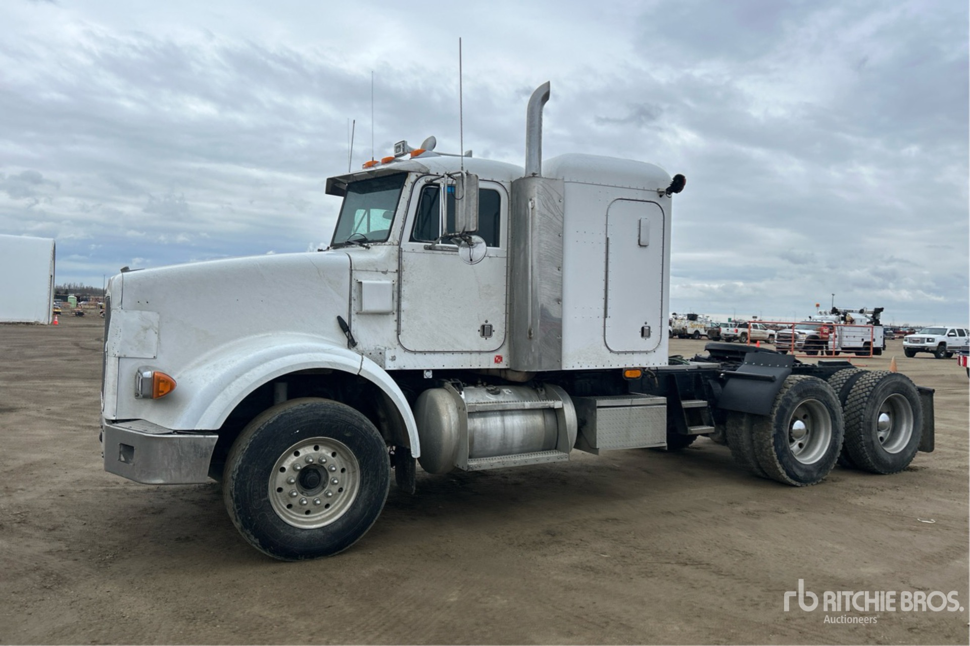 Located in Lane 34 Spot 33, Cat C12 410 hp Engine, 2003 US EPA Label, Eaton Fuller 18-Speed Manual Transmission, 14600 lb Front Axle, 40000 lb Rears, 54600 lb GVWR, Engine Brake, Differential Lock, 63 in Flat Top Sleeper Cab, 222 in Wheelbase, Air Suspension, Aluminum Wheels, 385/65R22.5 Front Tires, 11R24.5 Rear Tires, Wet Kit, Air Sliding 5th Wheel, Dual Fuel Tanks