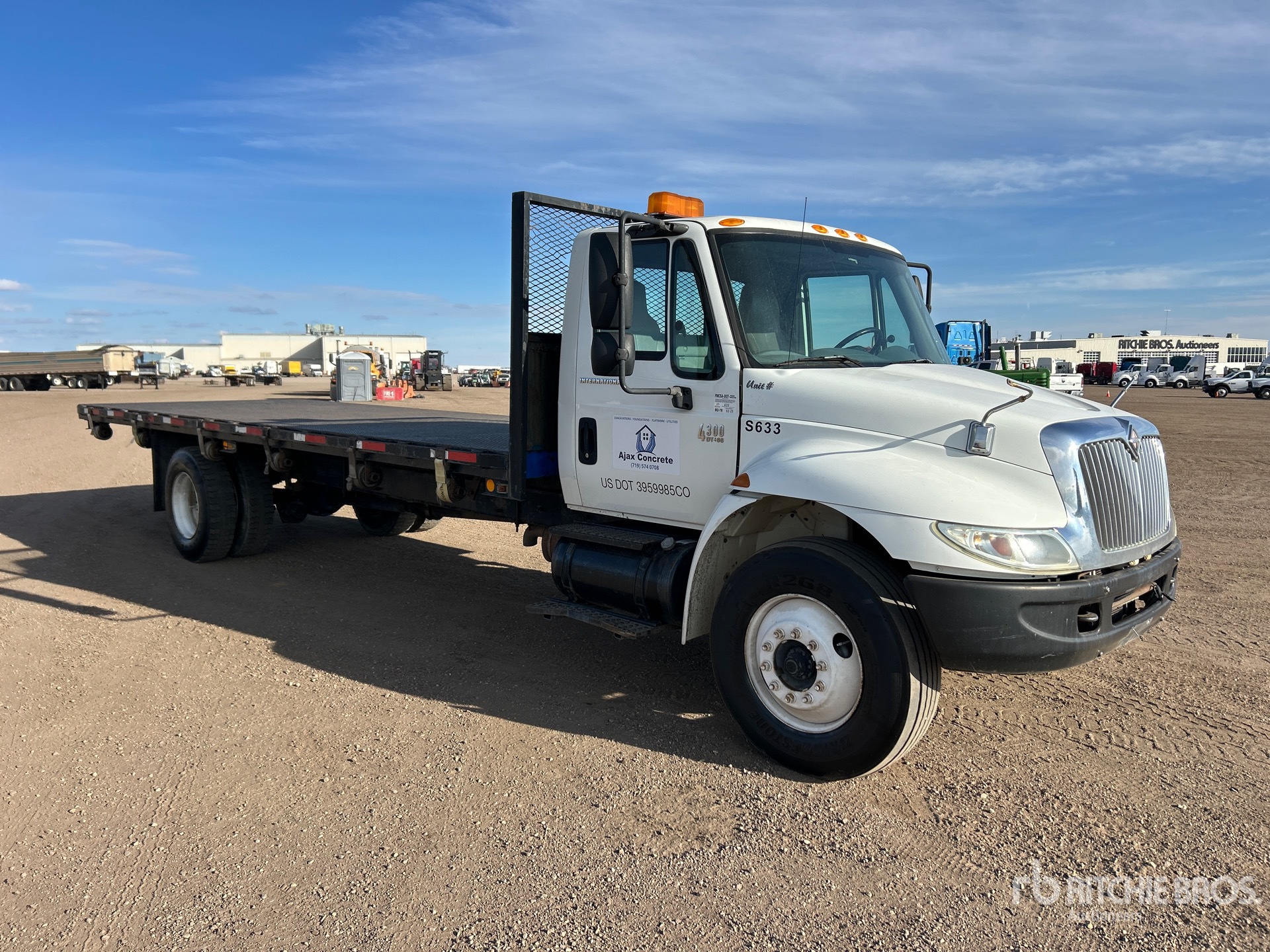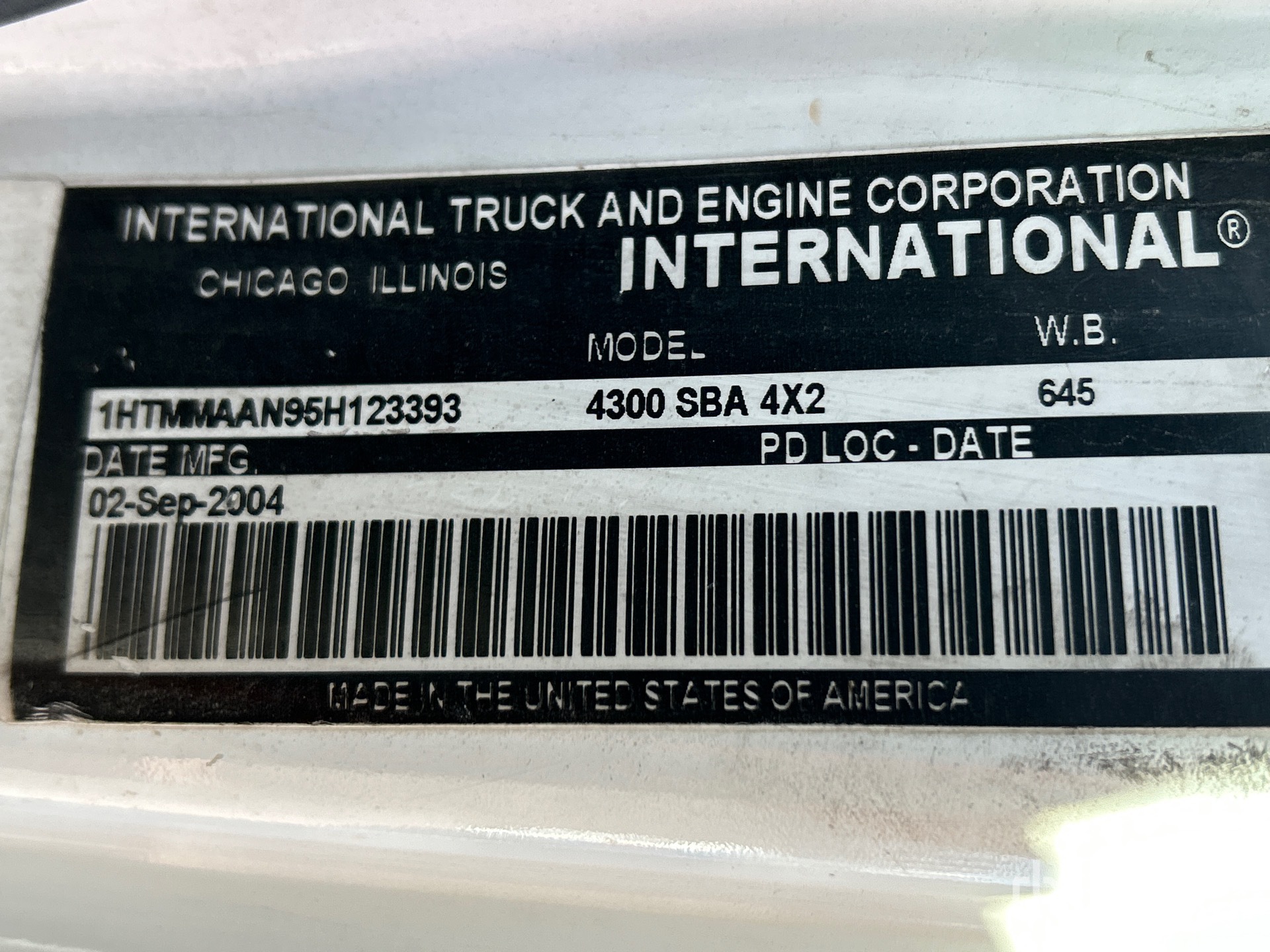 International DT466 6 Cylinder 7.6 L Diesel 245 hp Engine, 2004 US EPA Label, 7950 Engine hrs, Eaton Fuller Manual Transmission, 12000 lb Front Axle, 21000 lb Rears, 33000 lb GVWR, 11R22.5, Spring Suspension, 255 in Wheelbase, 24 ft x 101 in Bed, Pintle Hitch