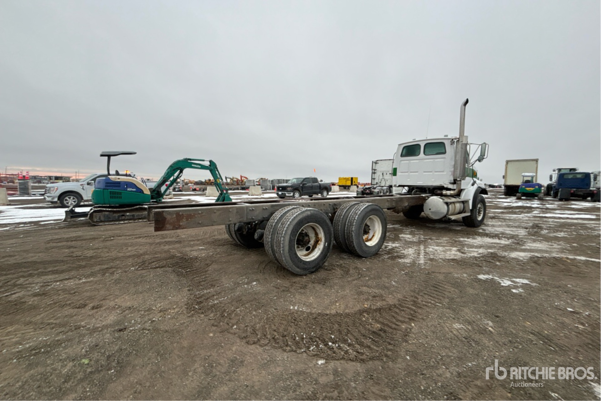 Located in Lane 12 Spot 41, Mercedes-Benz 6 Cylinder Diesel 450 hp Engine, 2004 US EPA Label, 16933 Engine hrs, Engine Brake, Eaton Fuller 8LL Manual Transmission, Differential Lock, 20000 lb Front Axle, 46000 lb Rears, 66000 lb GVWR, Air Ride Cab, Aluminum Front Wheels, 425/65R22.5 Front Tires, 11R22.5 Rear Tires, Hendrickson Haulmaax Suspension, 258 in Wheelbase, 191 in Cab to Axle, 303 in Cab to End of Frame