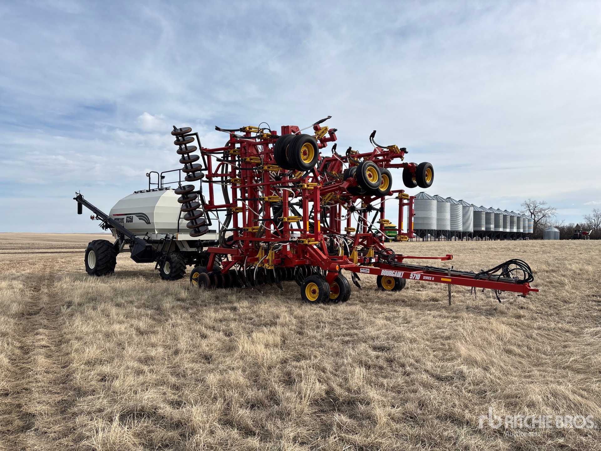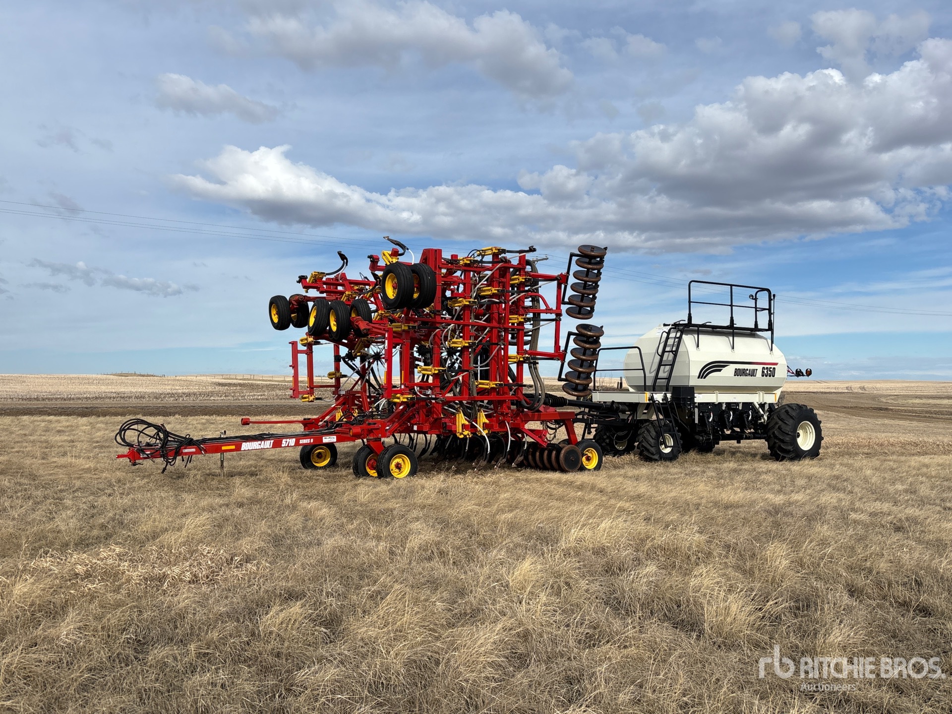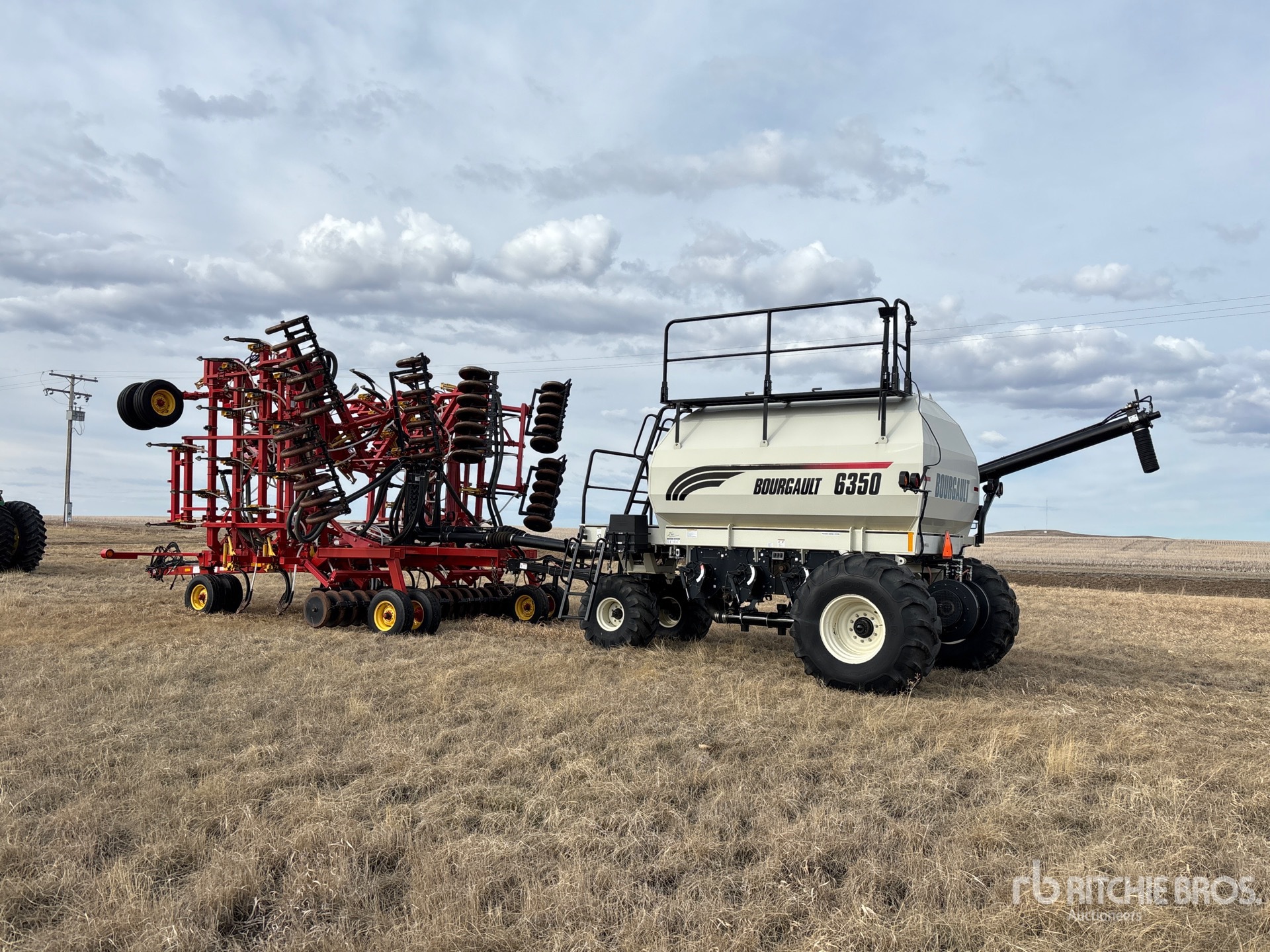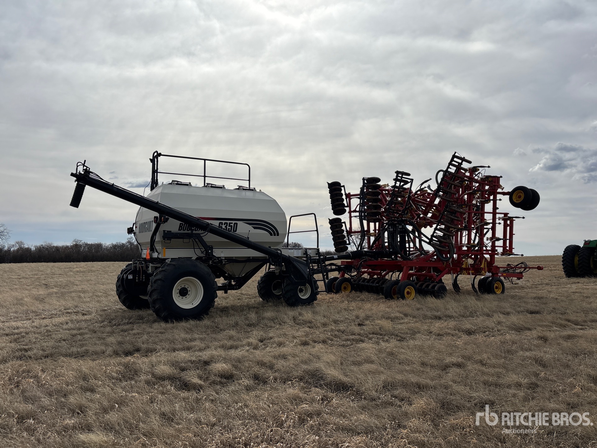 10 in Spacing, Single Shoot, Mid-Row Banding, Blockage Sensors, Steel 4.5 in Packer, 2006 Bourgault 6350 350 bu 3 Compartment Air Cart, Tank S/N 38757AS-12 Double Fan, 8 in Auger Loading System, 21.5Lx16.1SL Front Tires 28Lx26 Rear Tires