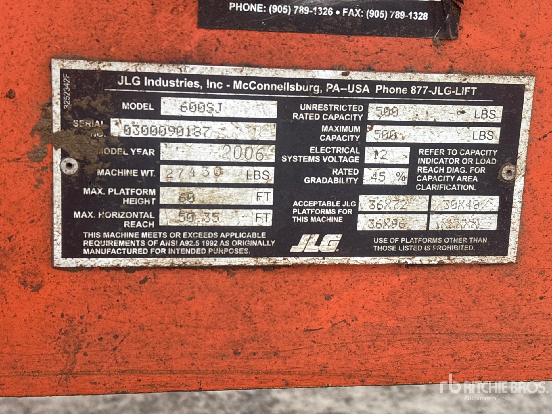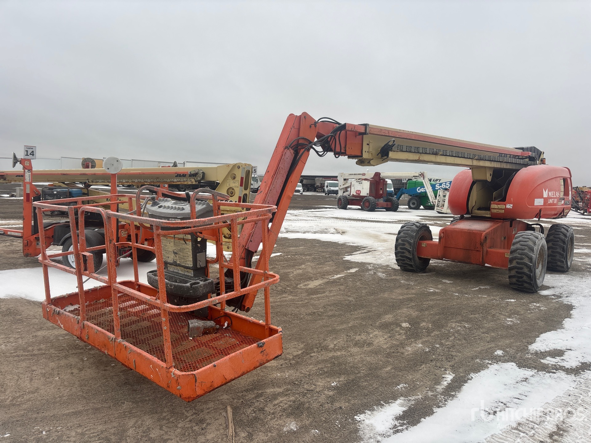 60 ft Max Platform Height, 500 lb Max Weight Capacity, Jib, Power to Platform, 2005 US EPA Label, CARB Compliant, Deutz 3 Cylinder 65 hp 3.1 L Diesel Engine, 15-19.5 NHS Tires
