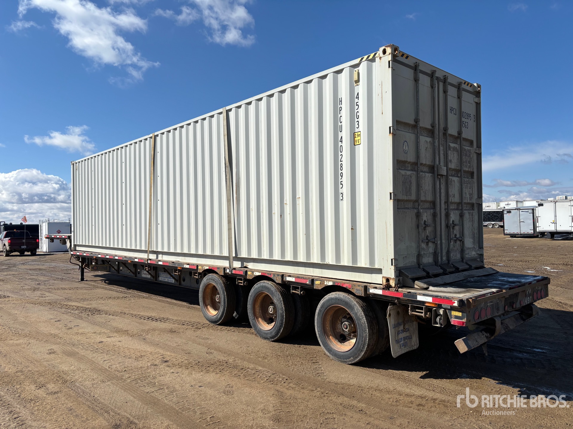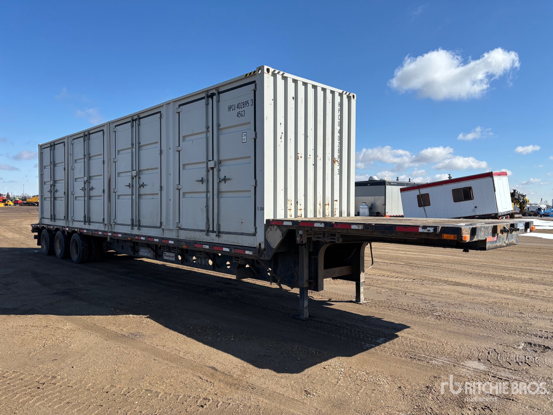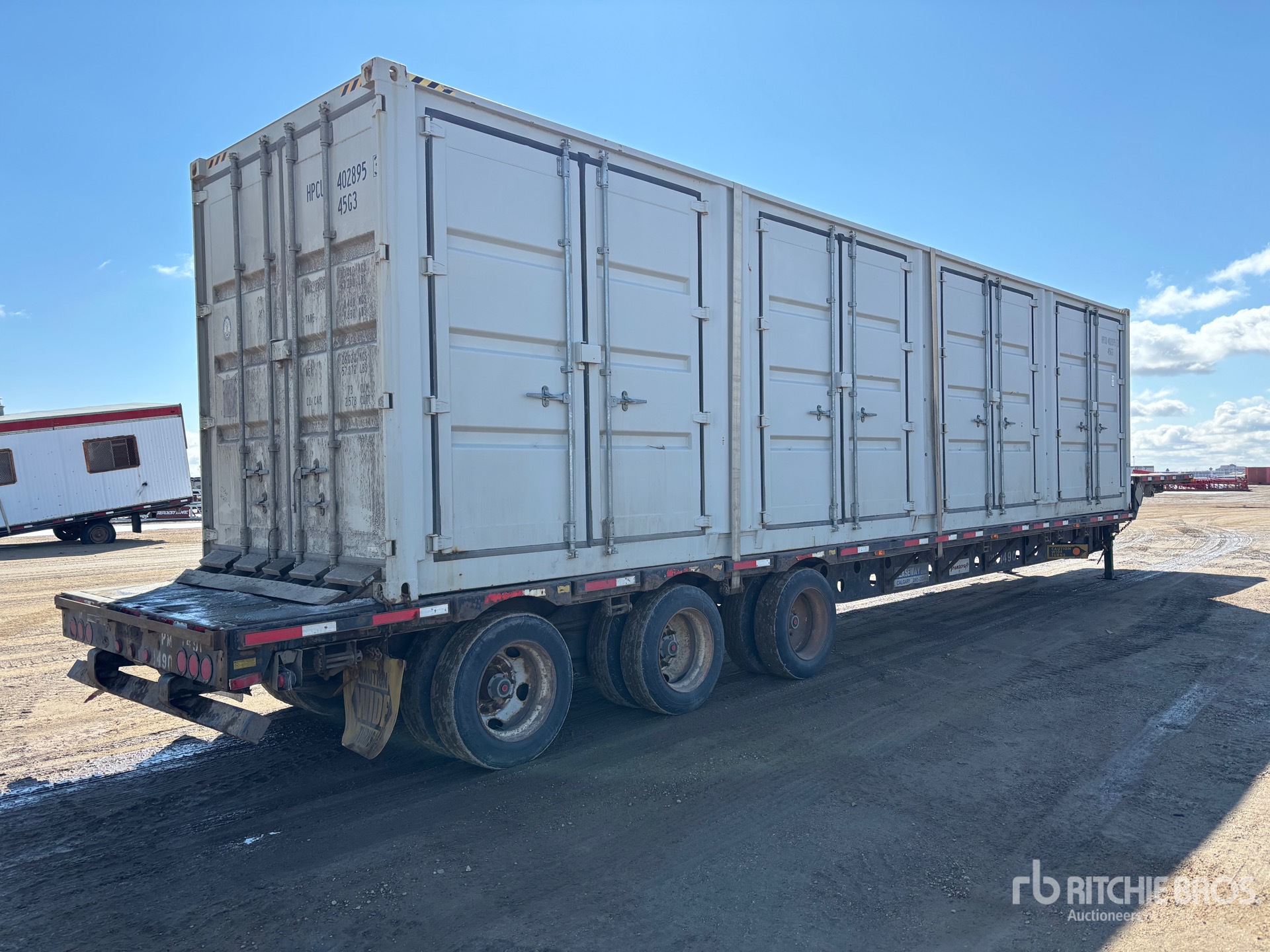 Air Ride Suspension, Air Brakes, 10 ft Upper Deck, 43 ft Main Deck, 102 in Overall Deck Width, Deck Over Tires, Wood Flooring, 255/70R22.5 Tires, 100000 lb GVWR, Seacan Job Trailer -Trailer Has Current CVIP. Inside Has 20 ft of Shelving with Toolbox, 20 ft of Open Floor Space, External Electrical Plug to Power Lights and Toolbox, Comes with Stairs and Handrails.