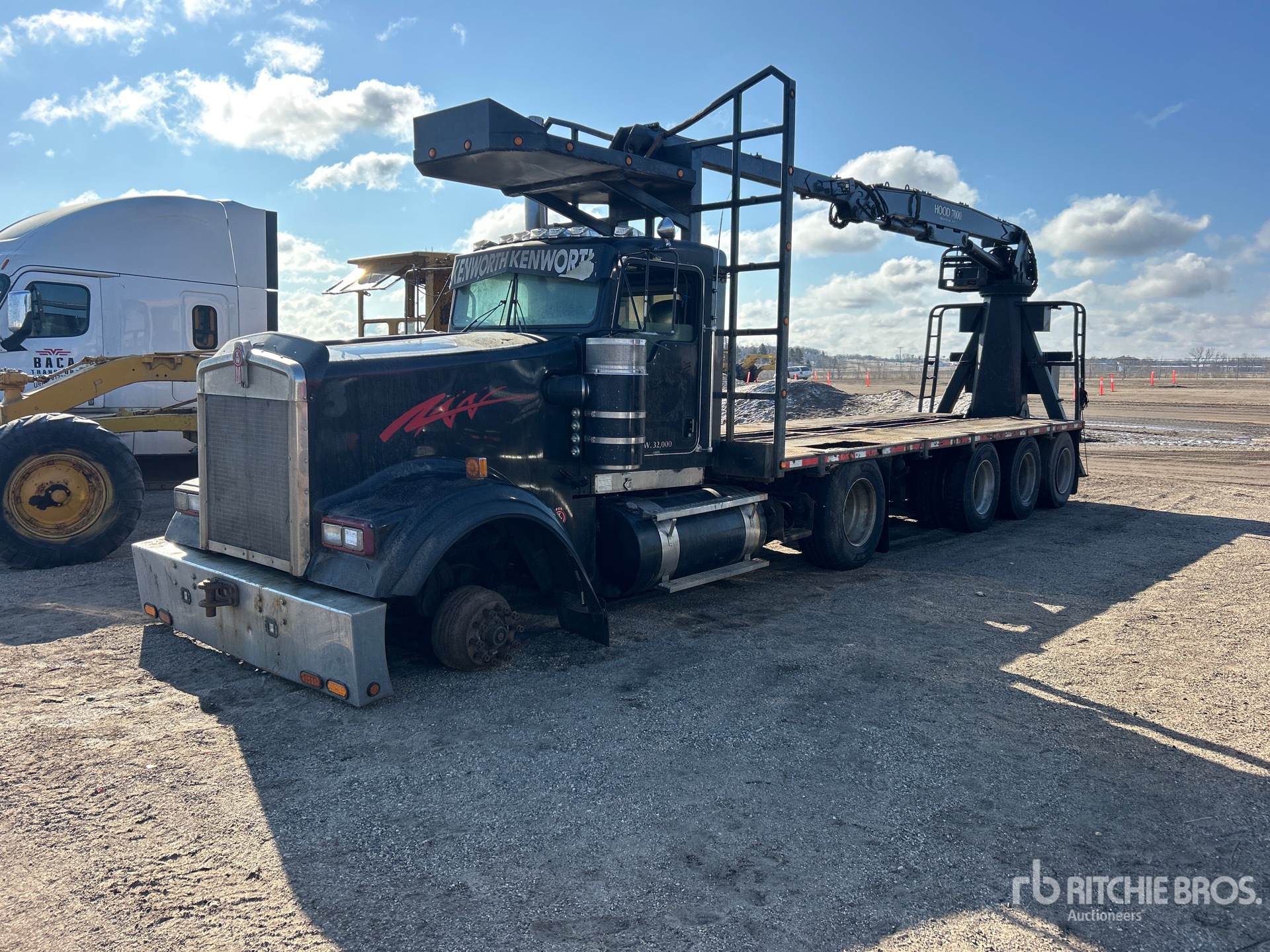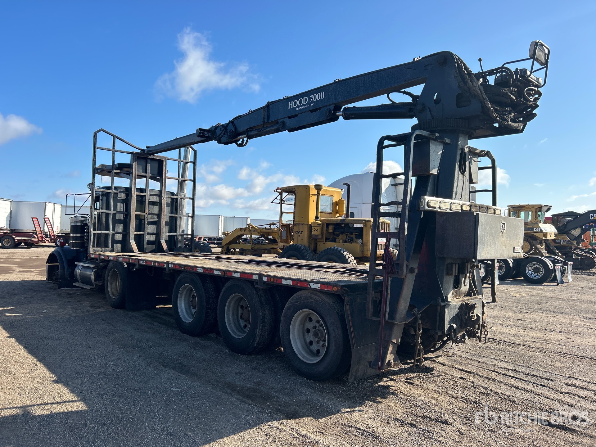 Located in Lane 17 Spot 20, Cat C15 6 Cylinder Diesel Engine, Eaton Fuller RTLO-18918B 18-Speed Manual Transmission, 18000 lb Front Axle, 69000 lb Rears, 4.1:1 Axle Ratio, 80000 lb GVWR, 425/65R22.5 Front Tires, 11R22.5 Rear Tires, Air Lift Pusher Axle, Air Ride Suspension, 326 in Wheelbase, 22 ft Boom, Rear Outriggers, 23 ft x 102 in Bed, Pintle Hitch