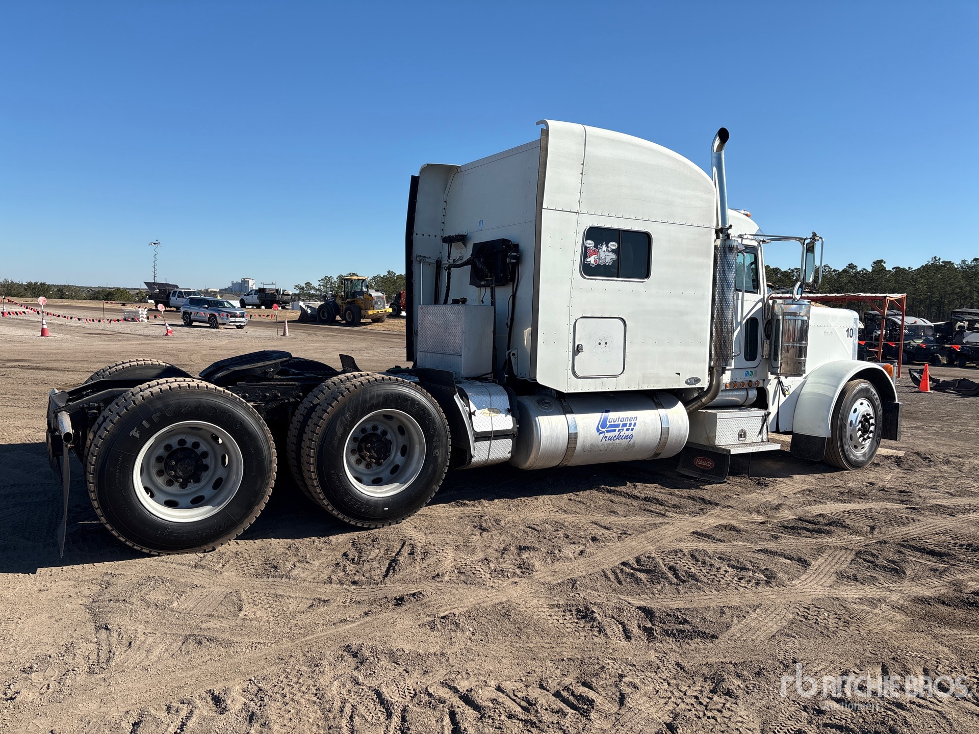 Located in Lane 82 Spot 31, Cat C15 Engine, Eaton Fuller 18-Speed Manual Transmission, 12000 lb Front Axle, 38000 lb Rears, 50000 lb GVWR, Engine Brake, 63 in Mid Roof Sleeper Cab, Bunk Beds, Auxiliary Power Unit, 265 in Wheelbase, Air Suspension, 11R24.5, Wet Kit, Air Sliding 5th Wheel, Dual Fuel Tanks