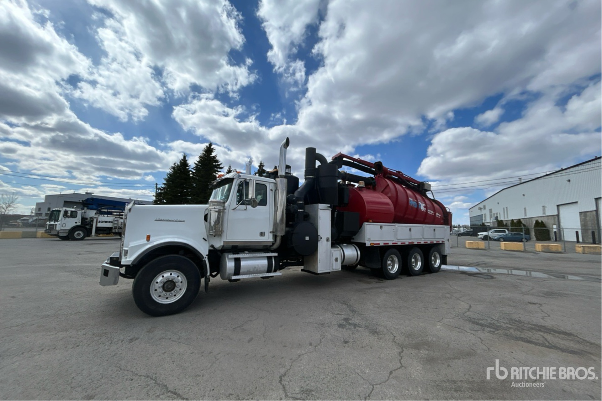 Mercedes-Benz OM460LA 12.8 L Diesel 450 hp Engine, 2006 US EPA Label, 2477 Engine hrs, Engine Brake, Eaton Fuller RTLO-16918B 18-Speed Manual Transmission, Triple Differential Locks, 9072 kg Front Axle, 31299 kg Rears, 4.30:1 Axle Ratio, 40370 kg GVWR, Aluminum Wheels, 425/65R22.5 Front Tires, 11R22.5 Rear Tires, Dual Steering Boxes, Double Frame, Air Ride Suspension, 342 in Wheelbase, PTO, Hydraulic System, Steel Debris Tank, Hoist, Vibrator, Front Hose Reel, Fresh Water Tank, Hydraulic Lift Tailgate, Hydraulic Tailgate Locks, Boom, 8 in Suction Hose, PTO Driven Pump, Blower w/ 5269 hrs, Dynablast Cab420fls12v 420000 BTU Boiler