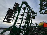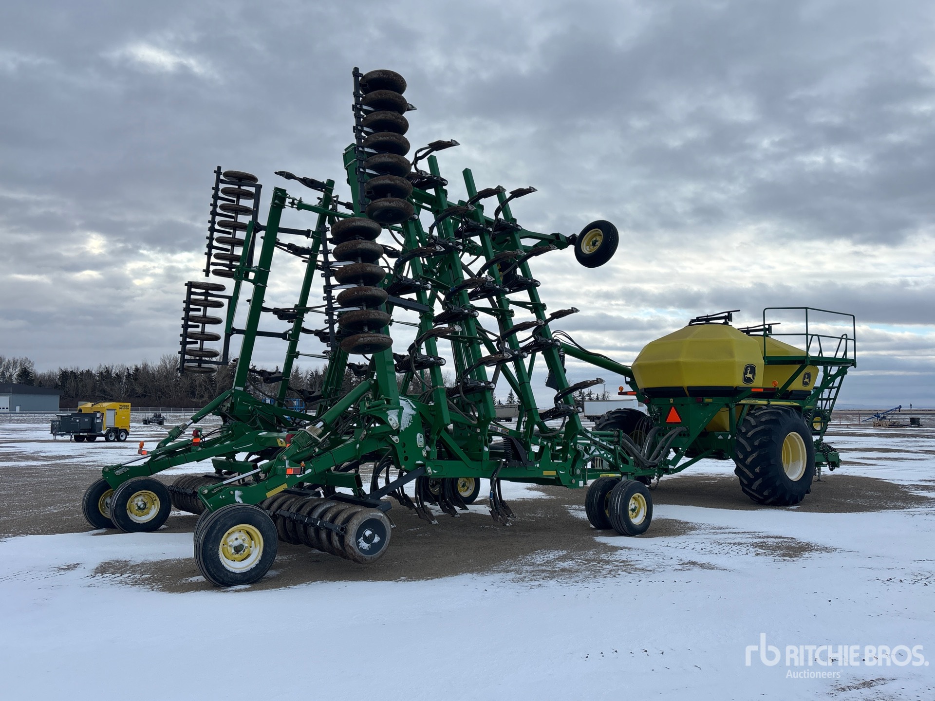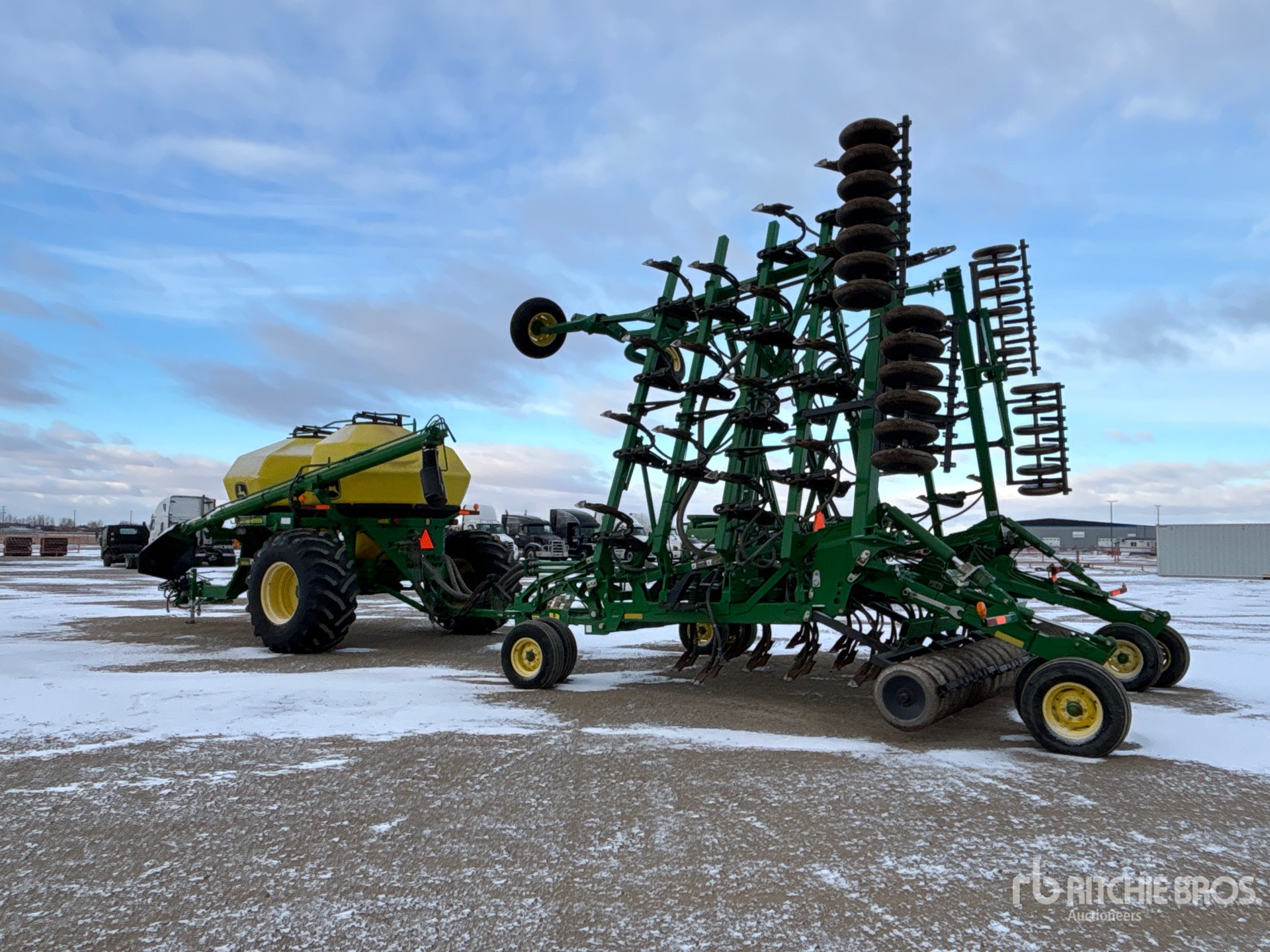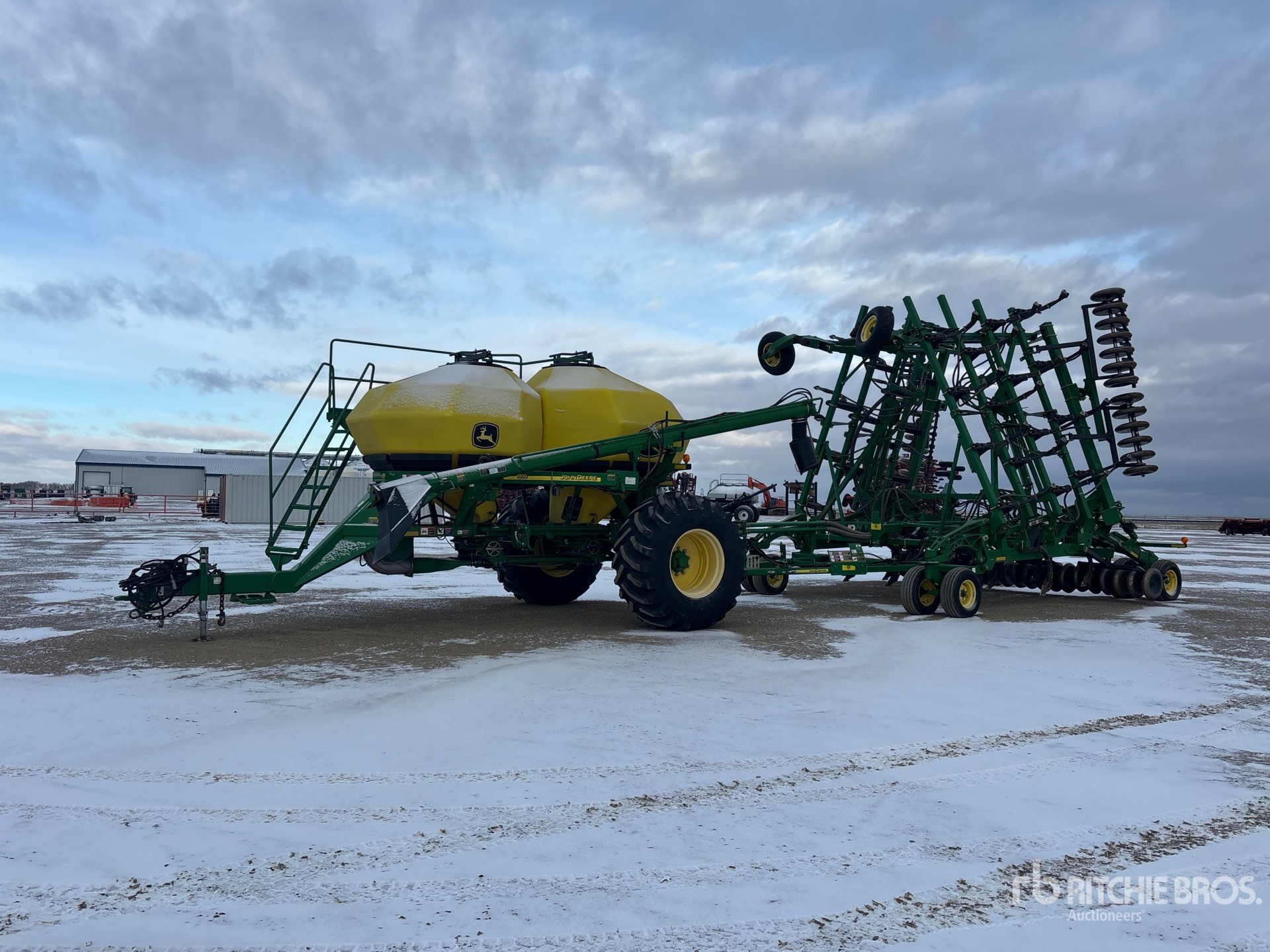 10.5 in Spacing, Single Shoot, Blockage Sensors, Steel 4 in Packer, 2009 John Deer 1910 270 bu 2 Compartment Tow-Between Air Cart, Tank S/N A01910T730610 Single Fan, 8 in Auger Loading System, Loading Auger, Variable Rate Metering System, 30.5L-32 Front Tires Rear Hitch