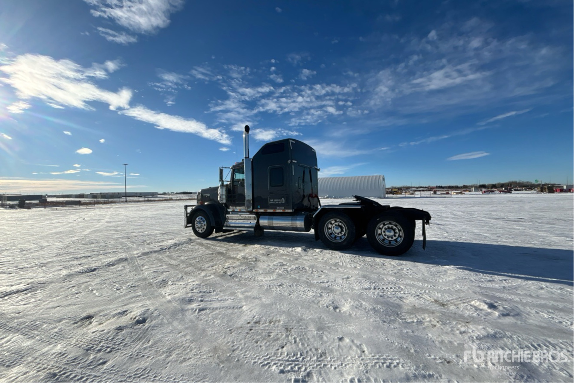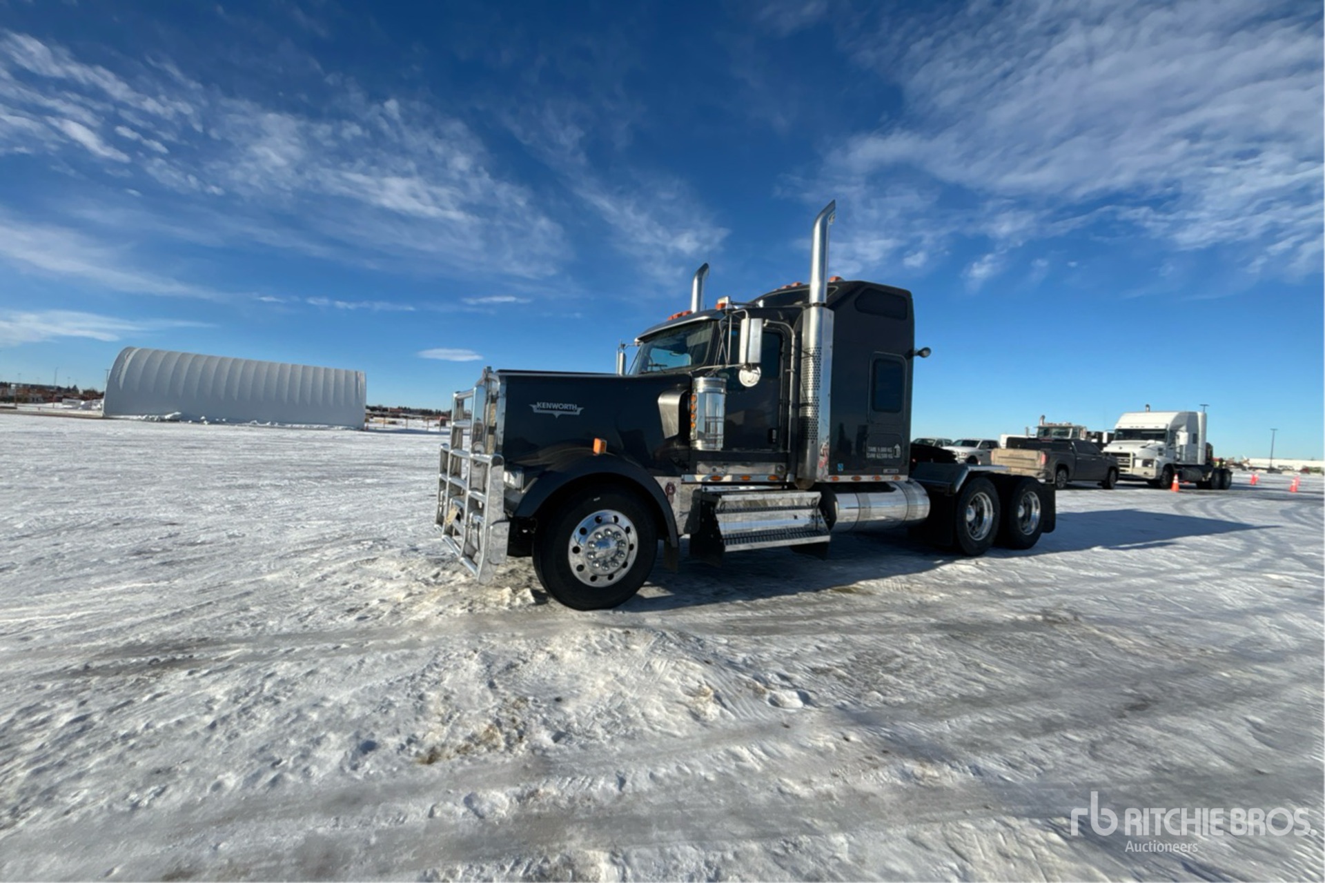Cummins ISX 550 hp Engine, 36881 Engine hrs, Eaton Fuller RTLO-18918B 18-Speed Manual, 13201 lb Front Axle, 40000 lb Rears, 24132 kg GVWR, Engine Brake, Double Differential Locks, 62 in Mid Roof Sleeper Cab, 144 in Wheelbase, Air Suspension, Aluminum Wheels, 11R24.5, Air Sliding 5th Wheel, Dual Fuel Tanks, Aluminum Moose Bumper