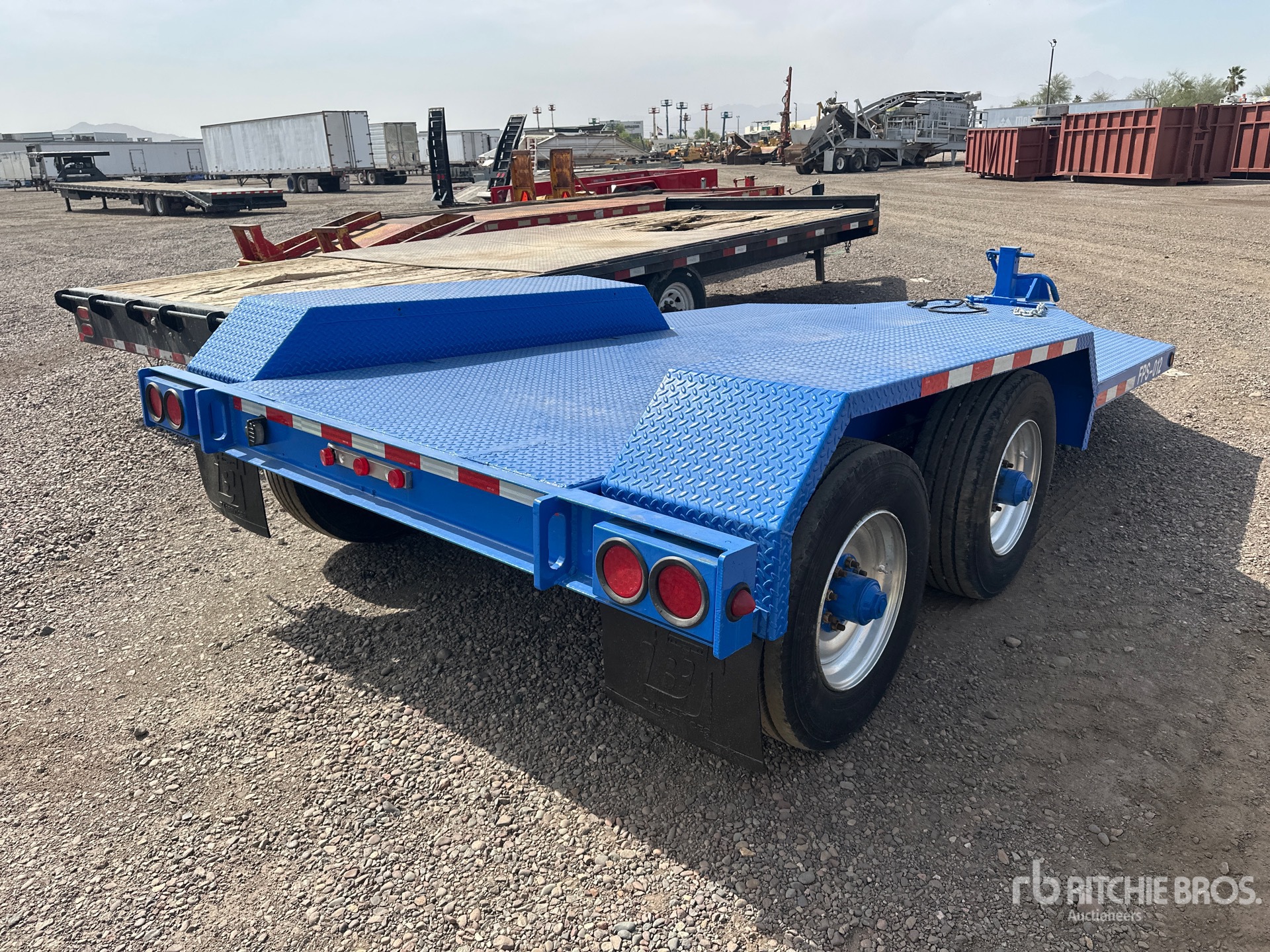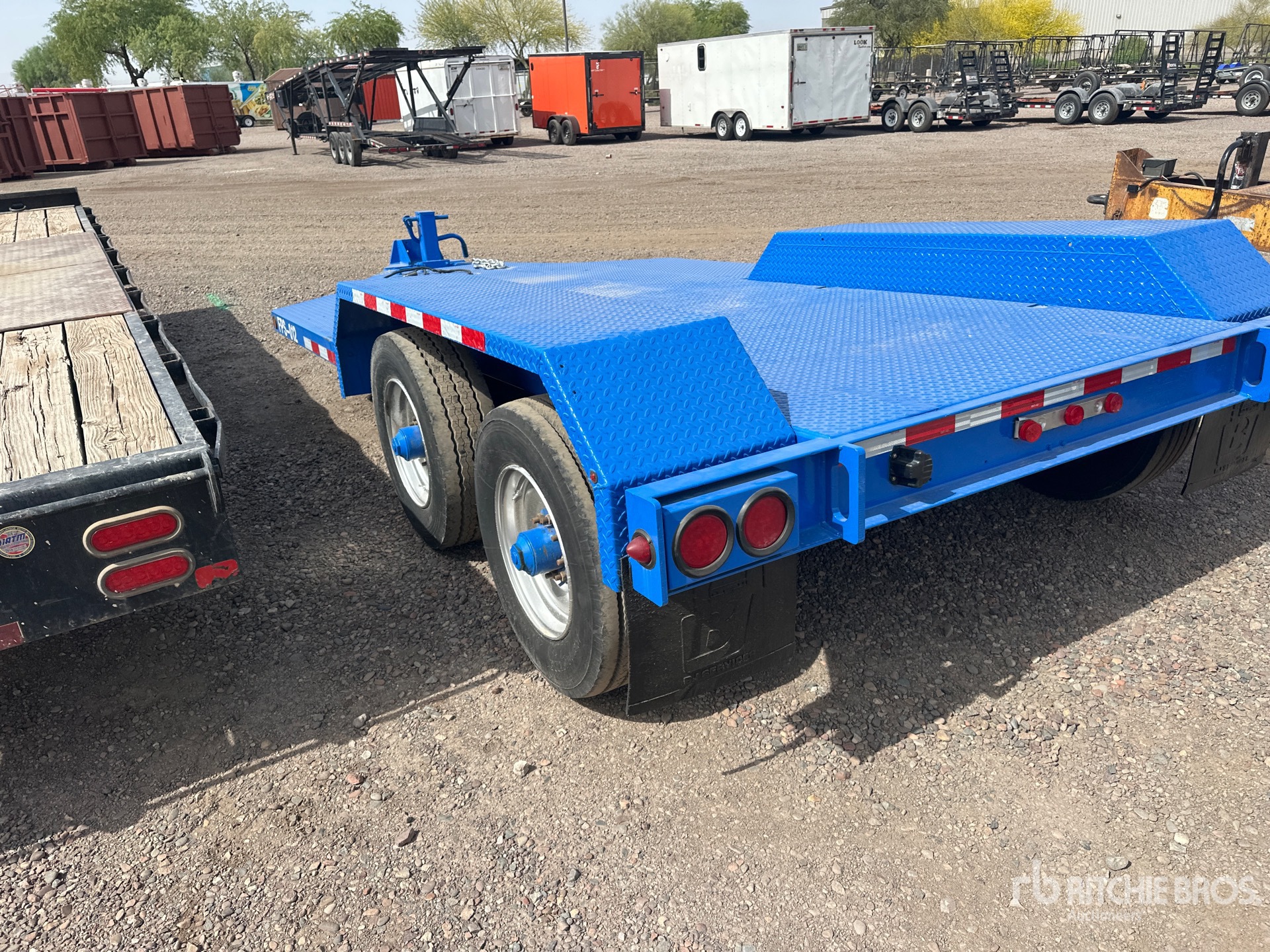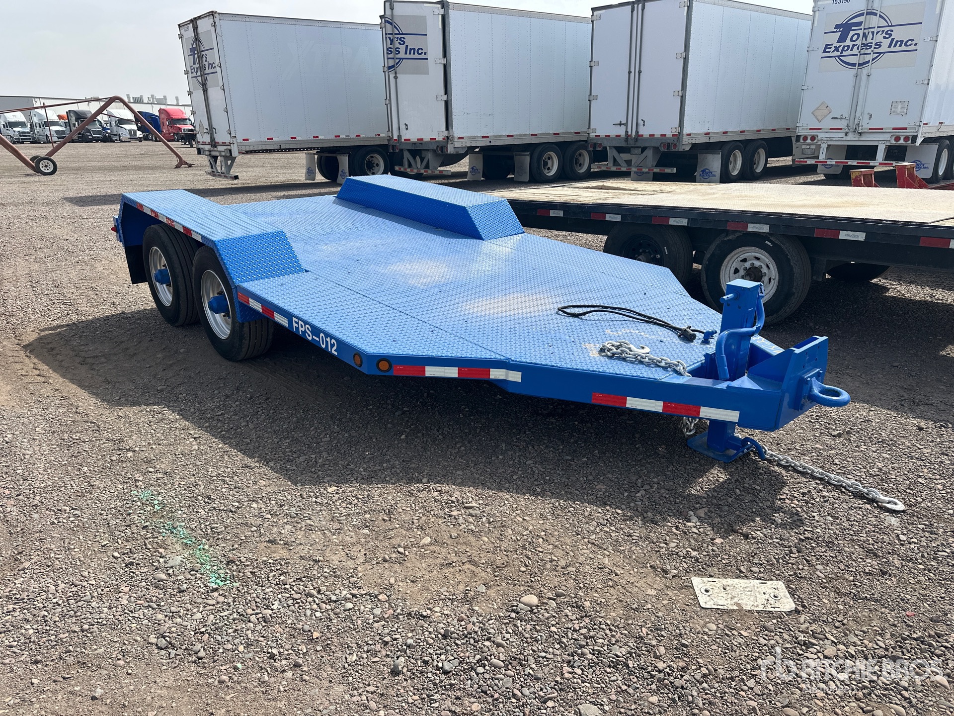 Located in Lane 8 Spot 39, Lunette Ring Hitch, Spring Suspension, Electric Brakes, 12 ft Main Deck, 102 in Usable Deck Width, Steel Decking, 245/70R17.5 Tires