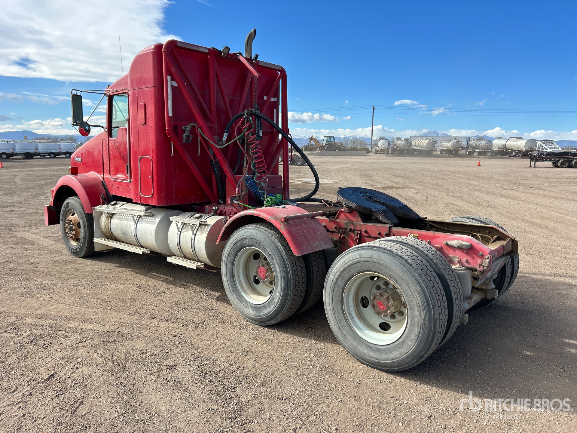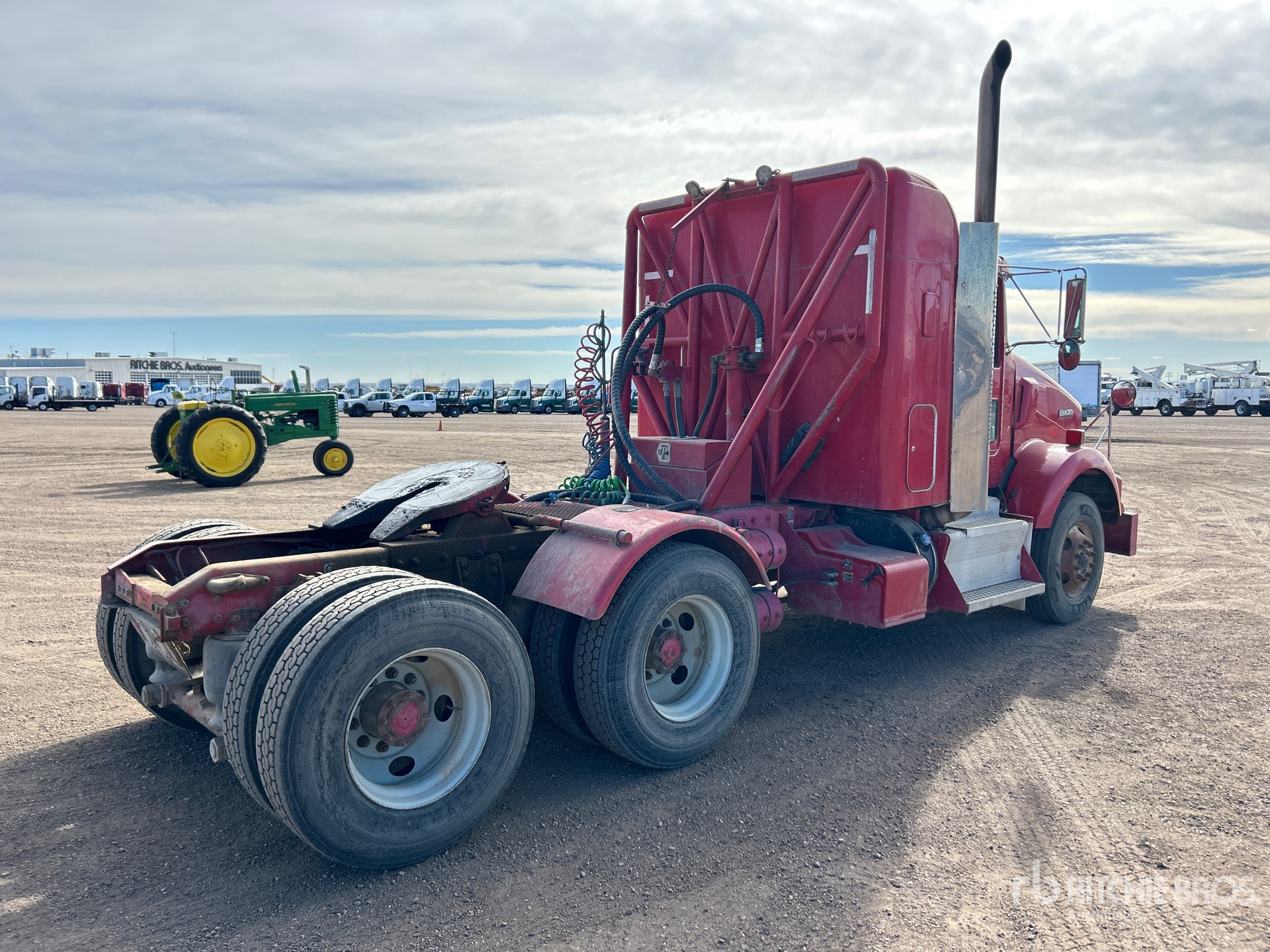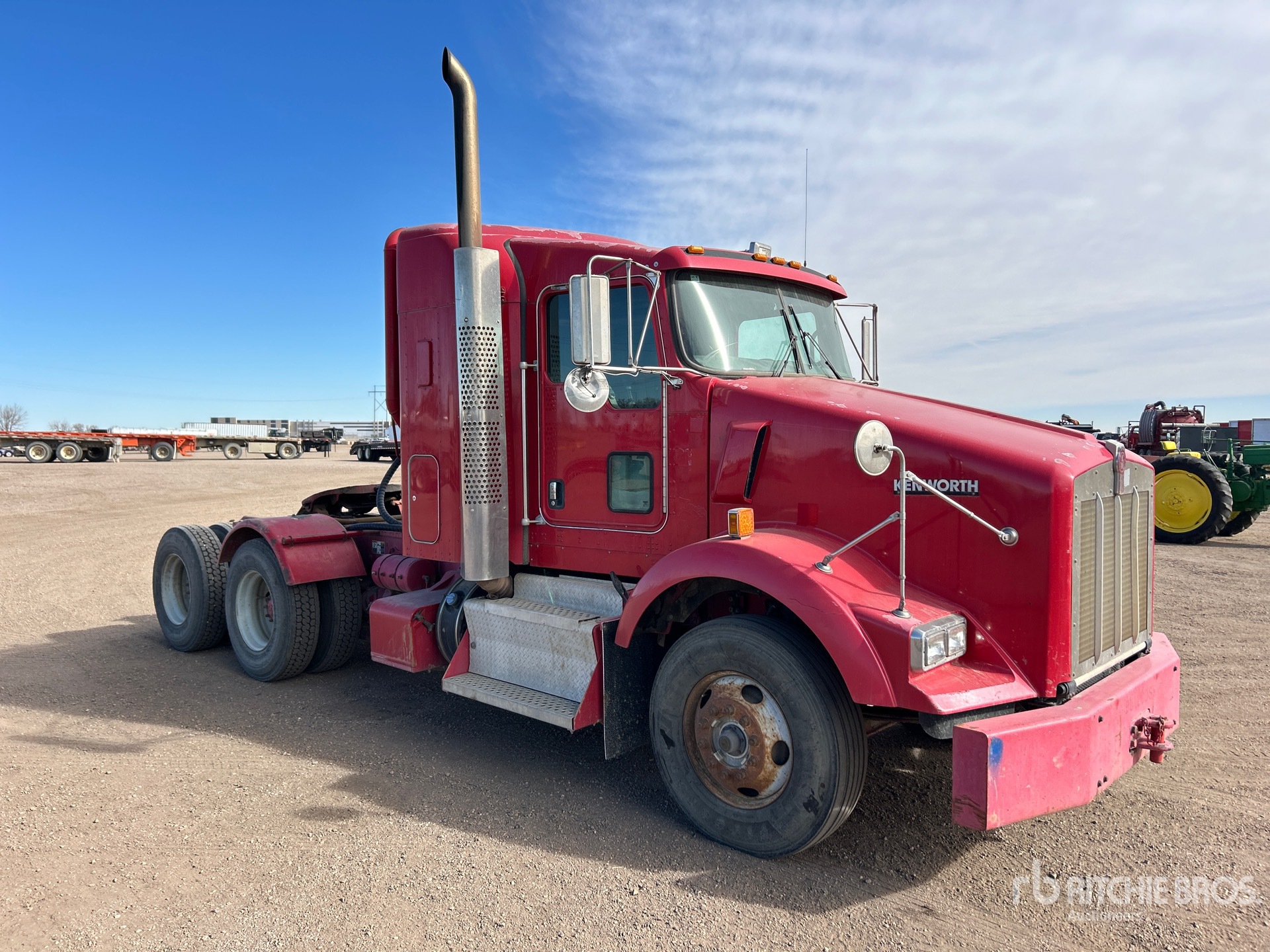 Cummins ISX 350 hp Engine, 2011 US EPA Label, 23240 Engine hrs, Eaton Fuller FRO-14210C 10-Speed Manual, 12000 lb Front Axle, 44000 lb Rears, 56000 lb GVWR, Engine Brake, Differential Lock, 38 in Flat Top Sleeper Cab, 202 in Wheelbase, Air Suspension, 11R22.5, Wet Kit, Headache Rack