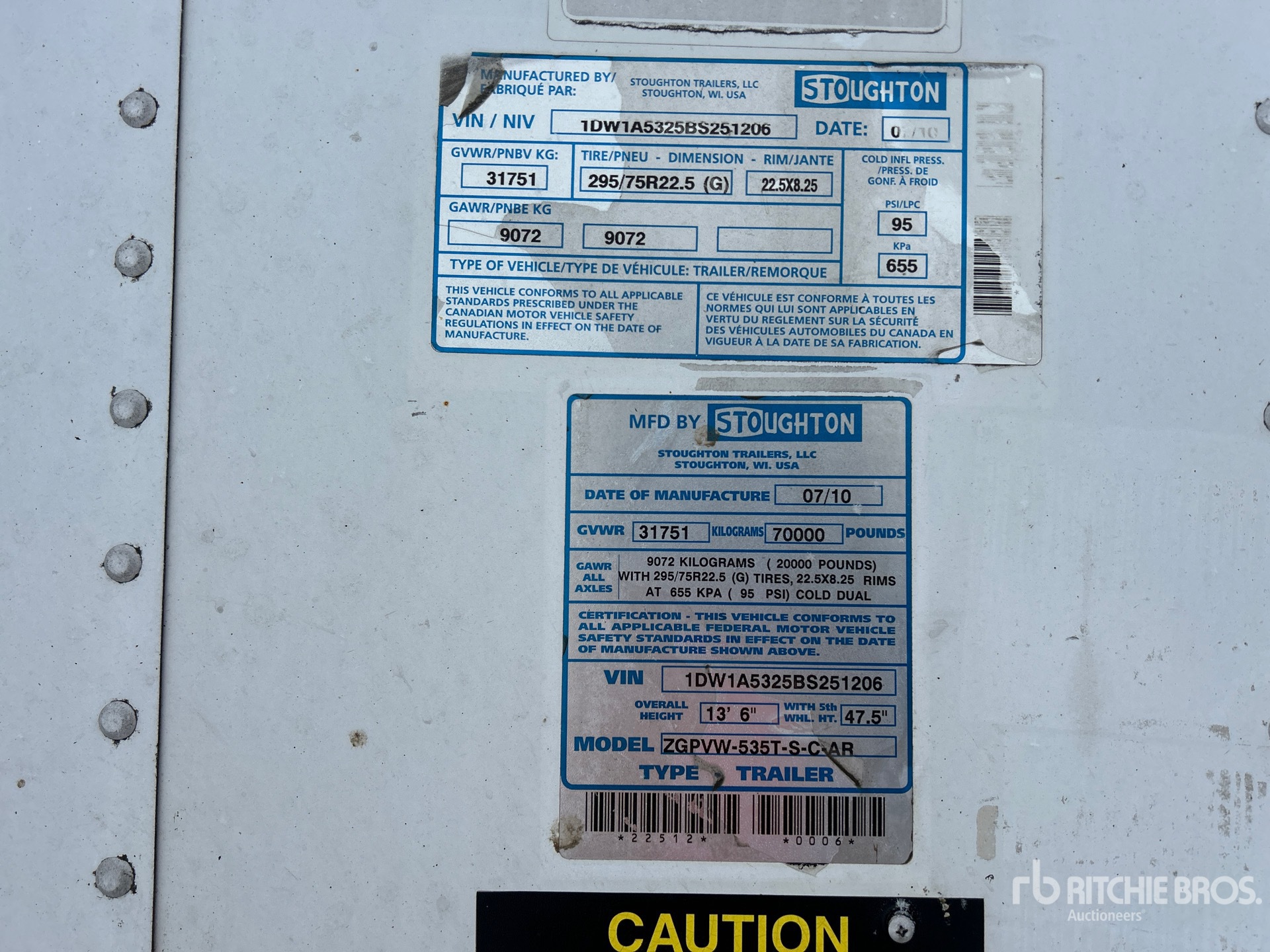 Air Ride Sliding Suspension, Hardwood Floor, Swing Door, 11R22.5 Tires, 70000 lb GVWR