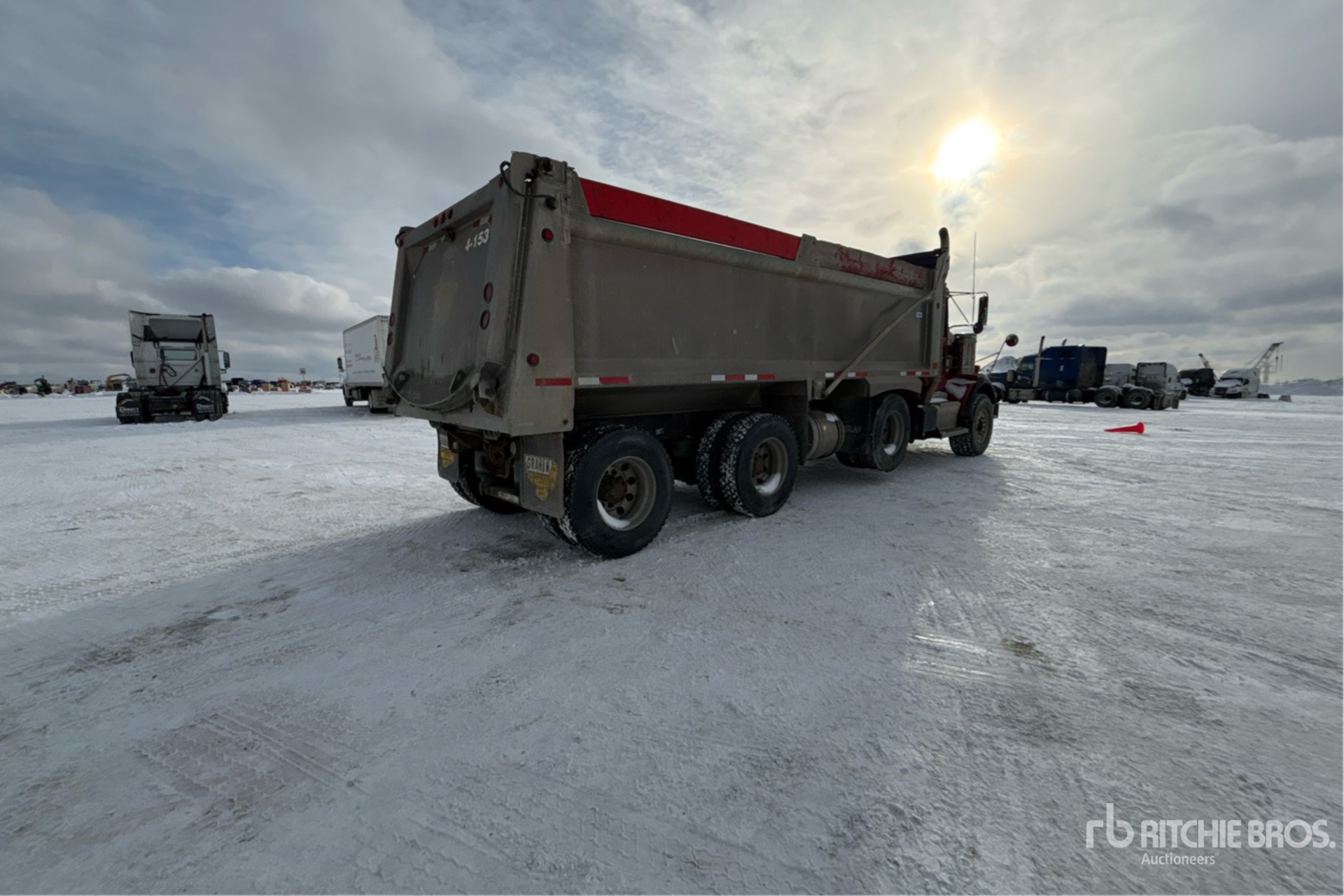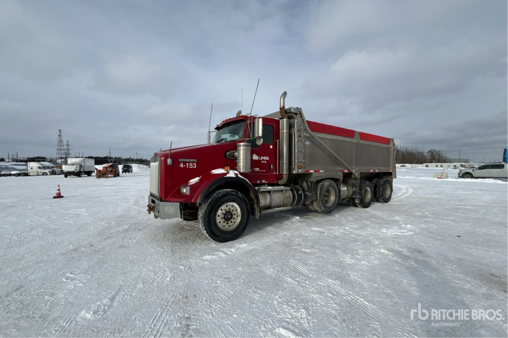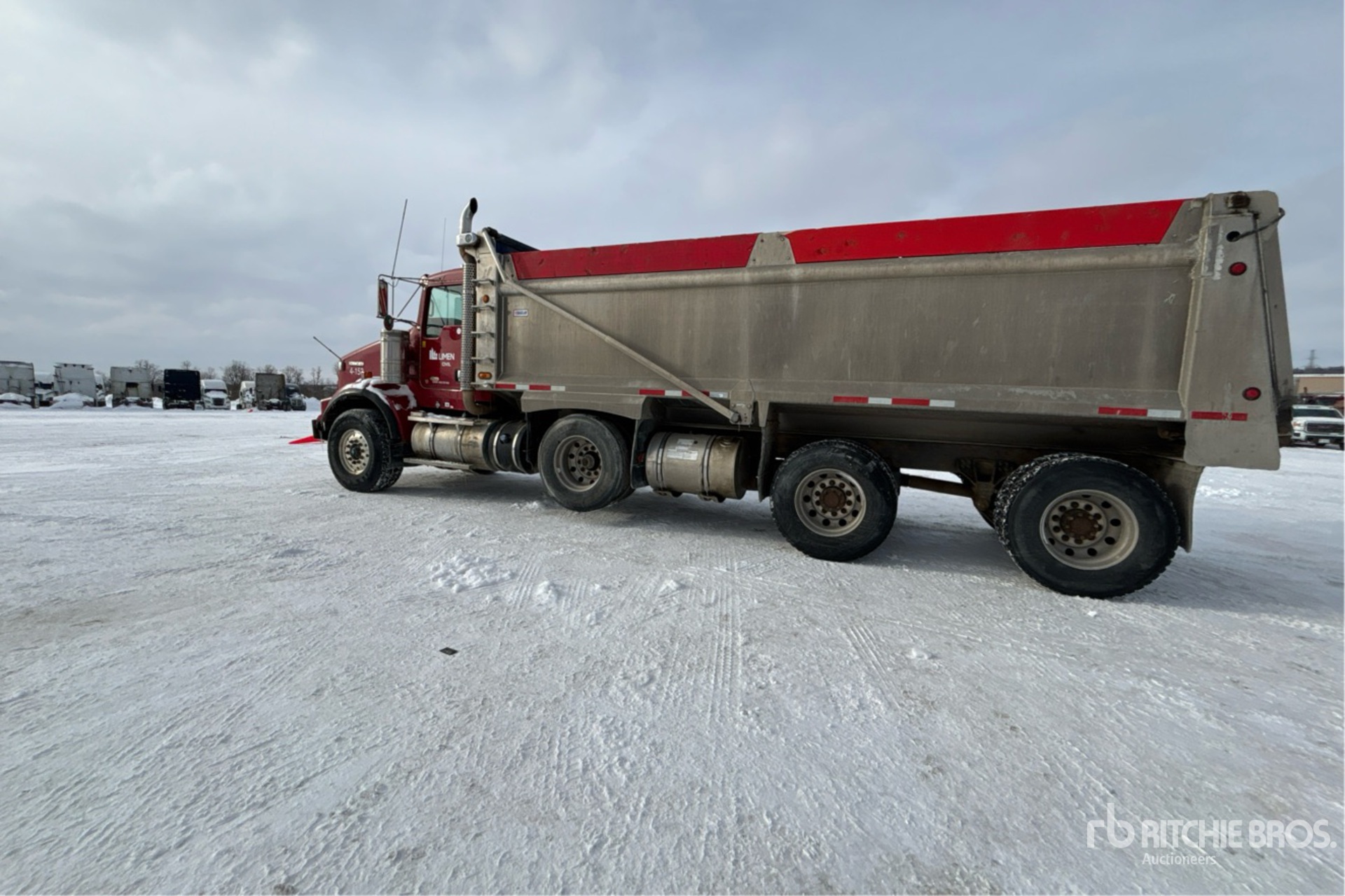Cummins ISX15 6 Cylinder 15 L Diesel 485 hp Engine, 2011 US EPA Label, Requires Diesel Exhaust Fluid, 20754 Engine hrs, Engine Brake, Eaton Fuller 18-Speed Manual Transmission, Double Differential Locks, 9072 kg Front Axle, 20866 kg Rears, 29938 kg GVWR, Aluminum Wheels, 425/65R22.5 Front Tires, 11R22.5 Rear Tires, Steerable Air Lift Pusher Axle, Air Ride Suspension, 272 in Wheelbase, PTO, 22 ft Long x 4 ft High Body, Electric Roll Tarp, Pintle Hitch