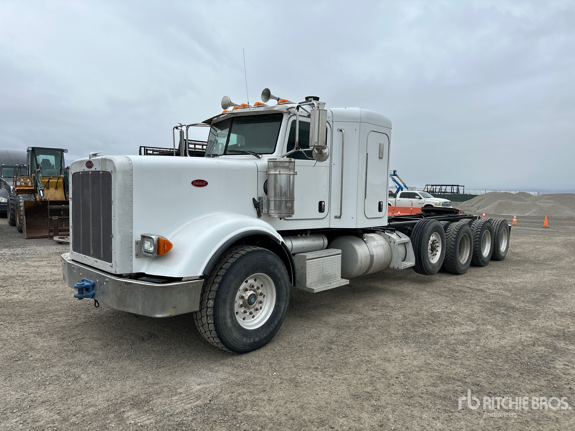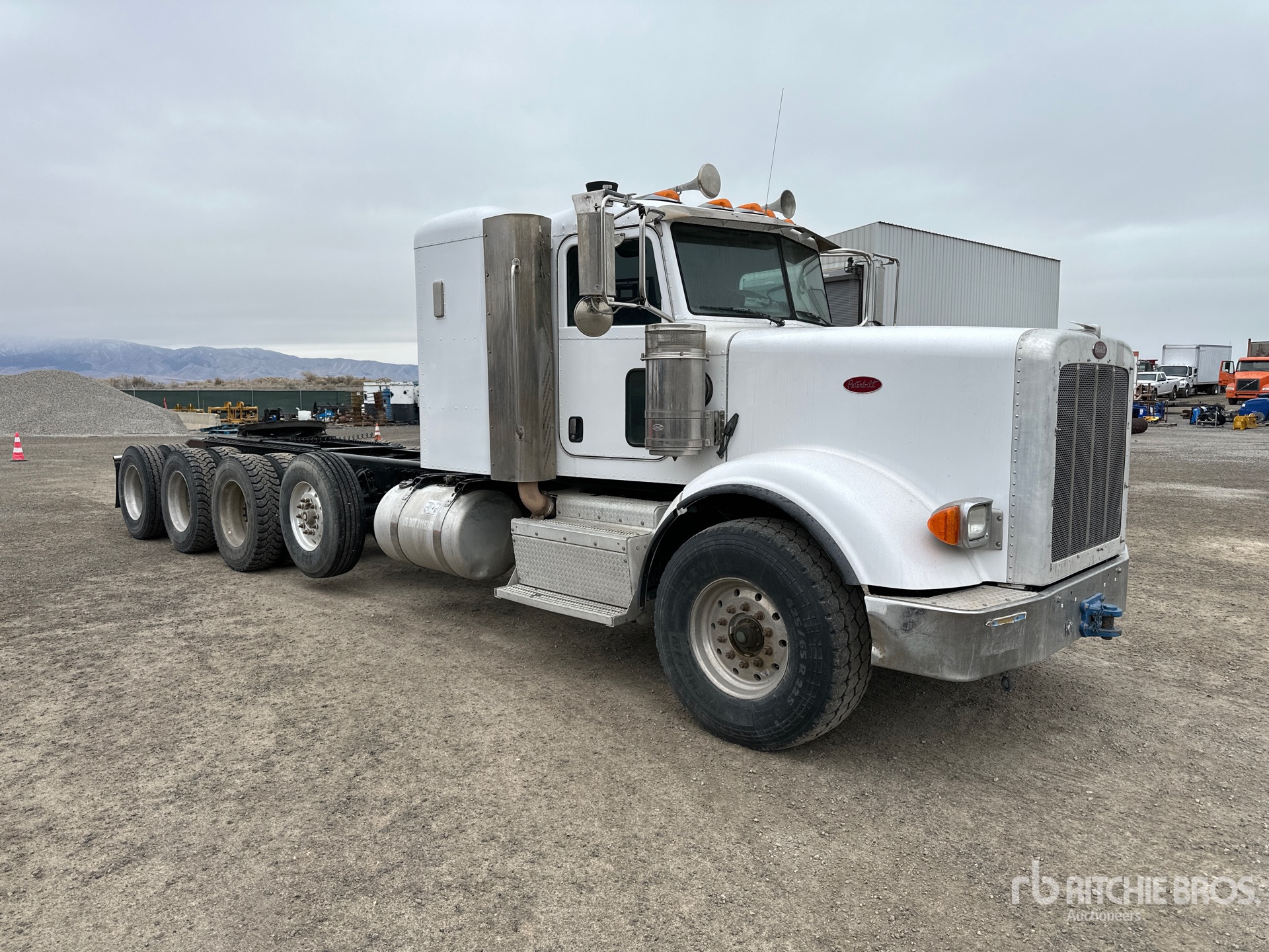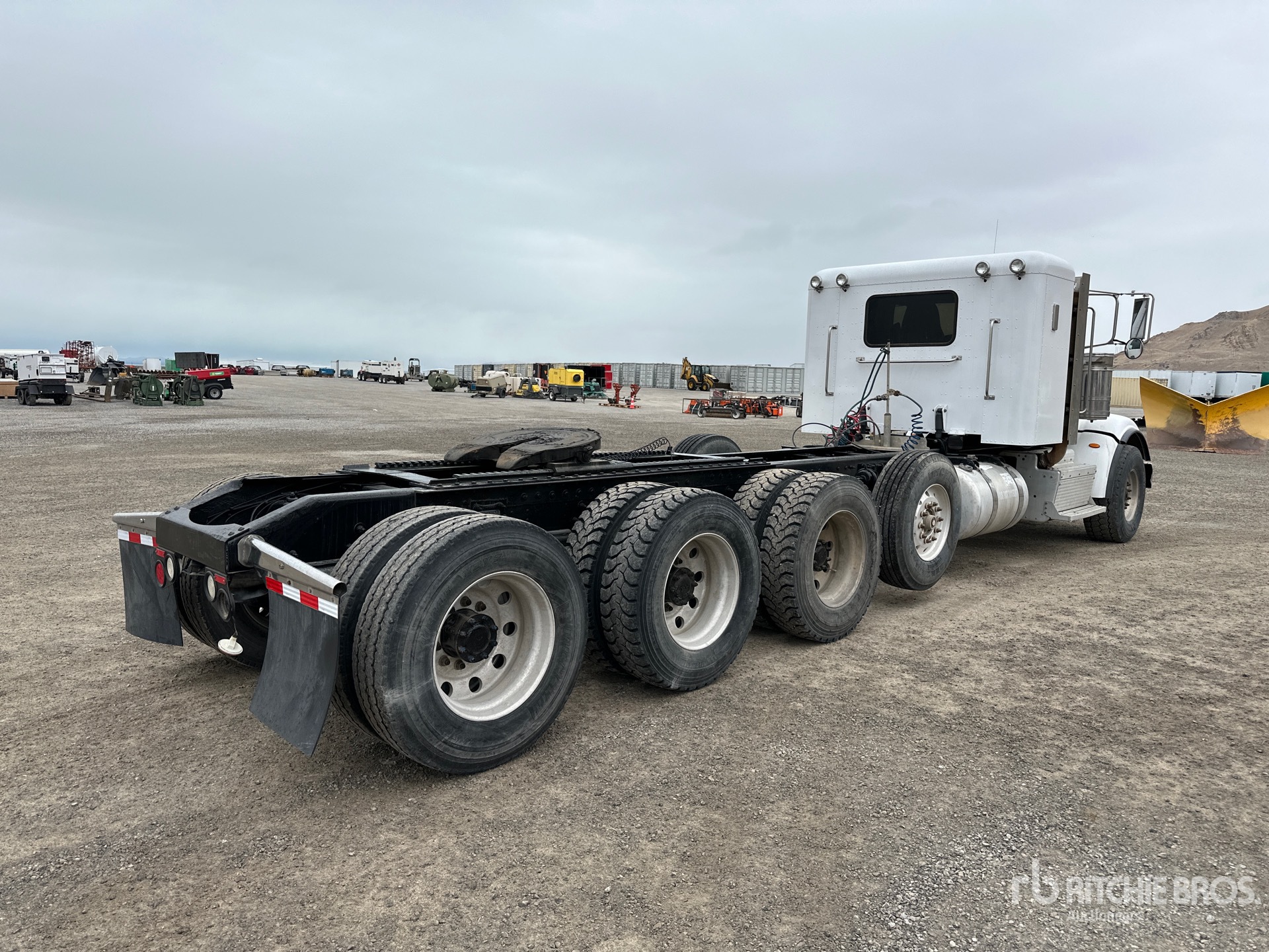 Cummins ISX15 600 hp Engine, 2011 US EPA Label, 7325 Engine hrs, Eaton Fuller 18-Speed Manual Transmission, 20000 lb Front Axle, 86000 lb GVWR, Engine Brake, 36 in Flat Top Sleeper Cab, 292 in Wheelbase, Air Suspension, Air Lift Pusher Axle, Aluminum Wheels, 425/65R22.5 Front Tires, 11R24.5 Rear Tires, Dual Steering Boxes, Double Frame, Air Sliding 5th Wheel, Dual Fuel Tanks