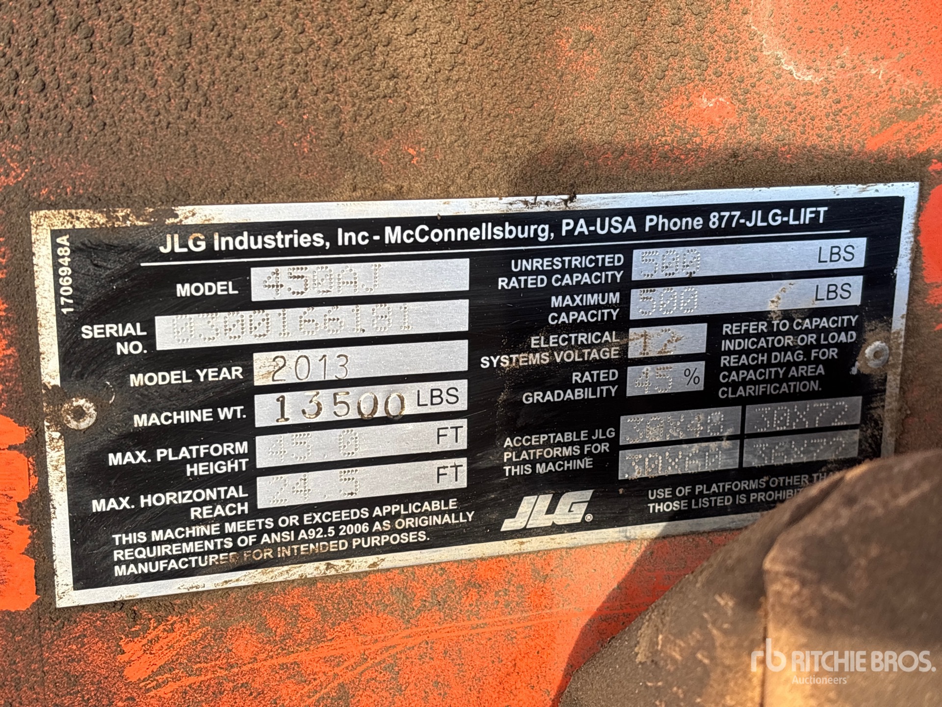 45 ft Max Platform Height, 500 lb Max Weight Capacity, Power to Platform, 2012 US EPA Label, CARB Compliant, Deutz 49 hp Diesel Engine, 12-16.5 Tires, Complete-Retirement-Dispersal-for-Mur-Cal-Services-Ltd