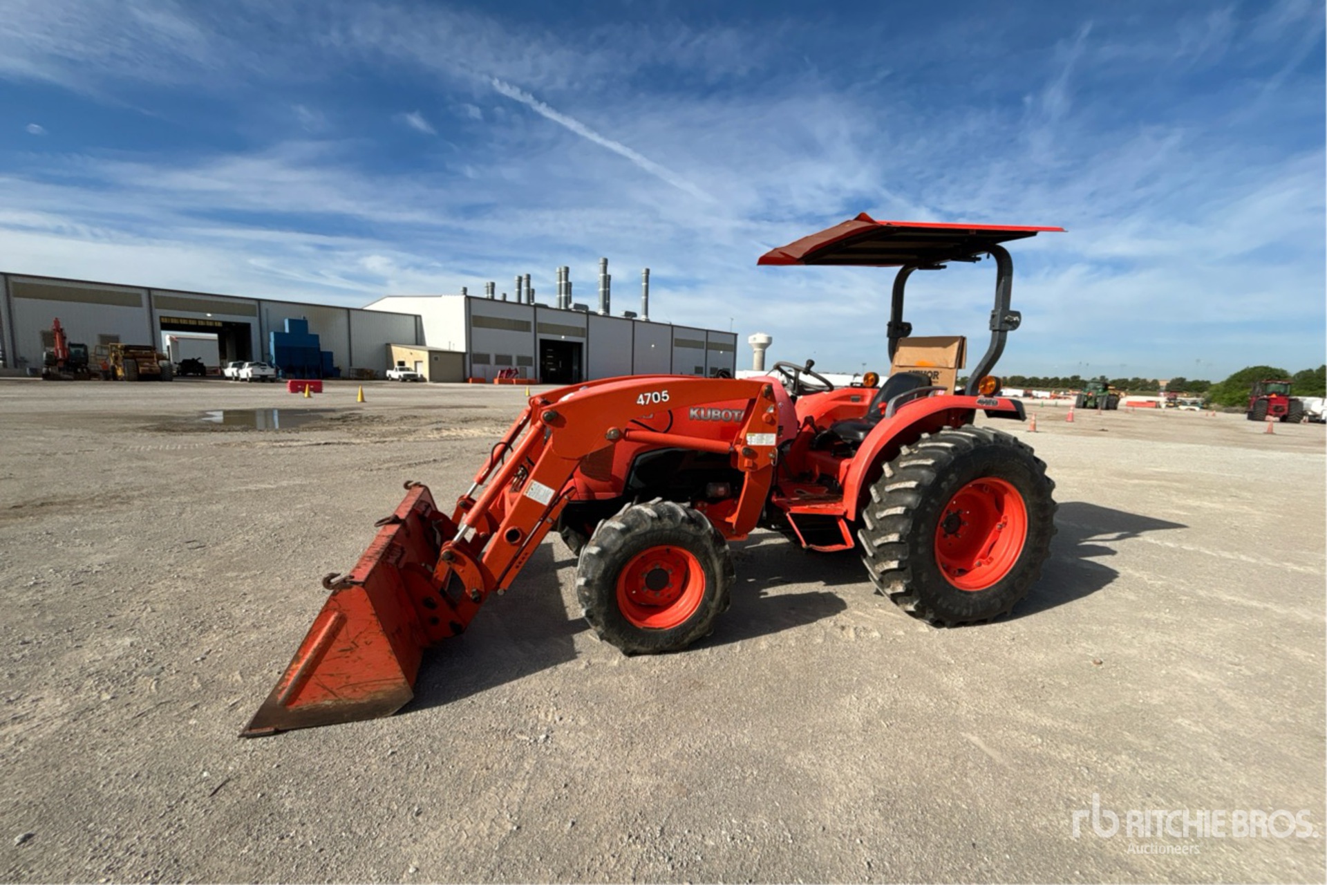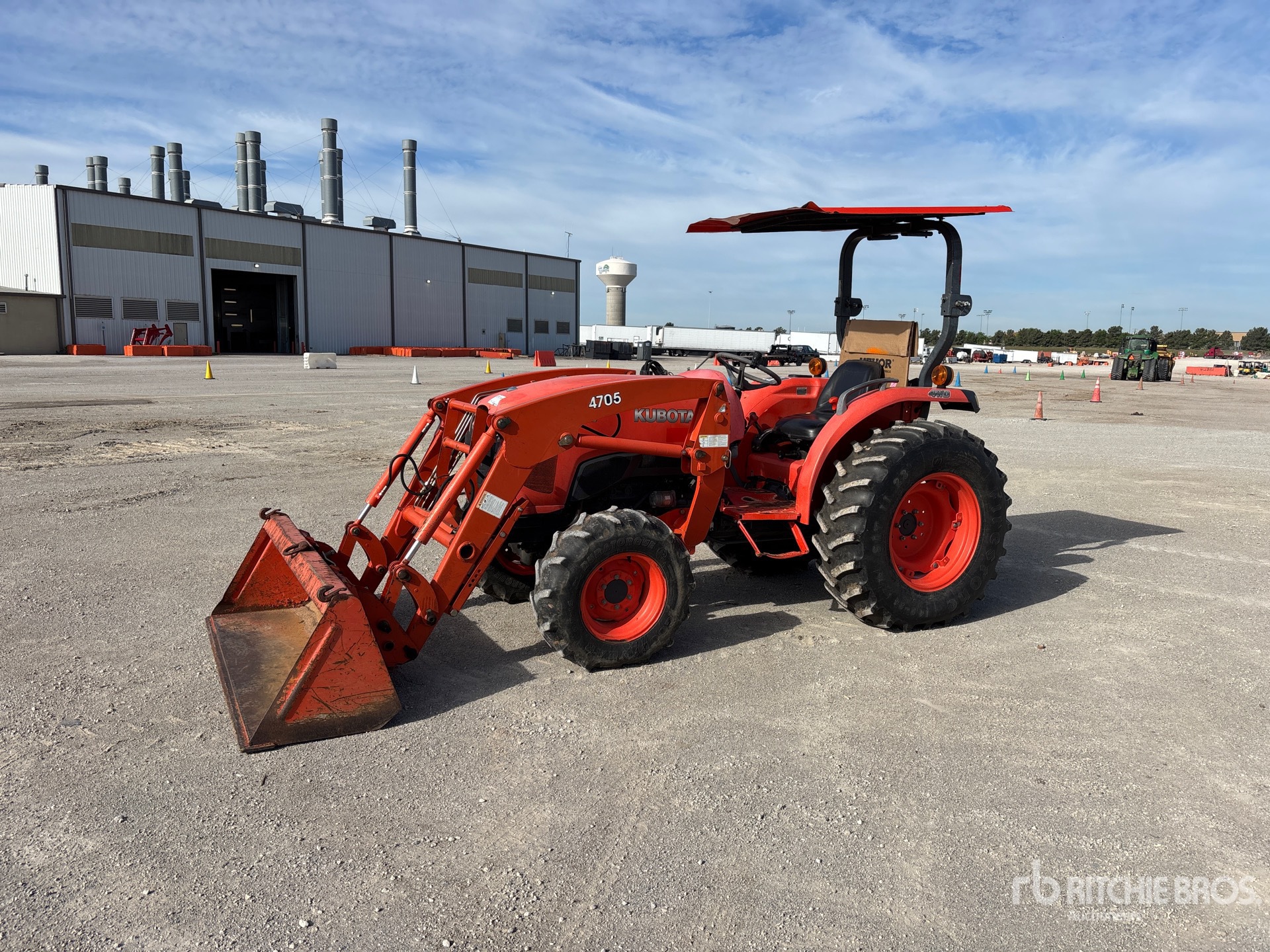 Canopy, Ansung 4705 Loader w/Joystick, Quick Coupler, 72 in Bucket, 1 Rear Remotes, 540 PTO, Drawbar, 9.5-16 Front Tires, 14.9-24 Rear Tires