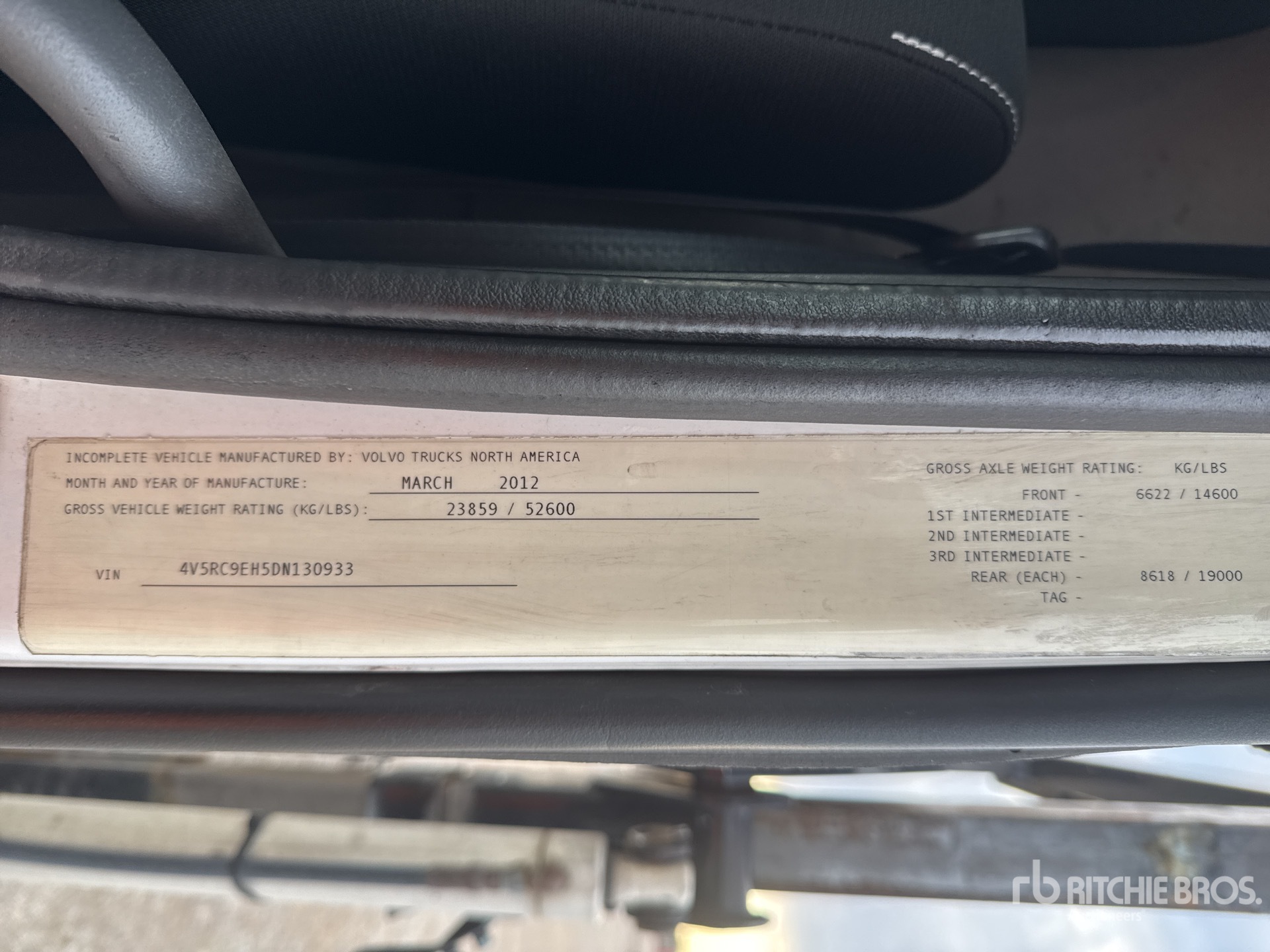 Volvo D13 425HP 6 Cylinder 12.8 L Diesel 425 hp Engine, 2012 US EPA Label, Requires Diesel Exhaust Fluid, Eaton Fuller FRO-12210C 10-Speed Manual Transmission, 14600 lb Front Axle, 38000 lb Rears, Meritor MT-40-14X Drive Axles, 52600 lb GVWR, 265/70R19.5, Air Ride Suspension, 240 in Wheelbase, 6 Vehicle Capacity, Hydraulic Lift, 295/60R22.5 Tires, 52600 lb GVWR