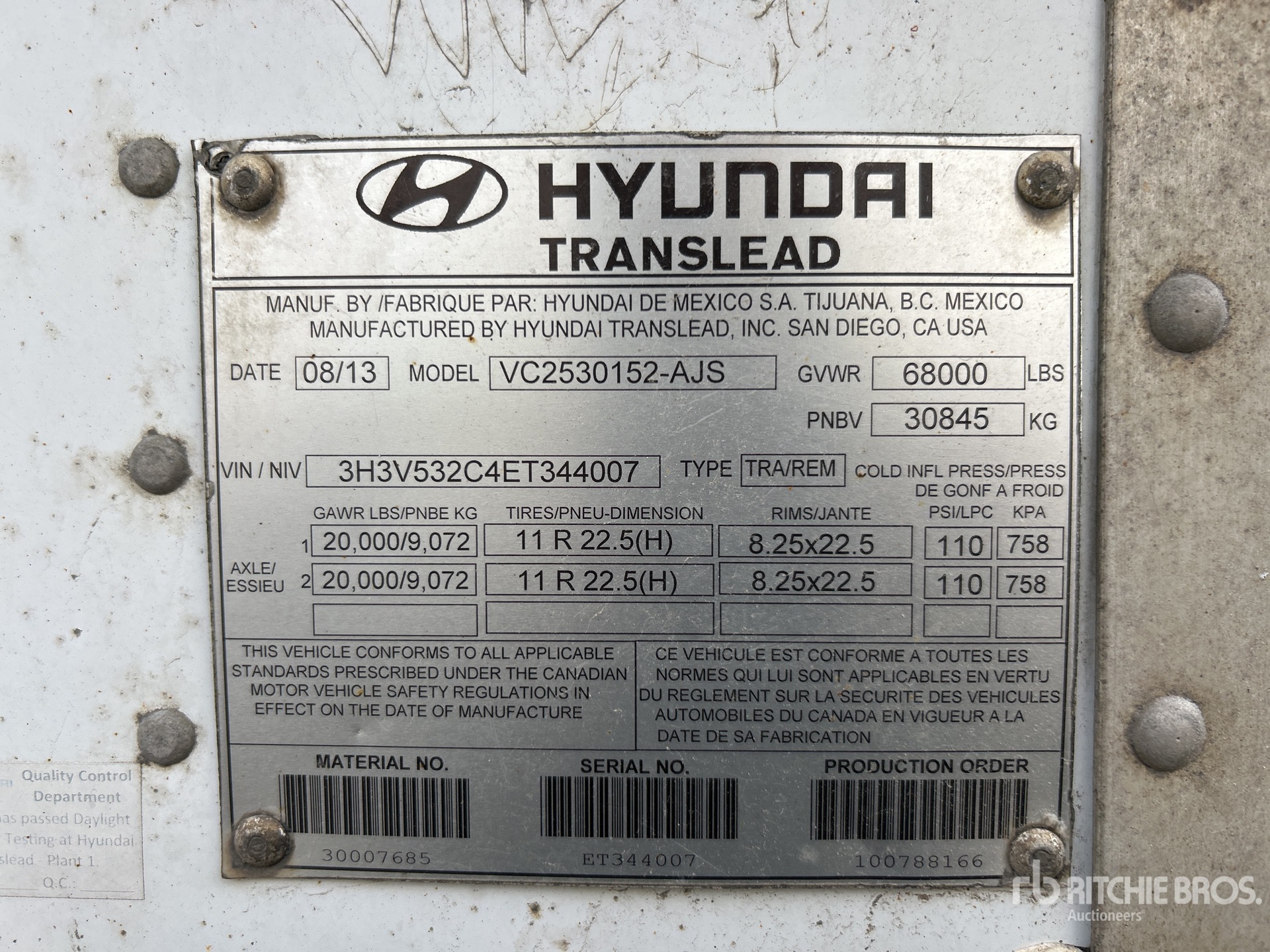 المعلومات التفصيلية حول المعدات محدودة النطاق، ولم تفحص شركة ريتشي وإخوانه للمزادات العلنية أي جوانب أو مكونات من المعدات بخلاف تلك المنصوص عليها صراحة في هذه الوثيقة. ما لم يُنص صراحة على ذلك، نحن لا نقدم أي تعهدات أو ضمانات، صريحة أو ضمنية، في ما يتعلق بالمعدات أو مكوناتها، بما في ذلك على سبيل المثال لا الحصر أي تعهدات أو ضمانات تتعلق بالتشغيل أو المطابقة أو الامتثال لأي معيار أمان أو متطلبات أي سلطة أو هيئة تنظيمية معنية، أو الملاءمة لأي غرض معين، أو قابلية التسويق. ننصحك بشدة بإجراء فحص تفصيلي خاص بك للمعدات قبل تقديم المزايدات.