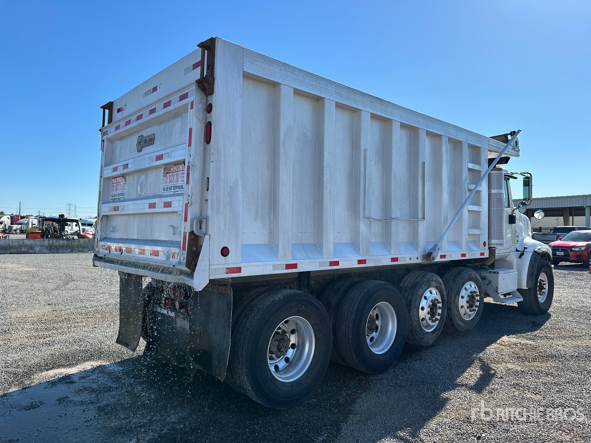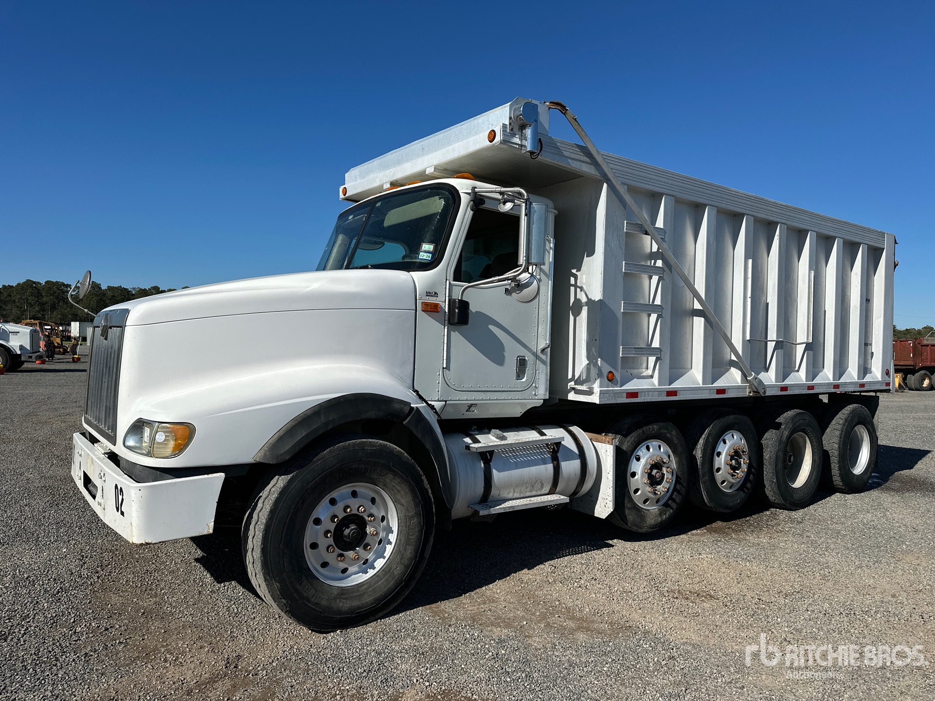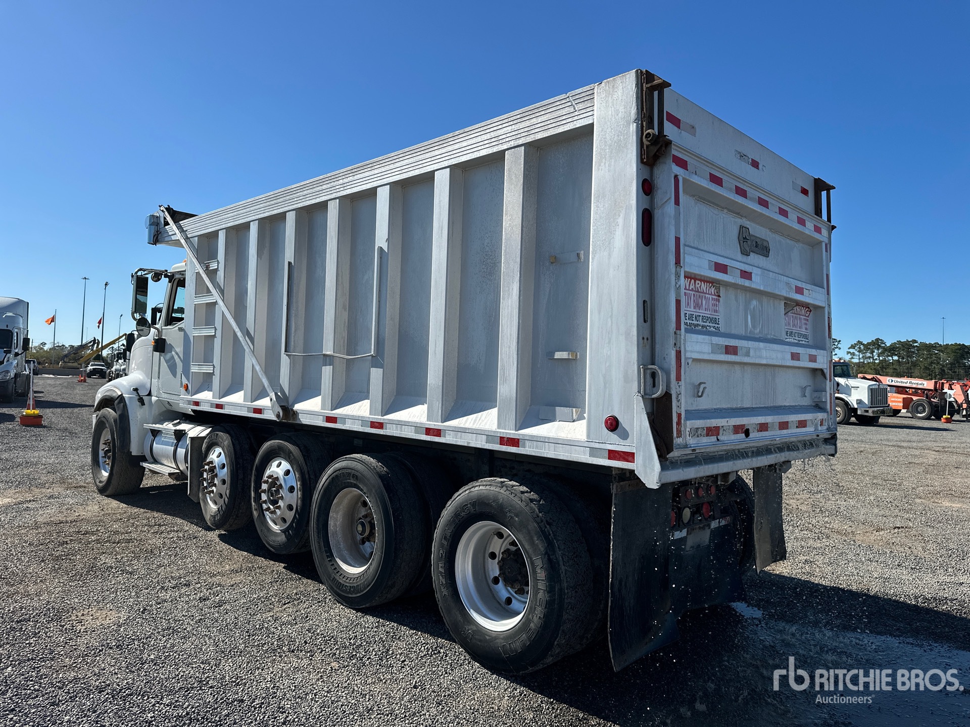 International A430 Maxforce 6 Cylinder 12.4 L Diesel Engine, 2012 US EPA Label, 17857 Engine hrs, Engine Brake, Allison Automatic Transmission, 20000 lb Front Axle, 46000 lb Rears, 66000 lb GVWR, 425/65R22.5 Front Tires, 315/80R22.5 Rear Tires, 2 Steerable Air Lift Pusher Axle, Dual Steering Boxes, Hendrickson Haulmaax Air Ride Suspension, 232 in Wheelbase, PTO, 18 ft Long x 6 ft High Aluminium Body, Electric Roll Tarp
