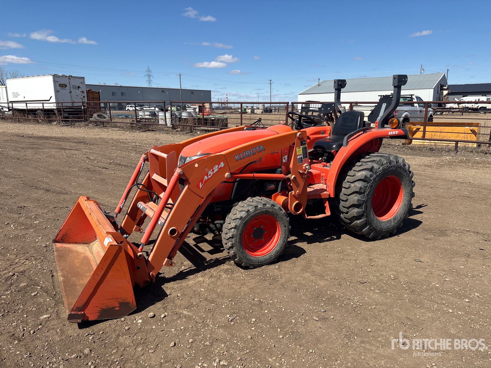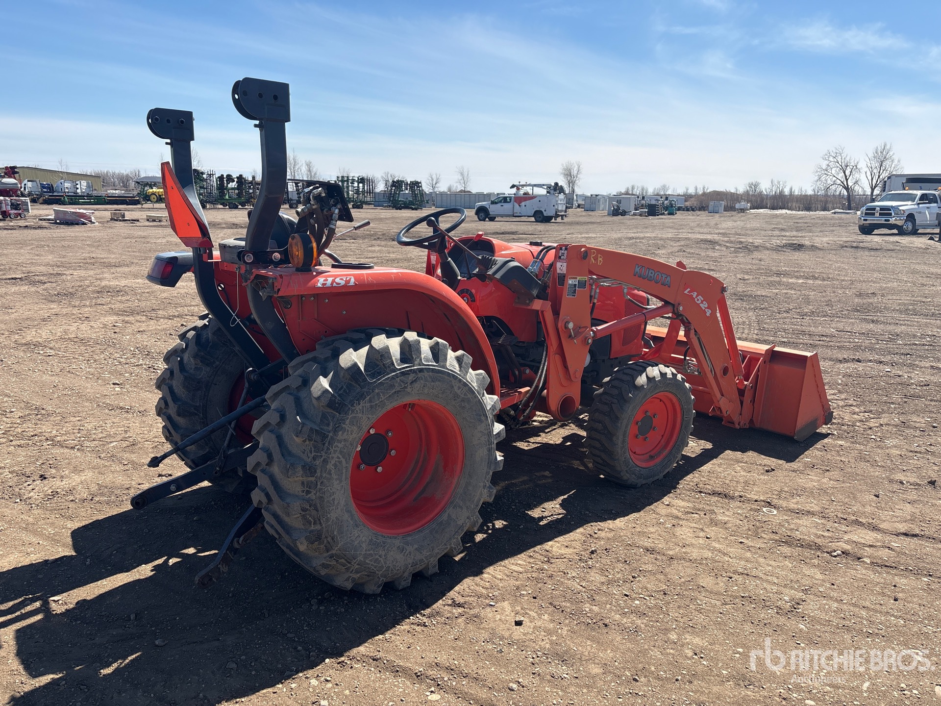 3 Forward 3 Reverse, Hydrostatic Drive, 37 hp Engine, 2013 US EPA Label, Kubota LA524 Loader w/Joystick, Skid Steer Coupler, Kubota L2256 77 in Bucket, 540 PTO, 3-Point Hitch, Drawbar, 27x8.50-15 Front Tires, 15x19.5 Rear Tires