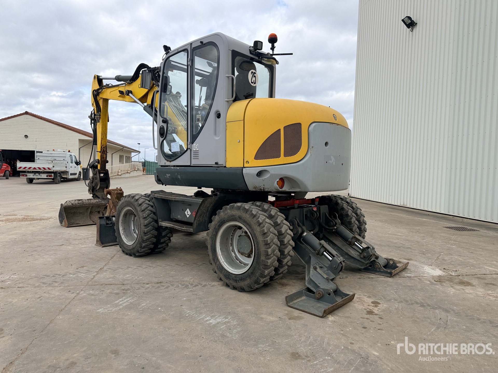 Variable Angle Swing Boom, 1900 mm Stick, Auxiliary Hydraulic Plumbing, Stick Check Valve, Boom Check Valves, Backfill Blade, Stabilizers, 8.25x20 Tires, Manual Quick Coupler, 1950 mm Hydraulic Tilting Bucket, Additional 2 Digging Bucket
