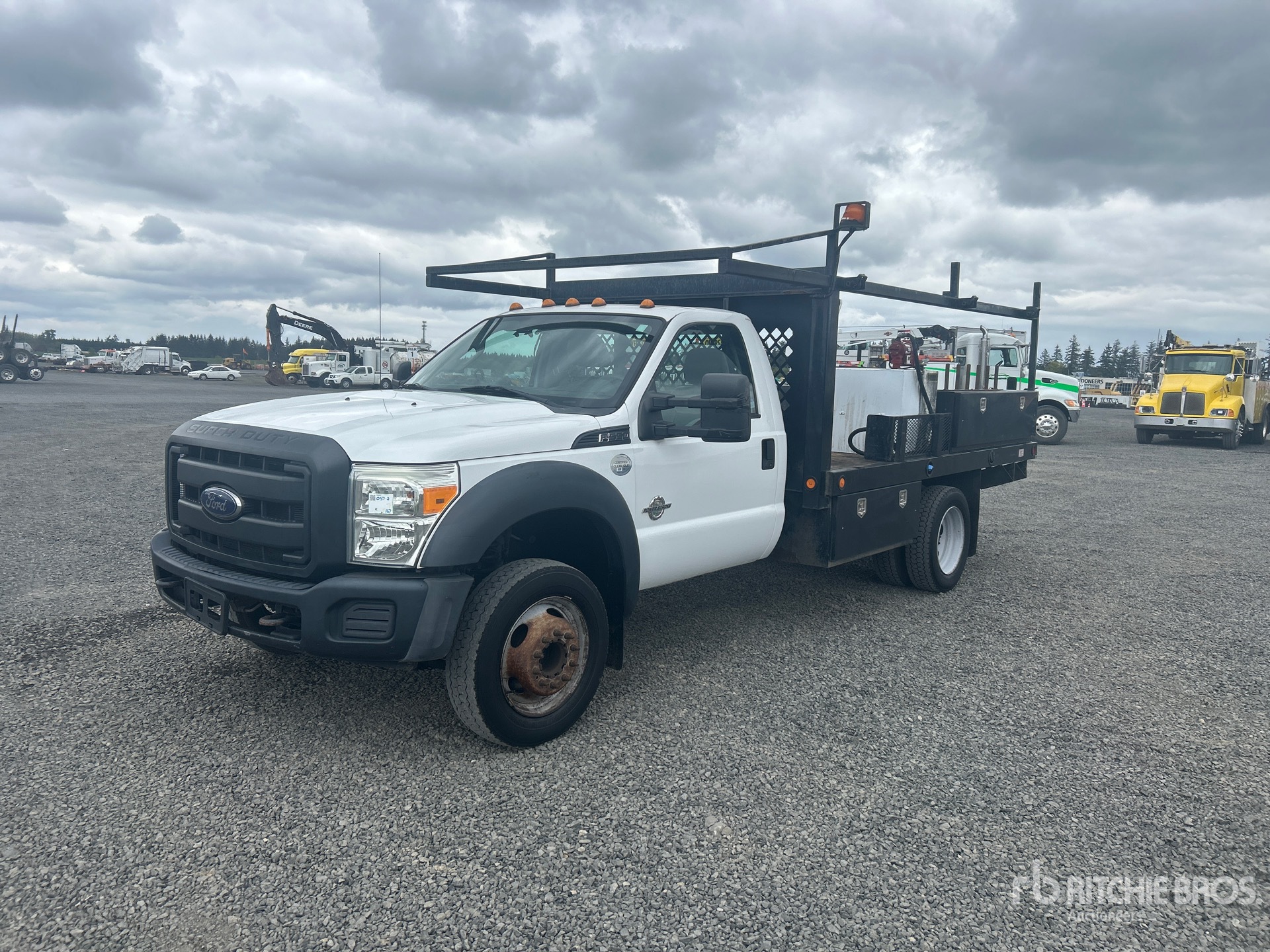 Located in Lane 17 Spot 21, Ford 4V F-Series V8 6.7 L Diesel 300 hp Engine, 2015 US EPA Label, Requires Diesel Exhaust Fluid, Automatic Transmission, 6500 lb Front Axle, 14706 lb Rears, 19500 lb GVWR, 255/70R22.5, Spring Suspension, 165 in Wheelbase, Western Mule P10 Series 1000 lb 2 Section Electric Crane, 12 ft 4 in x 96 in Bed