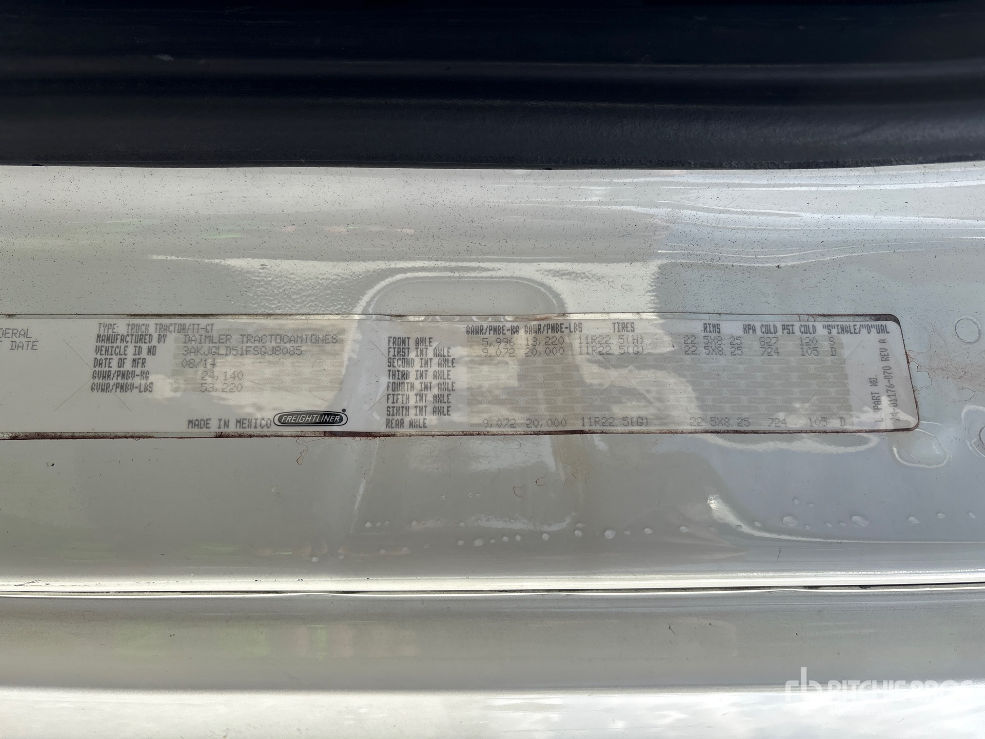 Detroit DD15 455 hp Engine, 2014 US EPA Label, Eaton Fuller FRO-16210C 10-Speed Manual Transmission, Auxiliary Transmission, 13300 lb Front Axle, 40000 lb Rears, 53300 lb GVWR, Engine Brake, 70 in High Rise Sleeper Cab, Bunk Beds, Bunk Heater, 228 in Wheelbase, Air Suspension, Aluminum Outer Wheels, 11R22.5, Air Sliding 5th Wheel, Dual Fuel Tanks