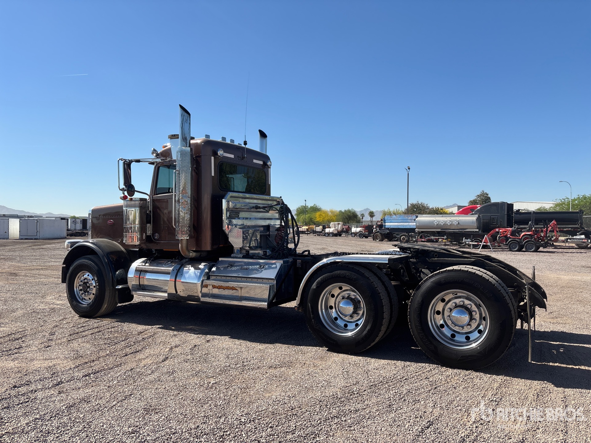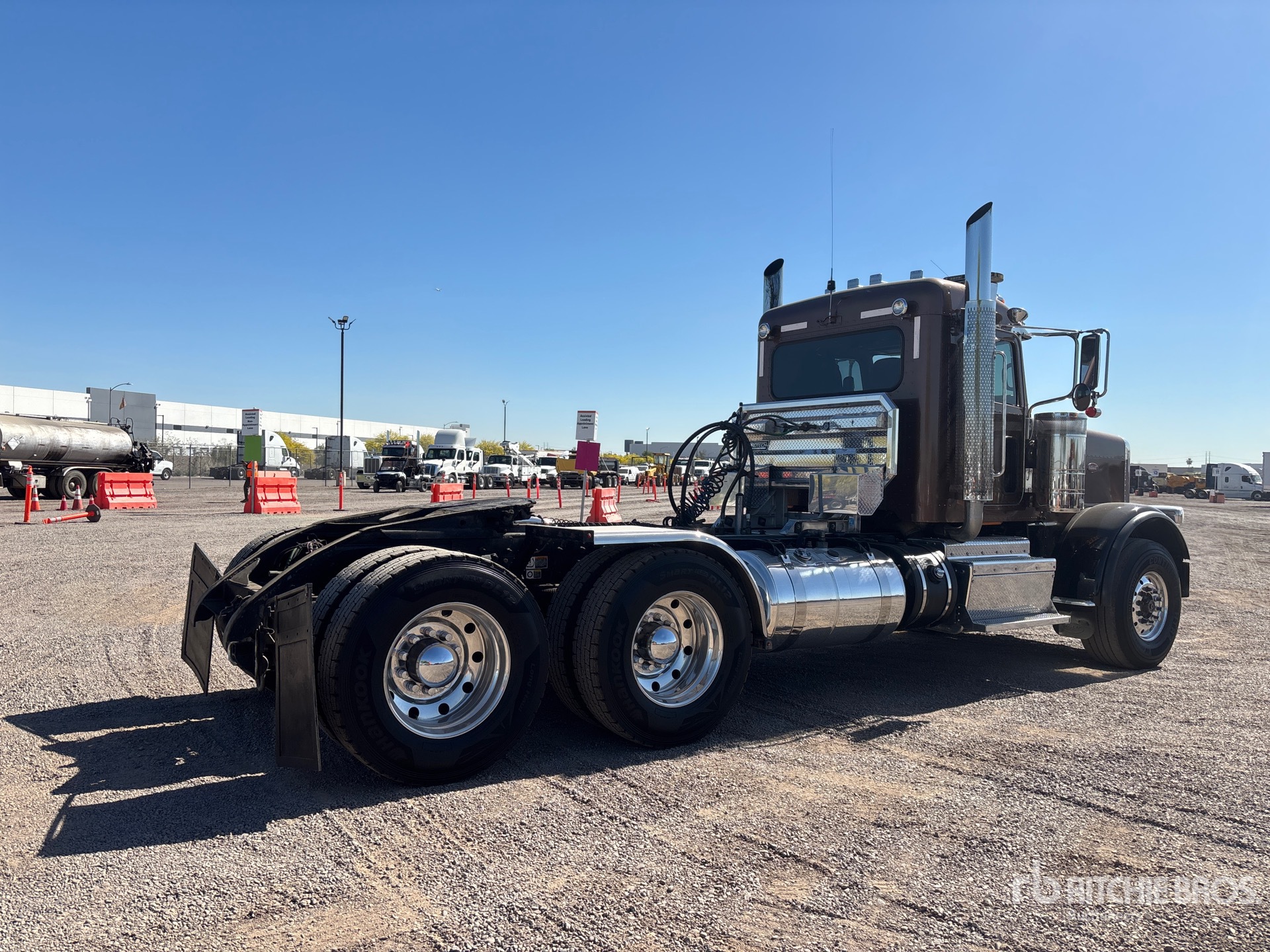 Located in Lane 14 Spot 21, Cummins X15 600 hp Engine, 2014 US EPA Label, 22557 Engine hrs, Eaton Fuller RTLO-16918B 18-Speed Manual Transmission, 20000 lb Front Axle, 46000 lb Rears, 68000 lb GVWR, Double Differential Locks, 189 in Wheelbase, Air Suspension, Aluminum Wheels, 425/65R22.5 Front Tires, 11R24.5 Rear Tires, Air Sliding 5th Wheel, Headache Rack, Lowboy Ramps, ; Equipment-from-Precise-Services