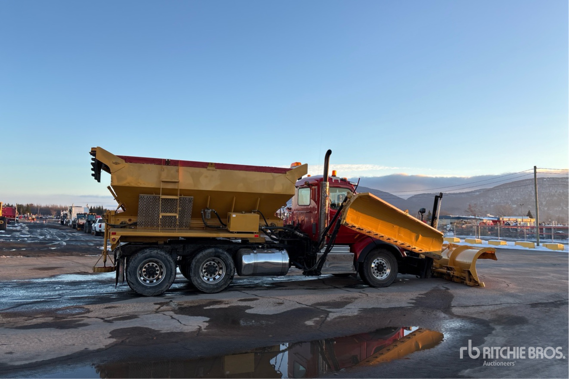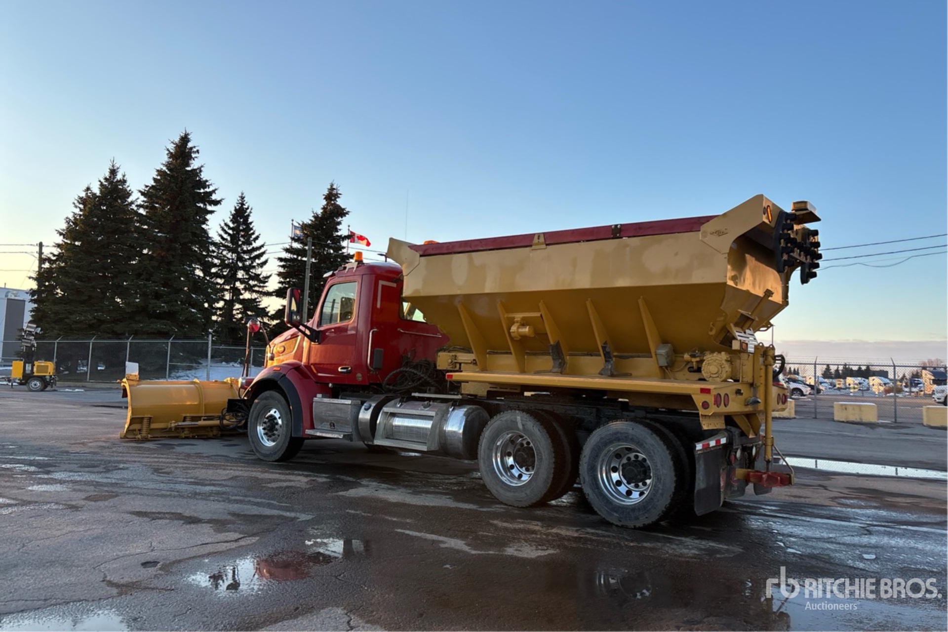 Located in Lane 7 Spot 26, Paccar MX-13 6 Cylinder 12.9 L Diesel 500 hp Engine, 2013 US EPA Label, CARB Compliant, Diagnostic Tool Reading 139392 mi, 7621 Engine hrs, Engine Brake, Eaton Fuller Automatic Transmission, Differential Lock, 18179 lb Front Axle, 46000 lb Rears, 29963 kg GVWR, Air Ride Cab, Aluminum Wheels, 315/80R22.5 Front Tires, 11R22.5 Rear Tires, Air Ride Suspension, 200 in Wheelbase, Côté 12 ft Hydraulic Reversing Plow, Côté 12 ft Snow Wing, Côté Steel Spreader, 1 Spinners, In-Cab Controls, 14 ft Long x 5 ft 2 in High Steel Body