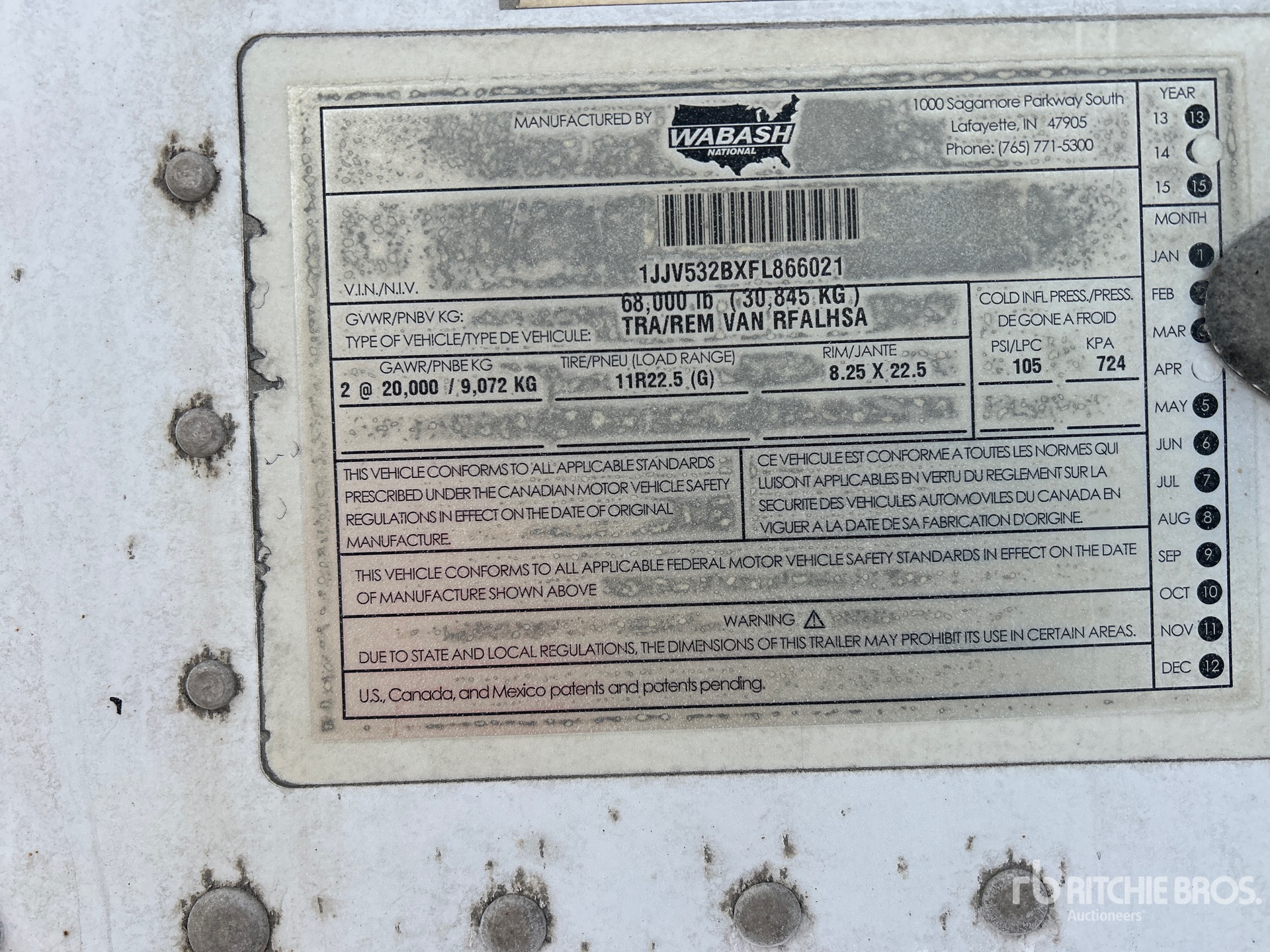 2015 Wabash RFALHSA 53 ft x 102 in T/A مقطورة مبردة