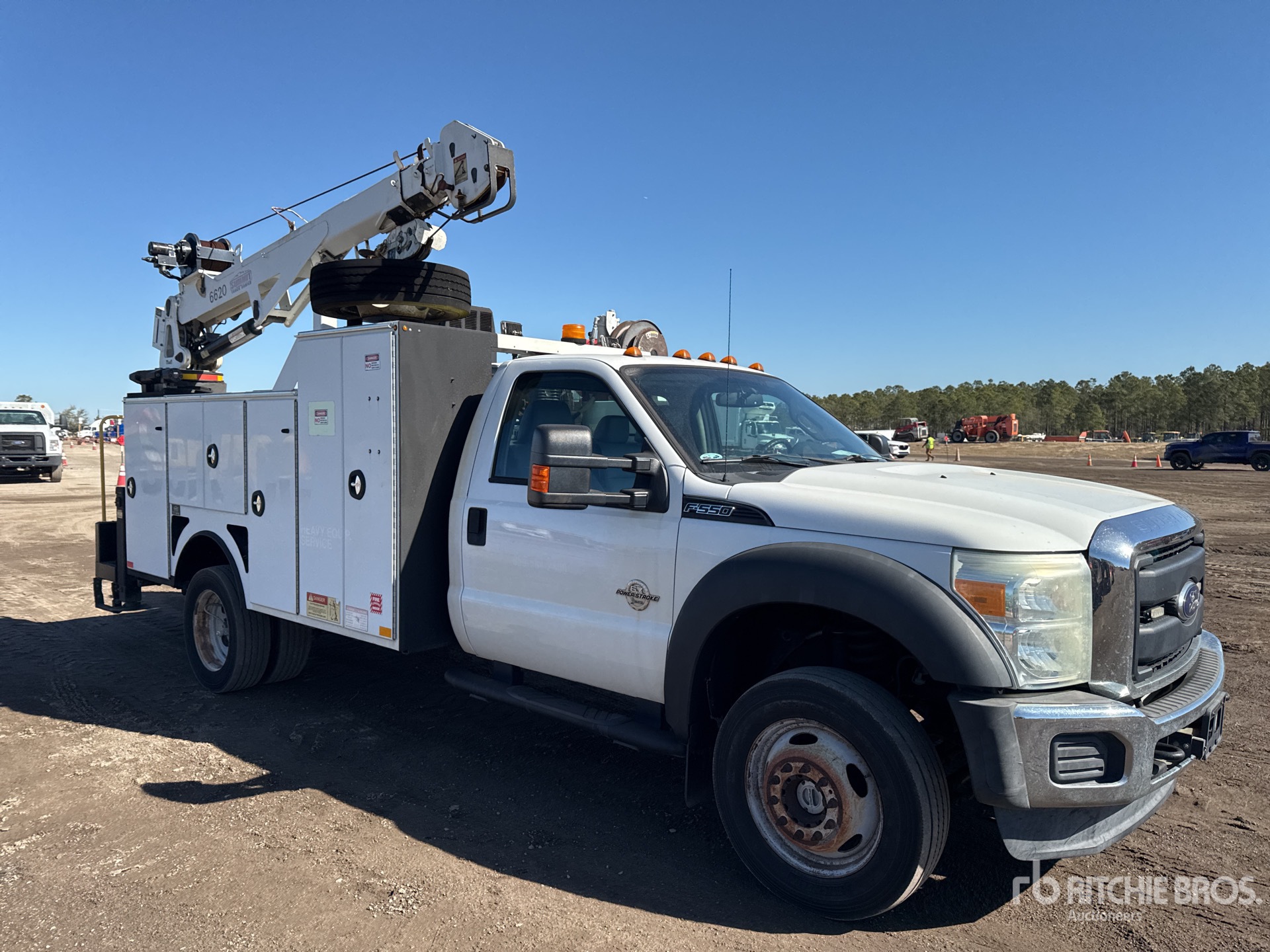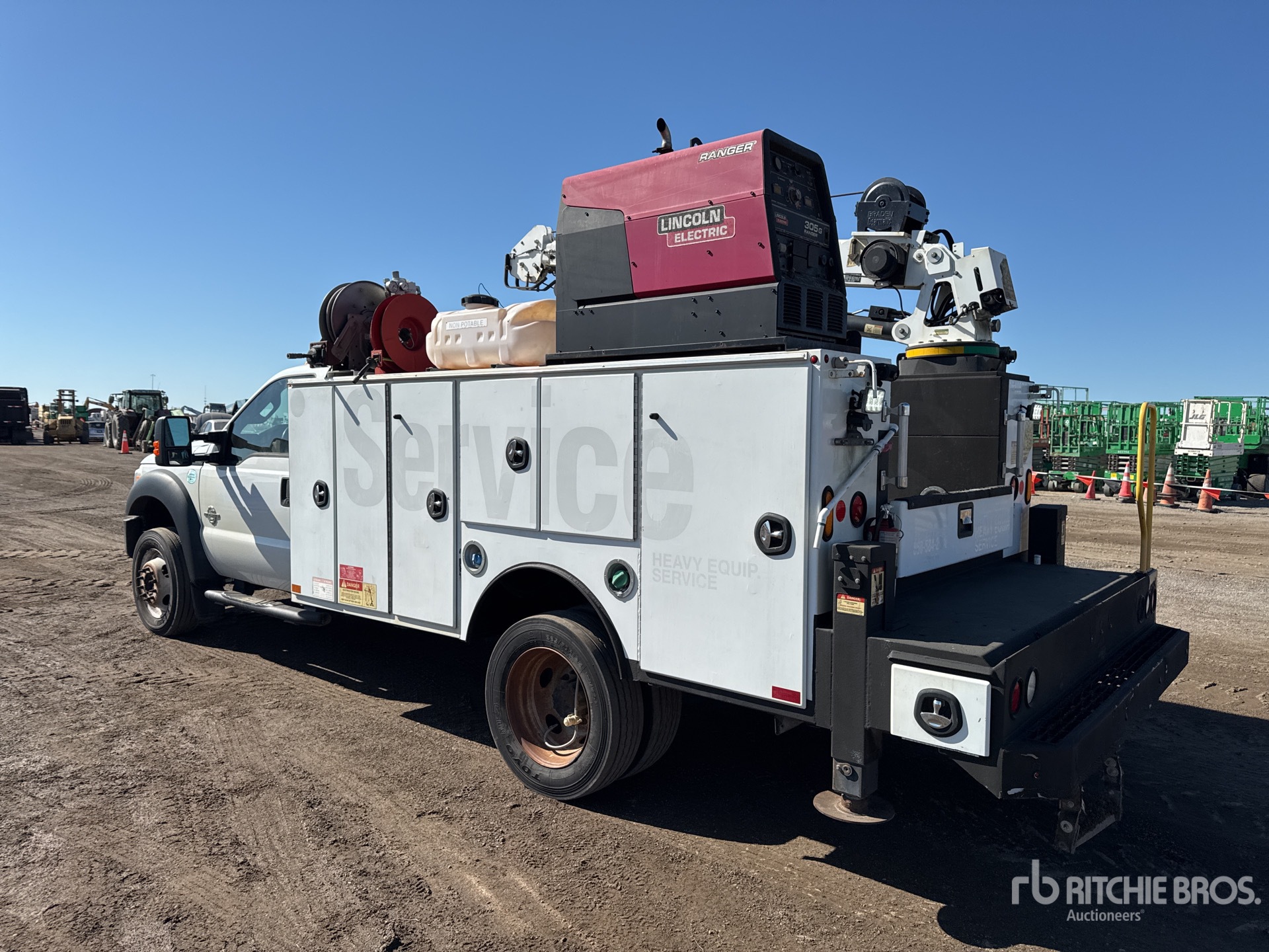 Located in Lane 97 Spot 25, Ford Powerstroke V8 6.7 L Diesel 300 hp Engine, 2016 US EPA Label, Requires Diesel Exhaust Fluid, 4593 Engine hrs, Automatic Transmission, 7000 lb Front Axle, 14706 lb Rears, 19500 lb GVWR, 225/70R19.5, Spring Suspension, 165 in Wheelbase, Summit 6620 Series 7 Body 11 ft Body, Hydraulic Stabilizers, Summit 6620 6000 lb 3 Section Hydraulic Crane, Wireless Remote Control, Bel Aire 3G3HLL Gasoline Air Compressor, Air Hose Reel, Lincoln 305 G Ranger Gasoline Welder