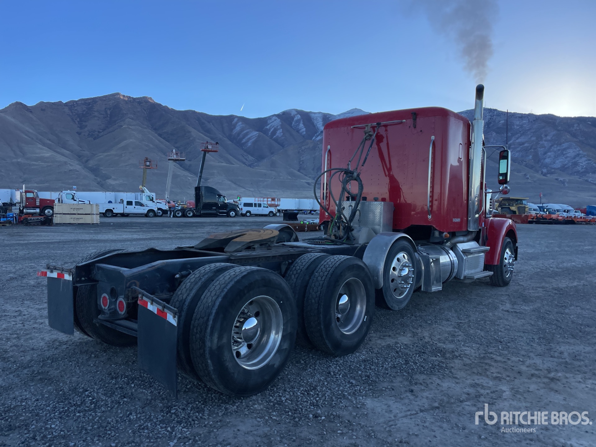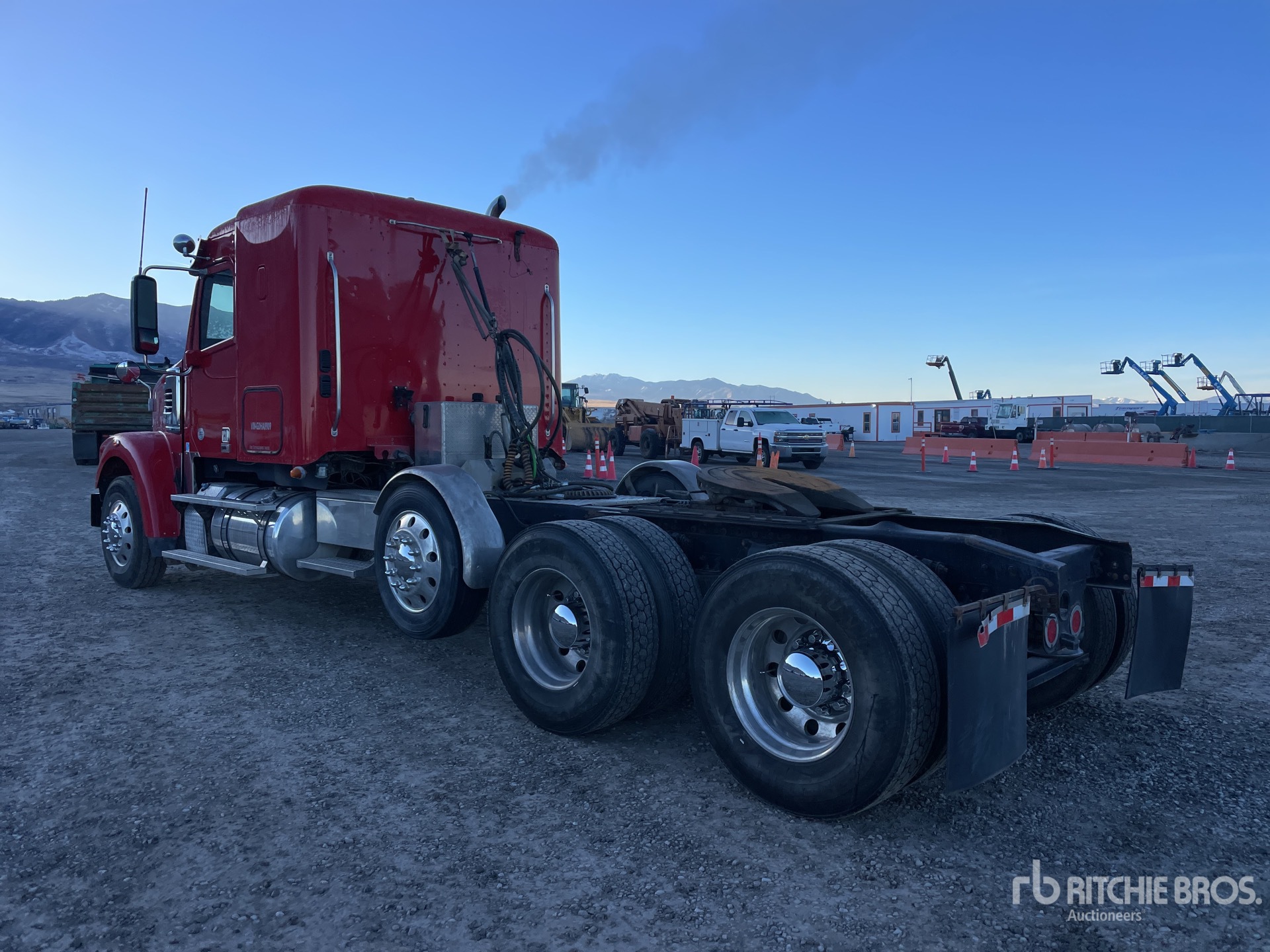 Detroit DD16 560 hp Engine, 2015 US EPA Label, 4750 Engine hrs, Eaton Fuller FRO-18210C 10-Speed Manual Transmission, 12350 lb Front Axle, 52350 lb Rears, 64700 lb GVWR, Engine Brake, 48 in Flat Top Sleeper Cab, 260 in Wheelbase, Air Suspension, Air Lift Pusher Axle, Aluminum Wheels, 11R22.5, Air Sliding 5th Wheel, Dual Fuel Tanks