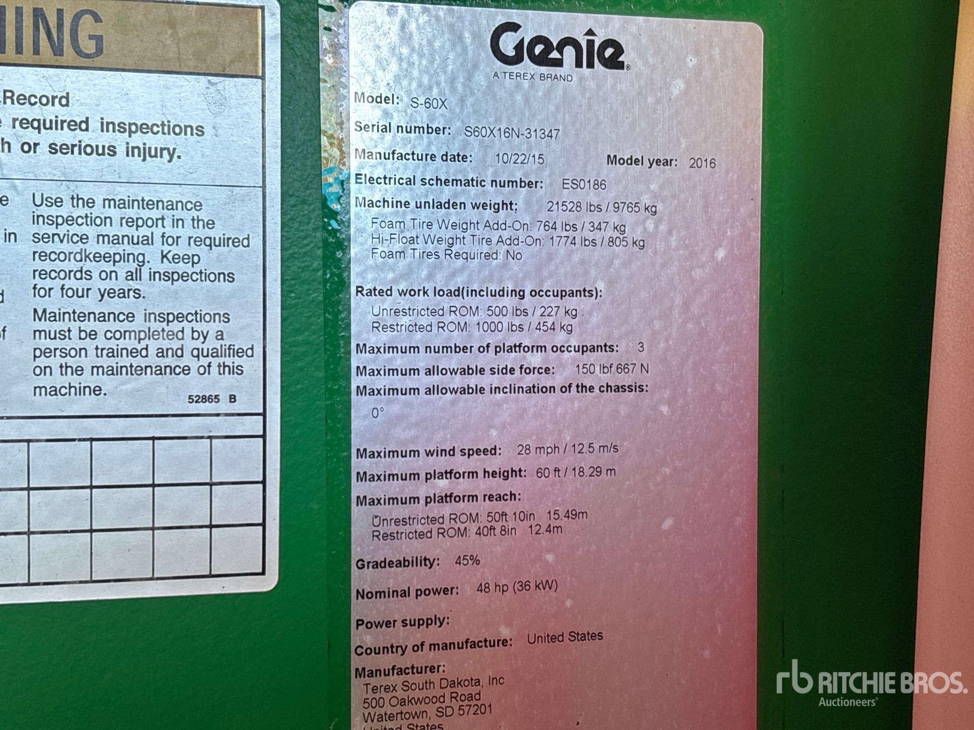 2016 Genie S-60X 4WD Diesel رافعة تليسكوبية بذراع تطويل