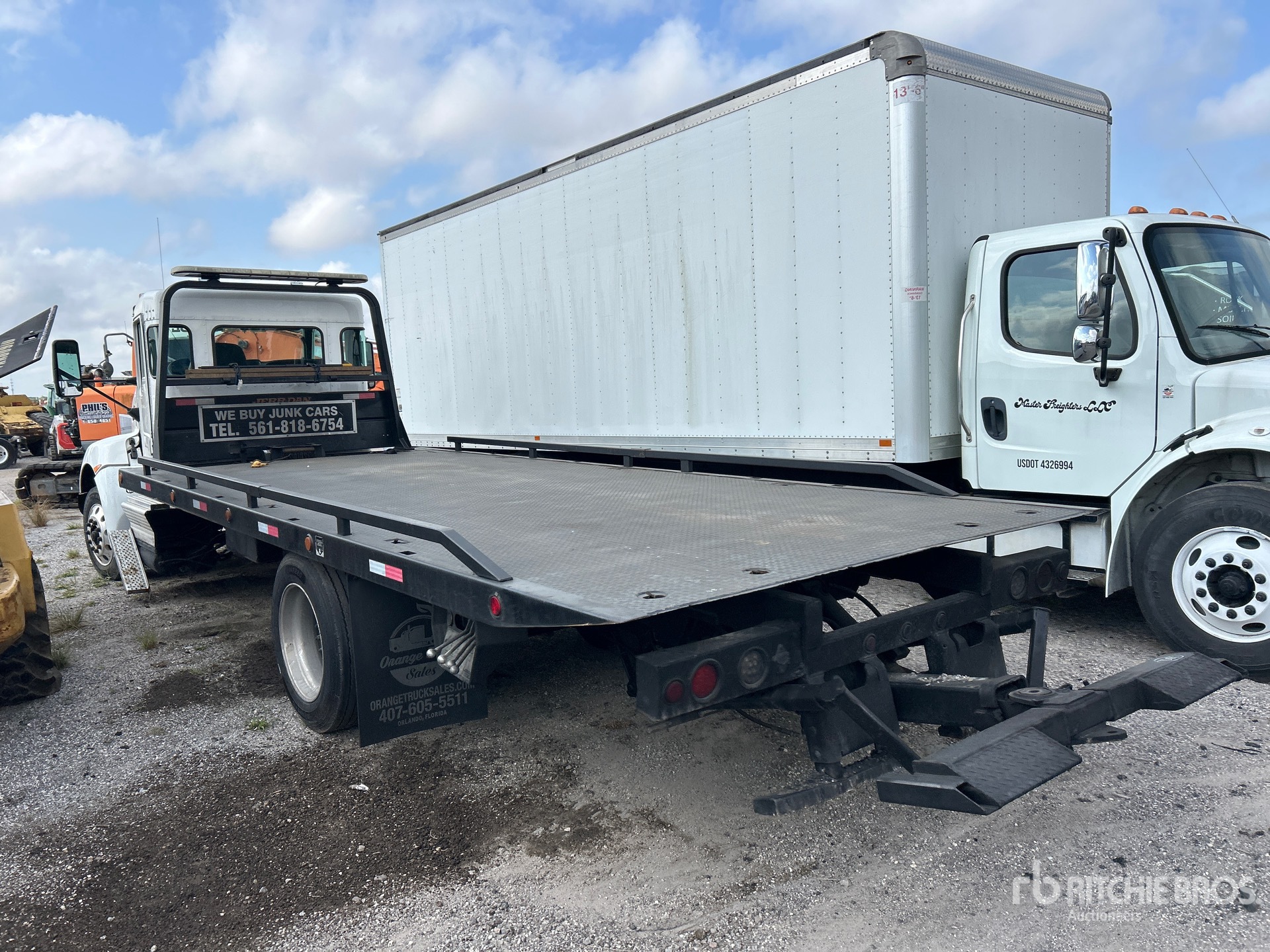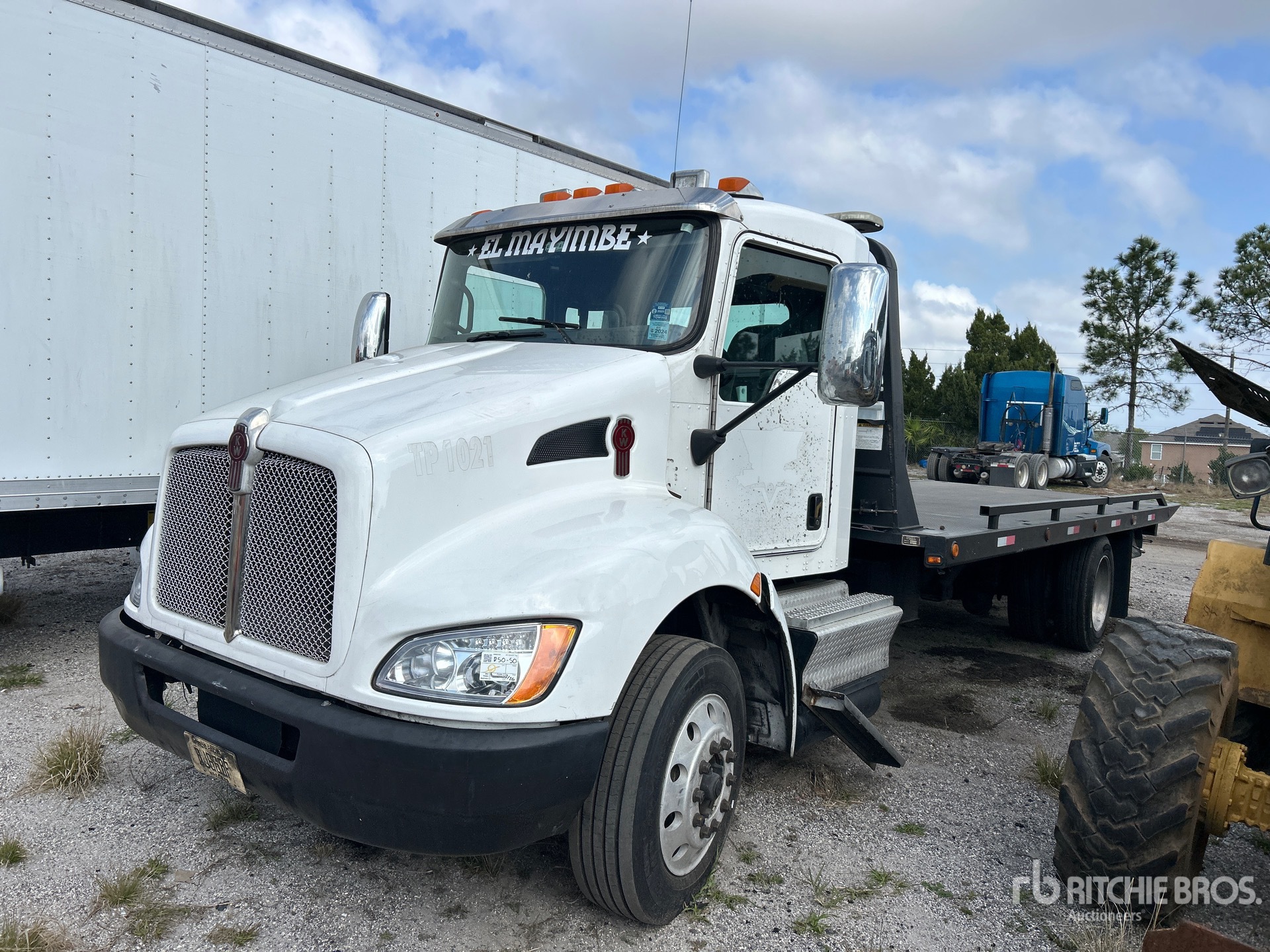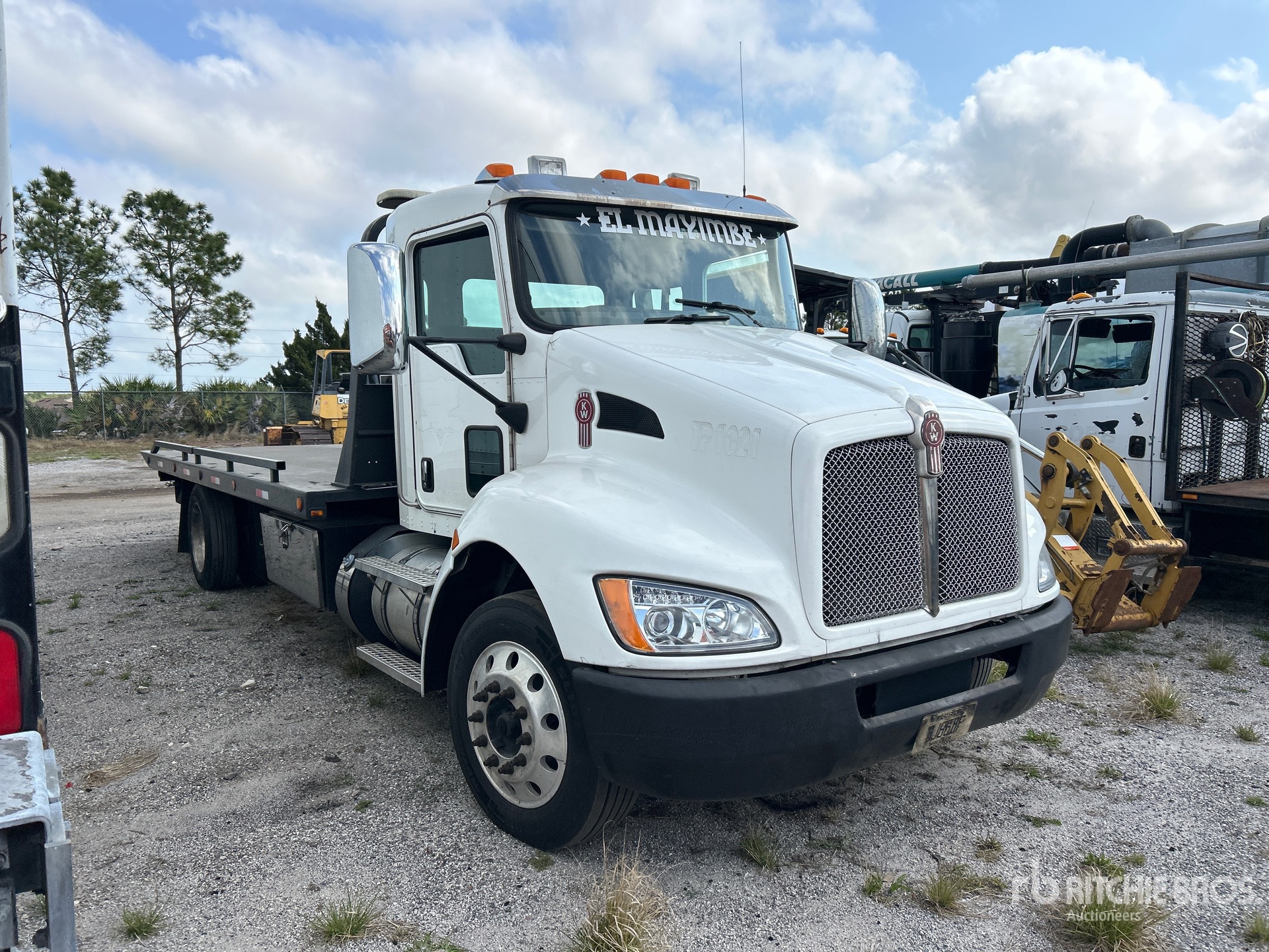 Paccar PX-7 6 Cylinder 6.7 L Diesel 300 hp Engine, 2015 US EPA Label, Requires Diesel Exhaust Fluid, 21920 Engine hrs, Allison Automatic Transmission, 8000 lb Front Axle, 16000 lb Rears, Dana P20060S Drive Axles, 4.33:1 Axle Ratio, 24000 lb GVWR, Aluminum Outer Wheels, 255/70R22.5, Air Ride Suspension, 217 in Wheelbase, PTO, Jerr-Dan 21SRR6T-W-LP Rollback Body, 21 ft x 102 in Bed, Ramsey Winch, Hydraulic Wheel Lift