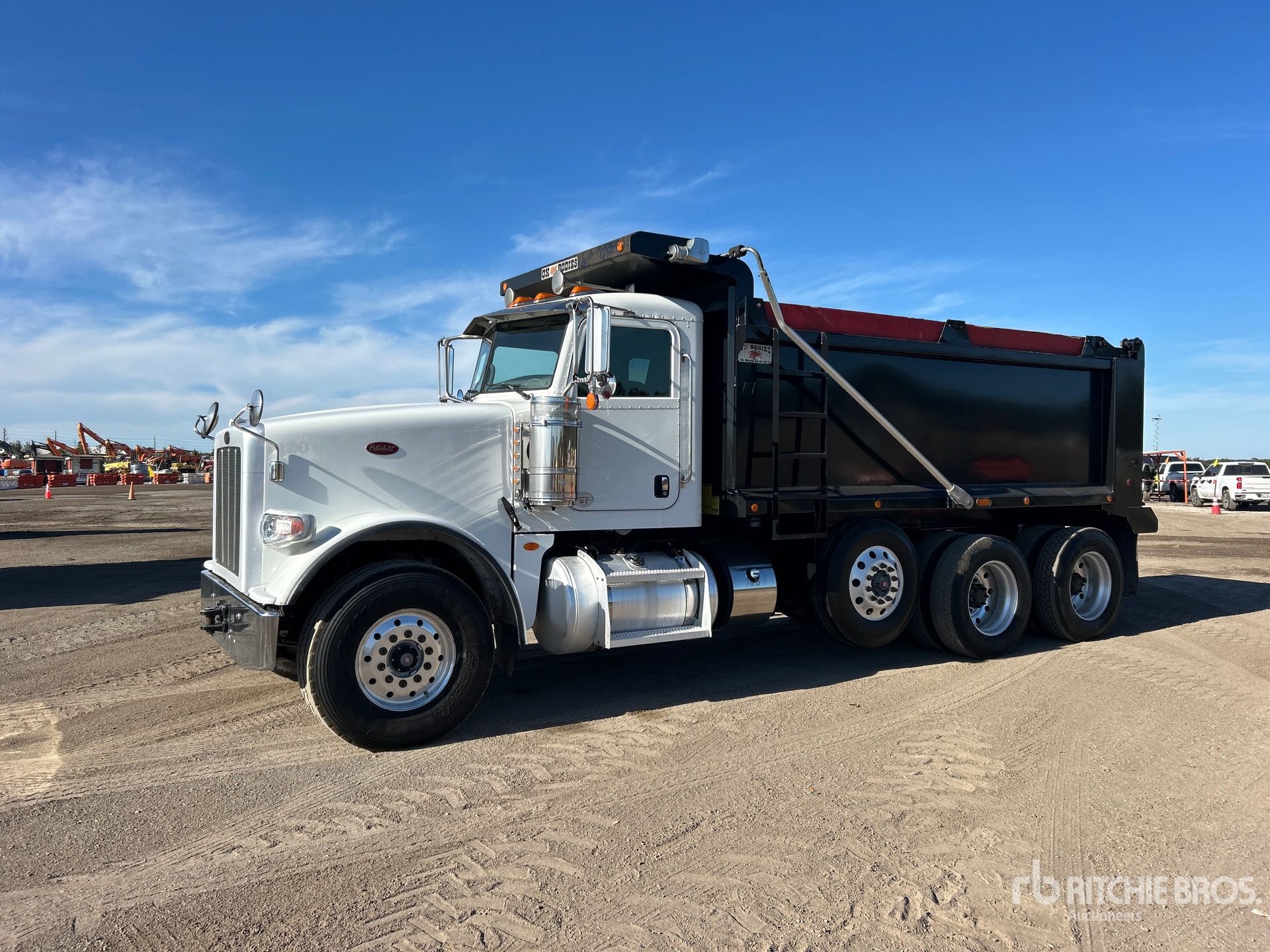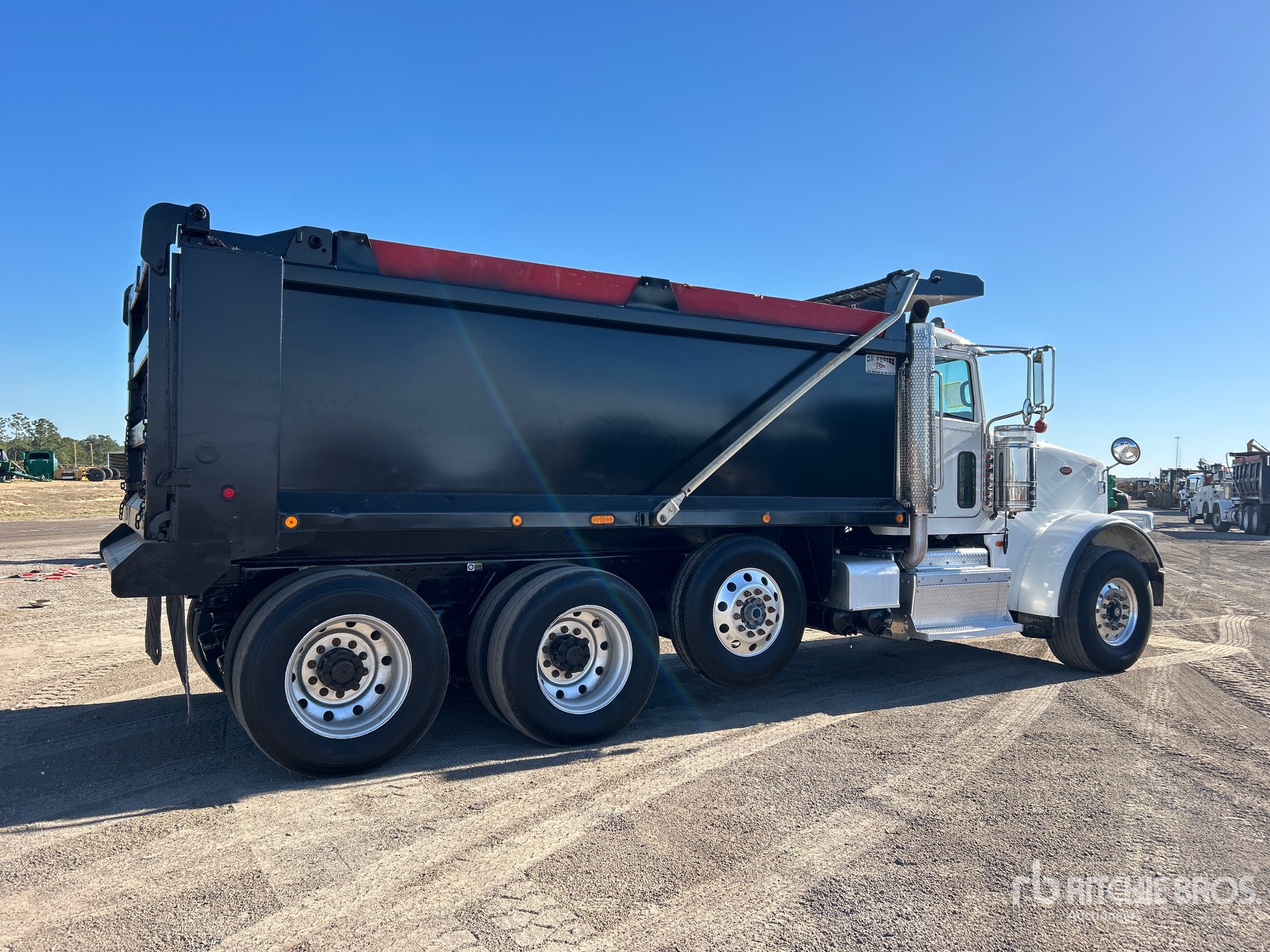Cummins ISX12 6 Cylinder 11.9 L Diesel 425 hp Engine, 2015 US EPA Label, Requires Diesel Exhaust Fluid, 15767 Engine hrs, Engine Brake, Allison Automatic Transmission, Differential Lock, 20000 lb Front Axle, 46000 lb Rears, 79220 lb GVWR, Air Ride Cab, Aluminum Wheels, 425/65R22.5 Front Tires, 11R24.5 Rear Tires, Steerable Air Lift Pusher Axle, Dual Steering Boxes, Double Frame, Chalmers Rubber over Walking Beam Suspension, 230 in Wheelbase, OX Bodies 16 ft Long x 5 ft High Steel Body, 20 cyd, Capacity, Electric Roll Tarp, Air High-Lift Tailgate