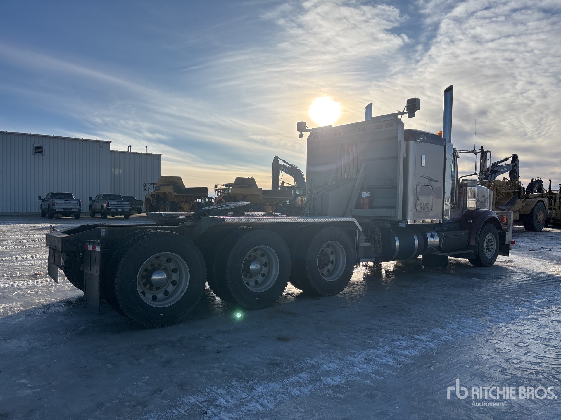 Cummins ISX Engine, 15986 Engine hrs, Eaton Fuller 18-Speed Manual Transmission, 16000 lb Front Axle, 63999 lb Rears, 80000 lb GVWR, Engine Brake, 58 in Mid Roof Sleeper Cab, Air Suspension, Aluminum Wheels, 385/65R22.5 Front Tires, 11R24.5 Rear Tires, Air Sliding 5th Wheel, Dual Fuel Tanks, Headache Rack