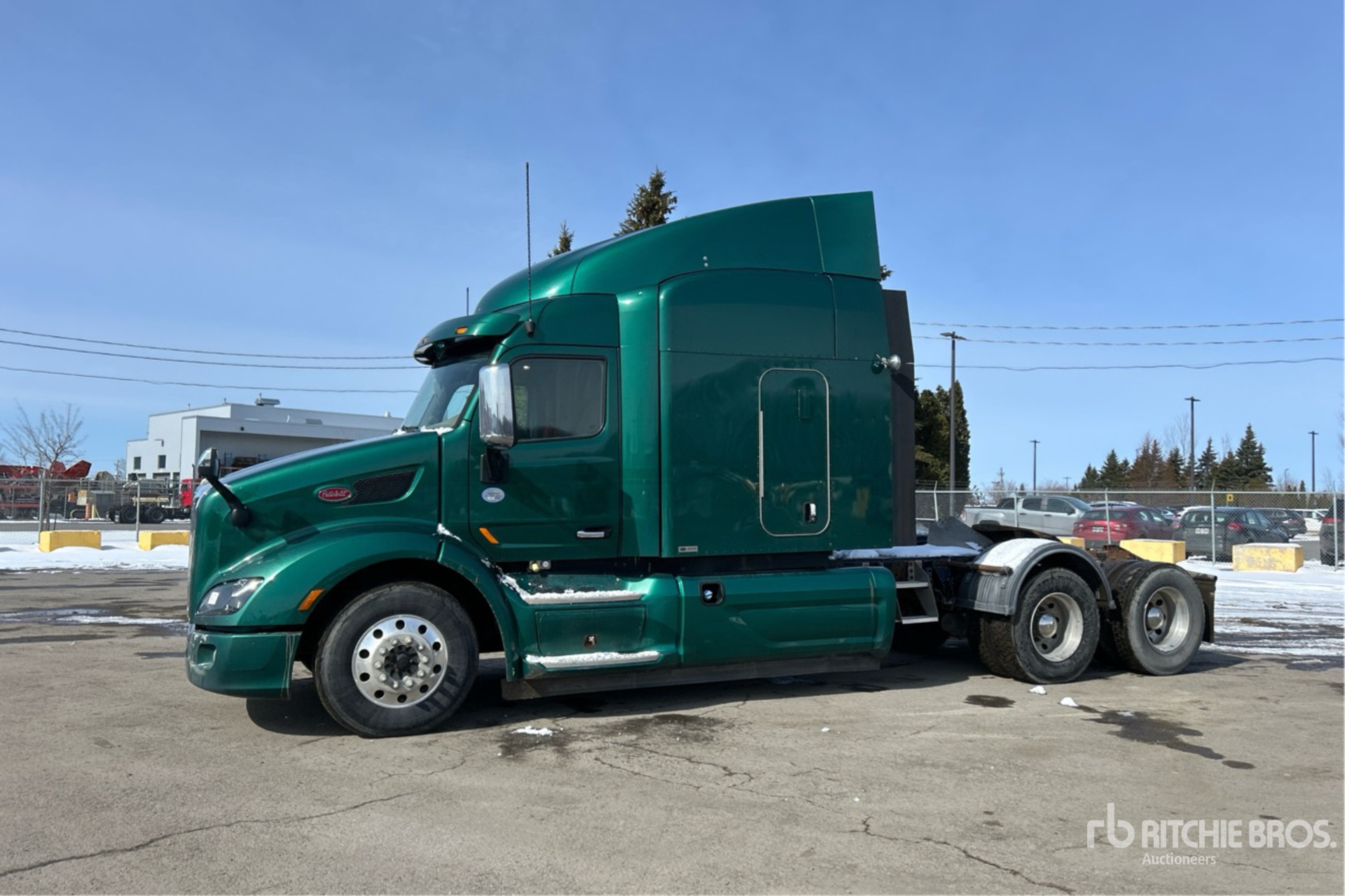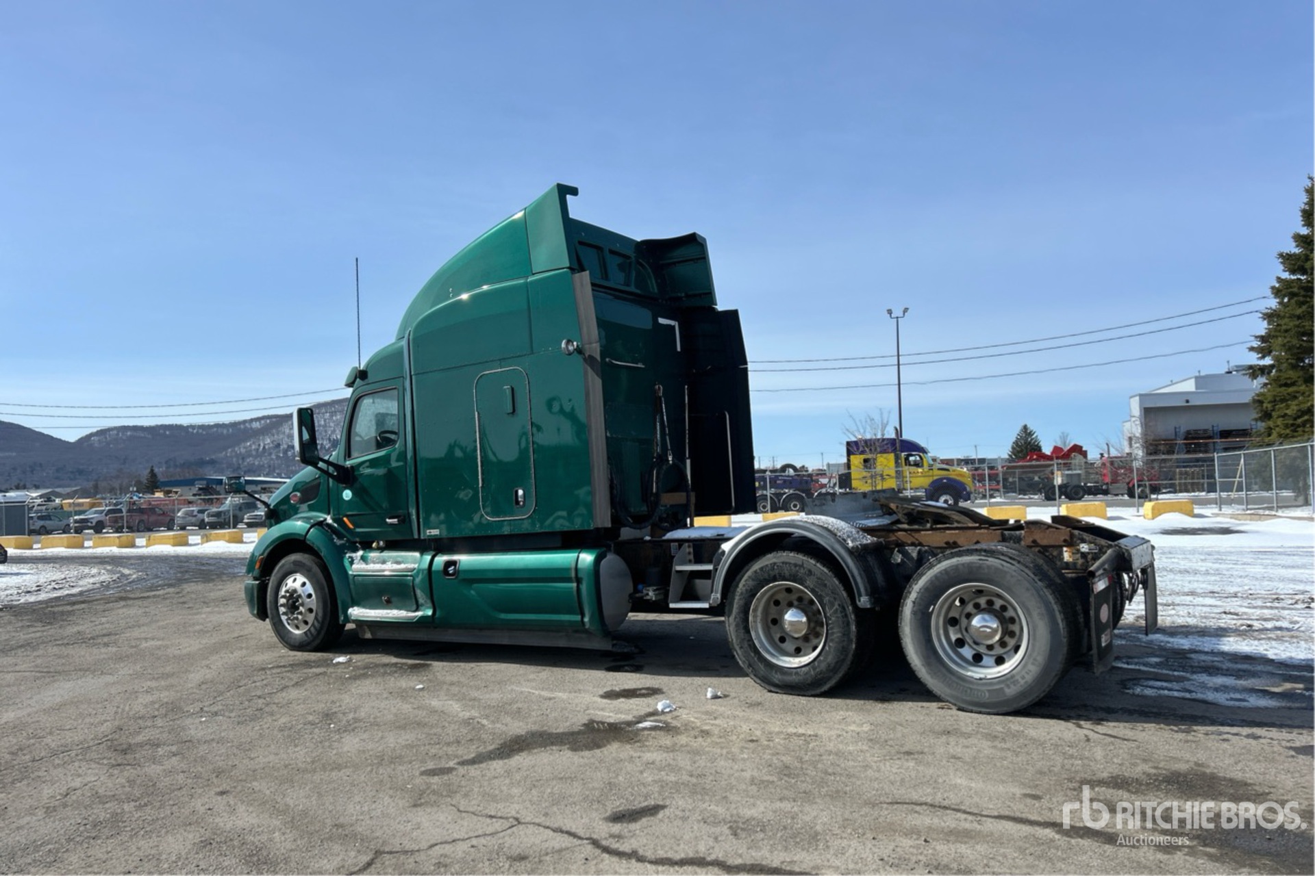 Located in Lane 16 Spot 21, Paccar MX-13 500 hp Engine, 2015 US EPA Label, Diagnostic Tool Reading 57917 mi, Eaton Fuller Automatic Transmission, 13200 lb Front Axle, 40000 lb Rears, 24132 kg GVWR, Engine Brake, Differential Lock, 63 in Mid Roof Sleeper Cab, Bunk Heater, 244 in Wheelbase, Air Suspension, Aluminum Wheels, 11R22.5, Air Sliding 5th Wheel, Dual Fuel Tanks