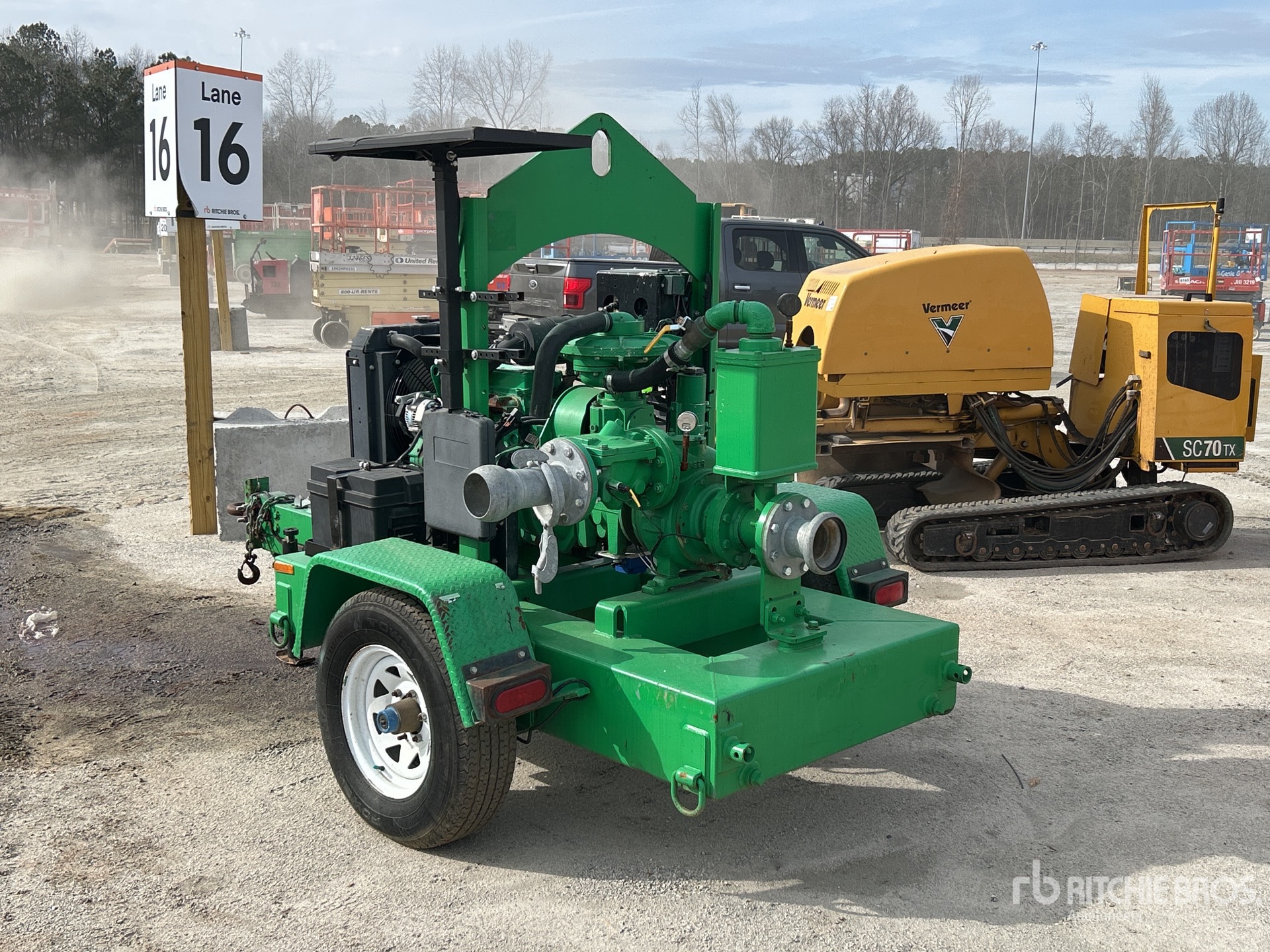 4 in Intake, 4 in Discharge, Centrifugal Trash Pump, Isuzu 4 Cylinder Diesel Engine, Lunette Ring Carrier Trailer, Surge Brakes