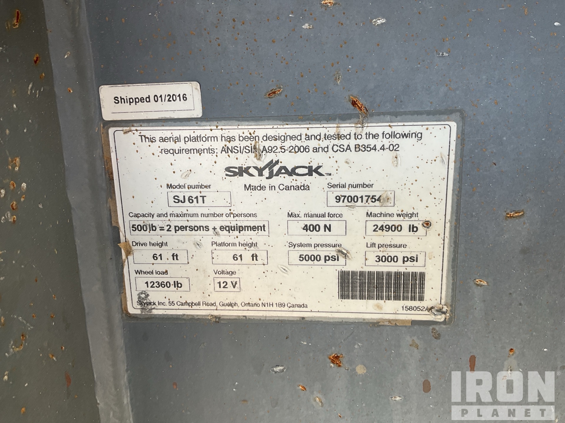 61 ft Max Platform Height, 500 lb Max Weight Capacity, Power to Platform, Onboard Generator, Tier 4, 2015 US EPA Label, CARB Compliant, Deutz 4 Cylinder Diesel Engine, 15–19.5 NHS Tires