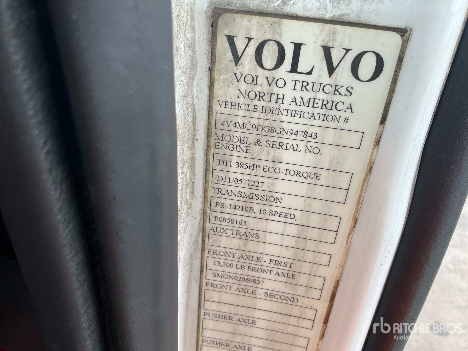 Volvo D11 385 hp Engine, 2015 US EPA Label, 11140.5 Engine hrs, Eaton Fuller FR-14210B 10-Speed Manual Transmission, 13200 lb Front Axle, 40000 lb Rears, 53200 lb GVWR, 167 in Wheelbase, Air Suspension, Aluminum Wheels, 275/80R22.5, Dual Fuel Tanks