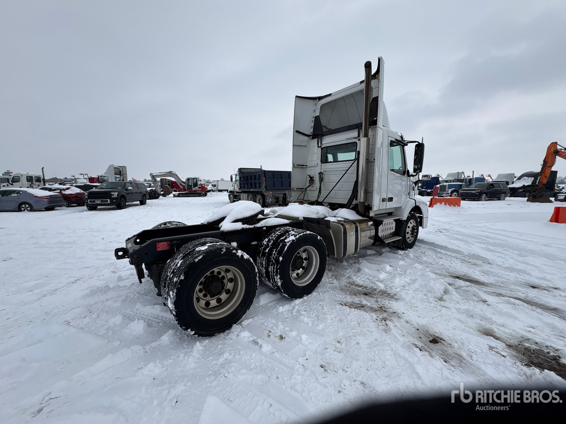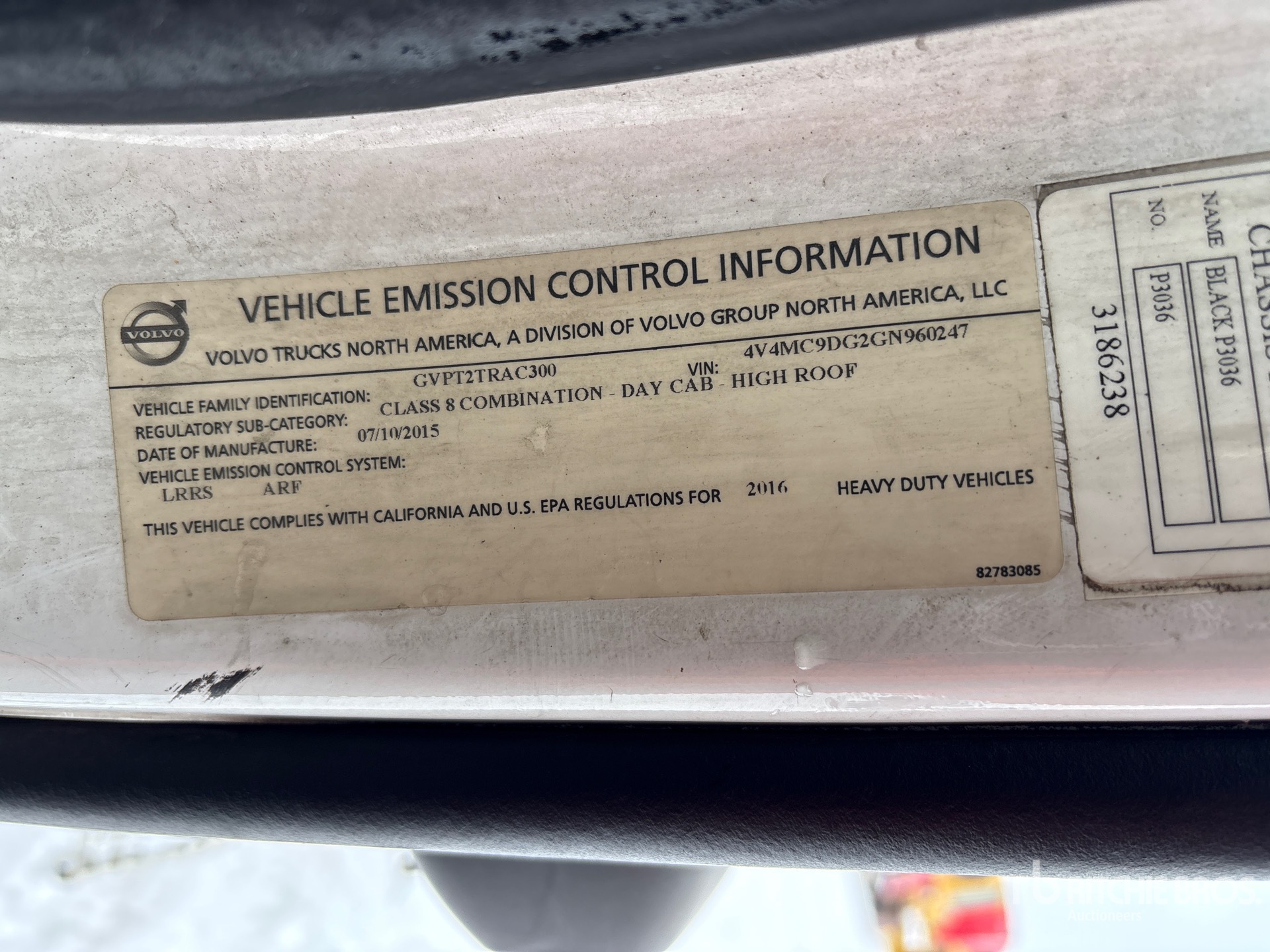 Volvo D11J385 385 hp Engine, 2016 US EPA Label, Eaton Fuller FR-14210B 10-Speed Manual Transmission, 13200 lb Front Axle, 19000 lb Rears, 50000 lb GVWR, Engine Brake, 158 in Wheelbase, Air Suspension, Aluminum Front Wheels, 275/80R22.5 Front Tires, 275/80R22.5 Rear Tires